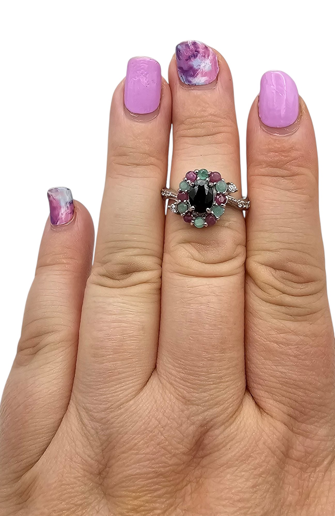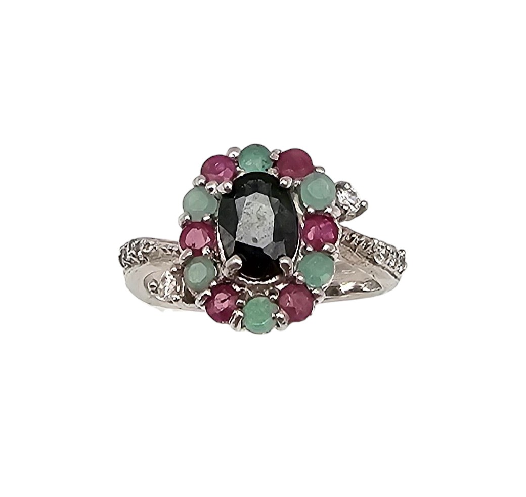 Sapphire Ruby Emerald Sterling Silver Cocktail Ring Size 7 25 4.2 G