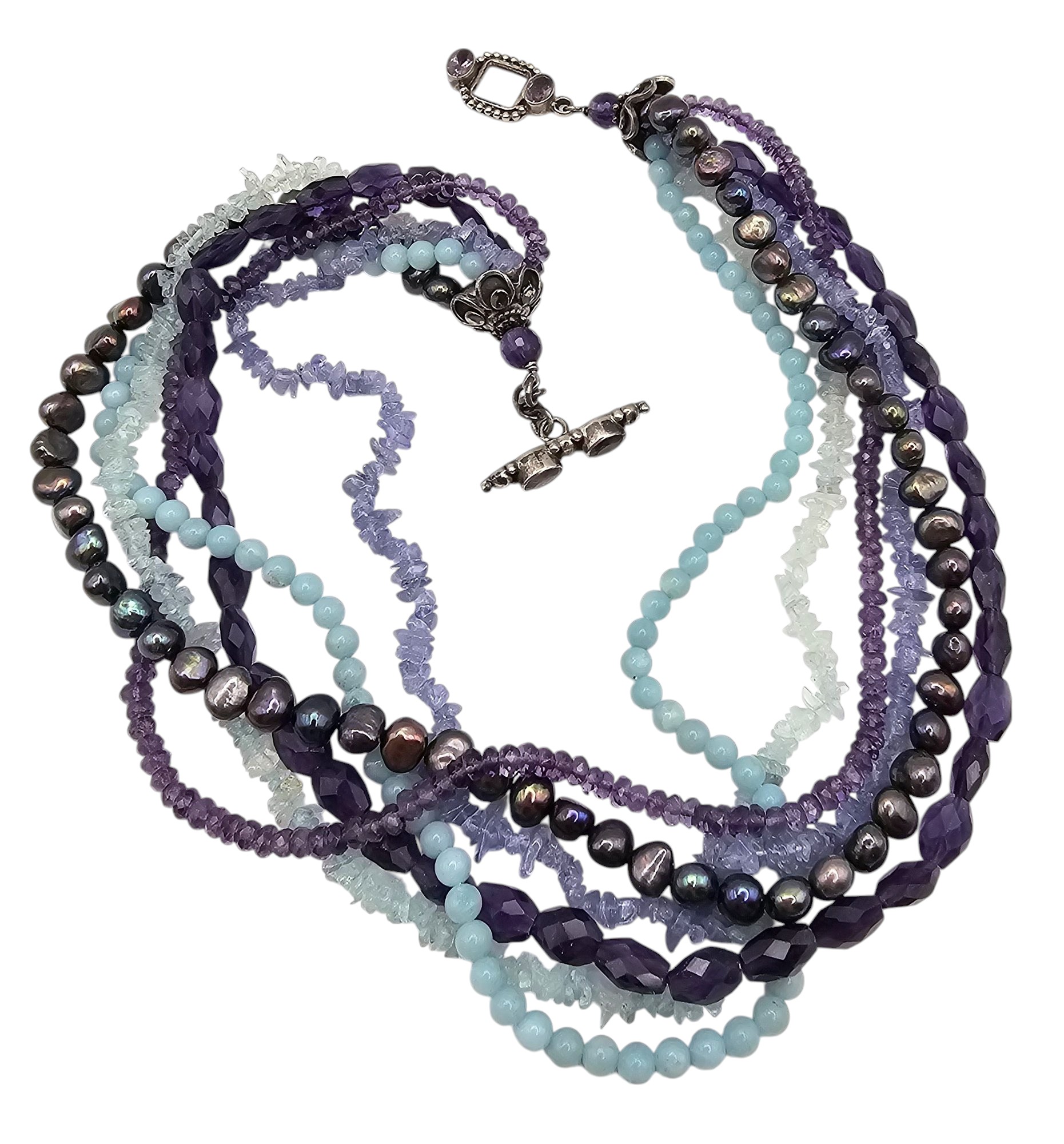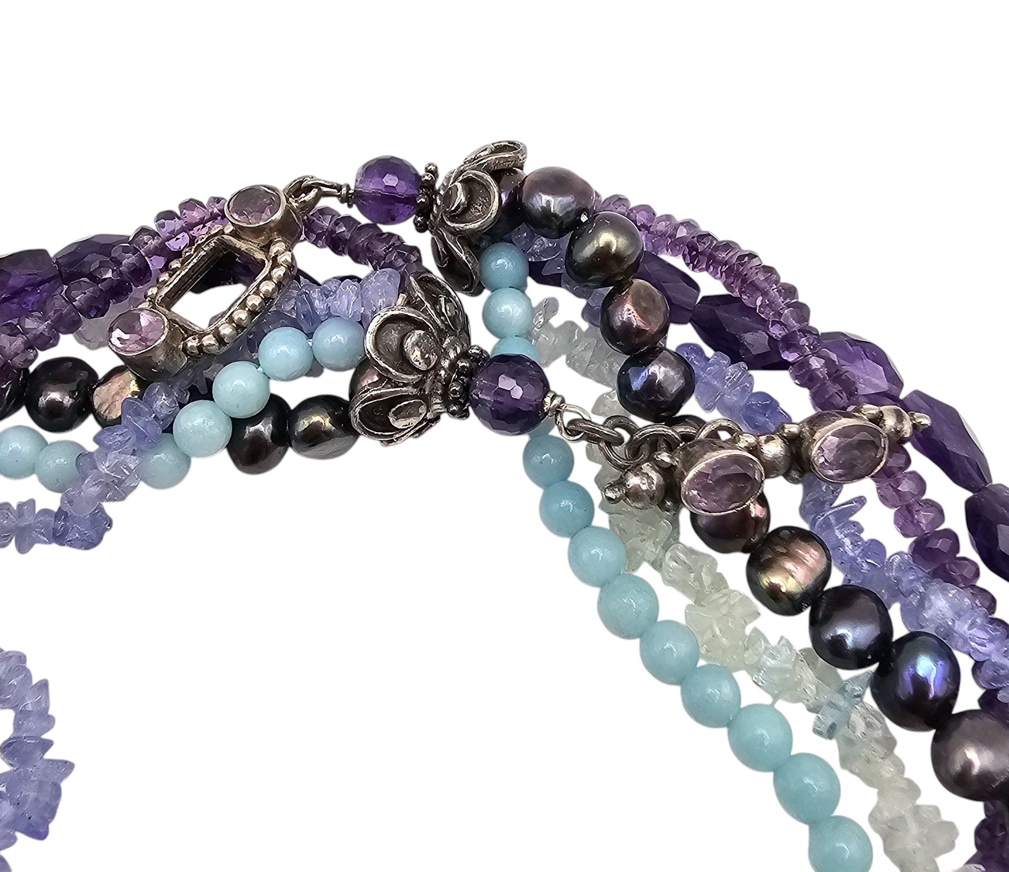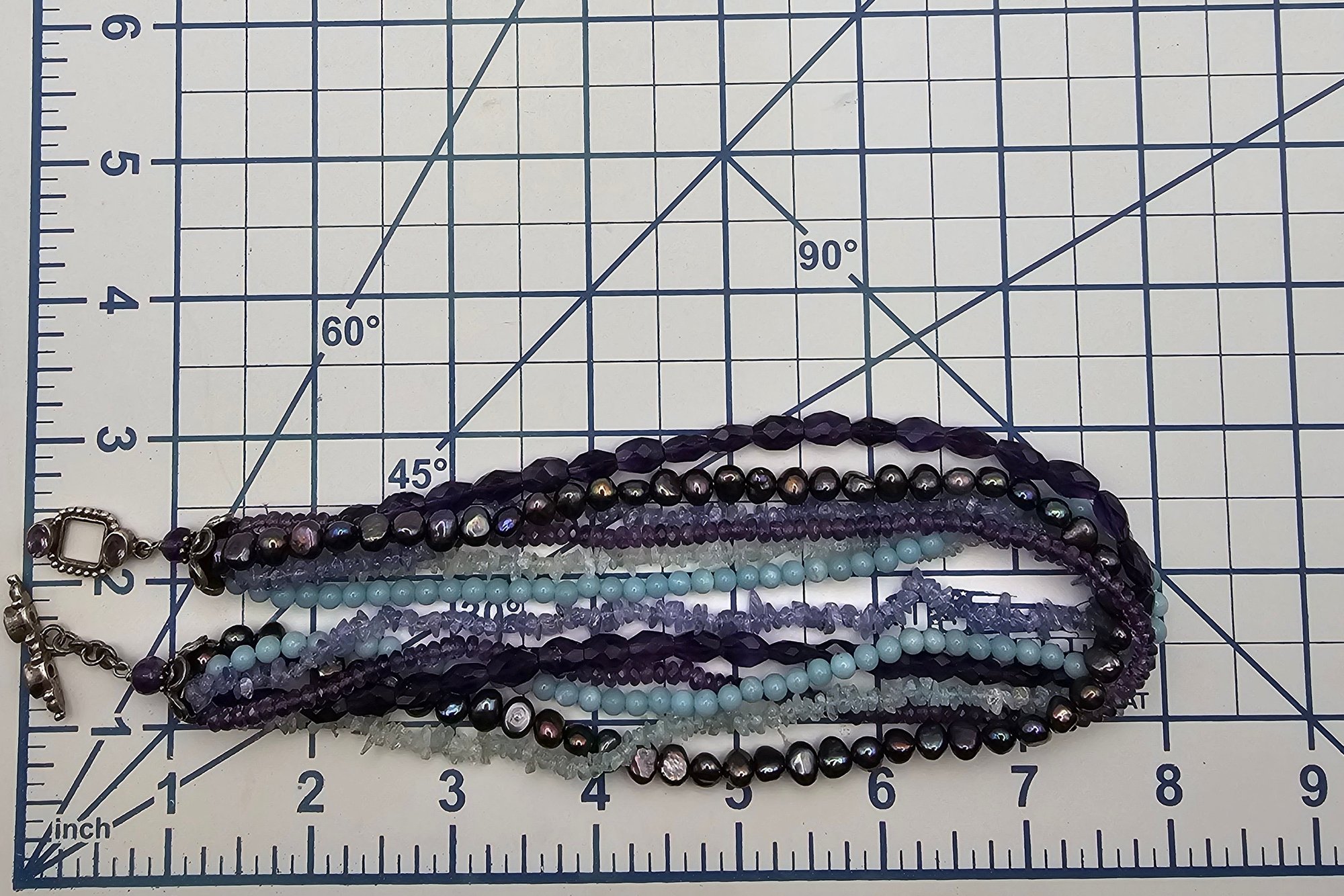Amethyst Pearl Quartz Sterling Silver Toggle Necklace 73.2 G