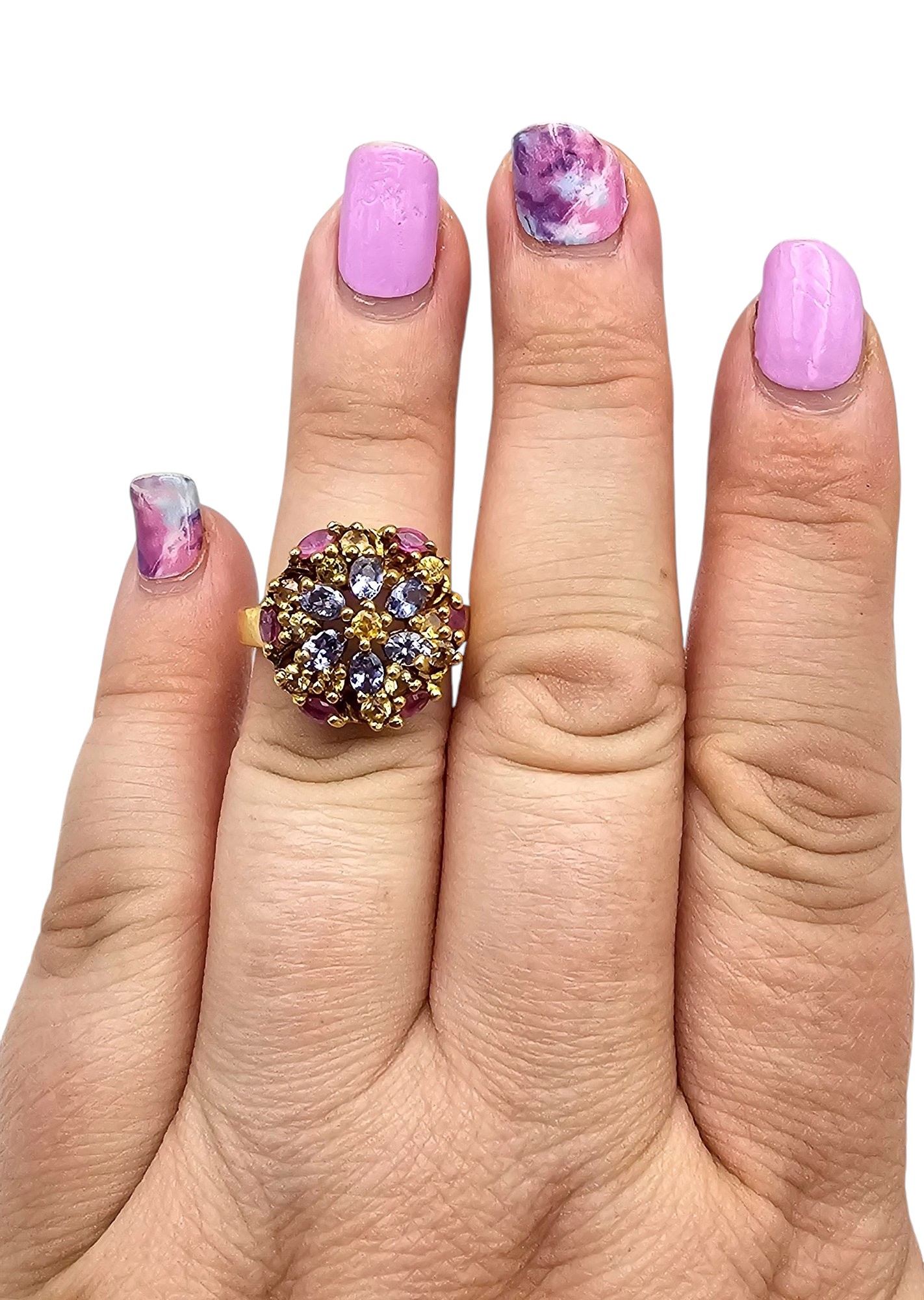 Rhinestone Gold Over Sterling Silver Cocktail Ring Size 6.75 5.5 G