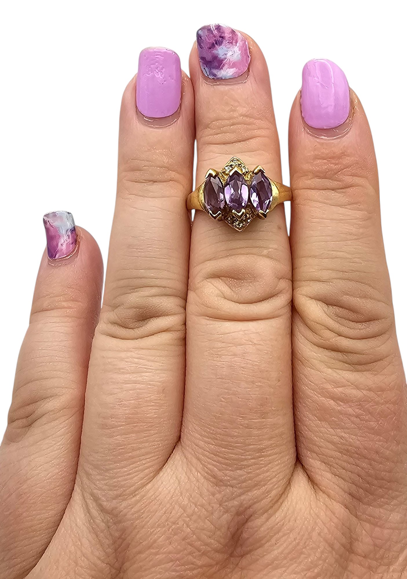 Amethyst Gold Over Sterling Silver Cocktail Ring Size 6.5 3.8 G