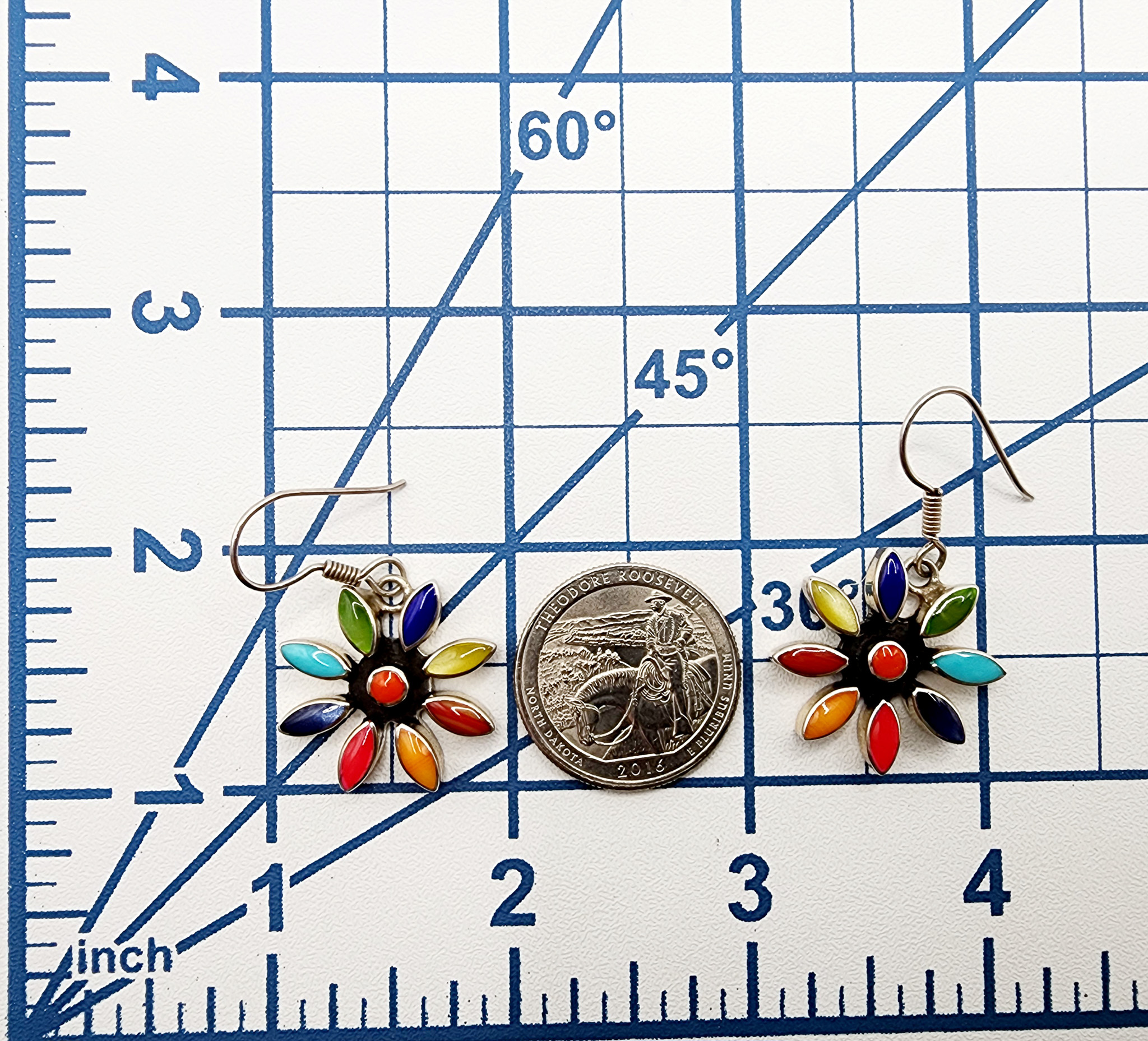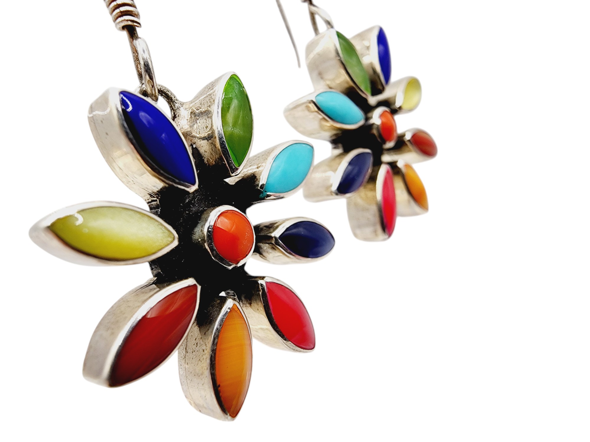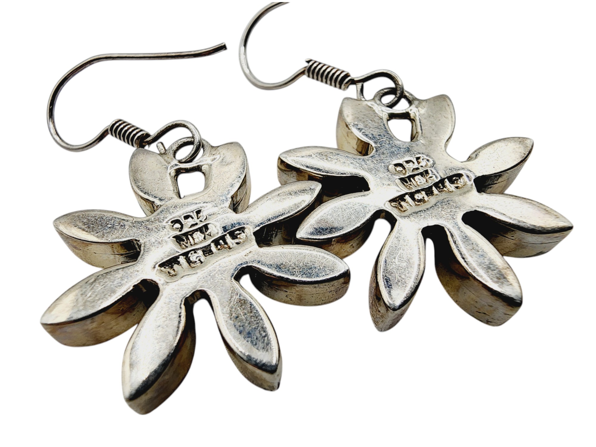 Sterling Taxco TC-45 Colorful Multistone Flower Dangle Earrings 12.5g
