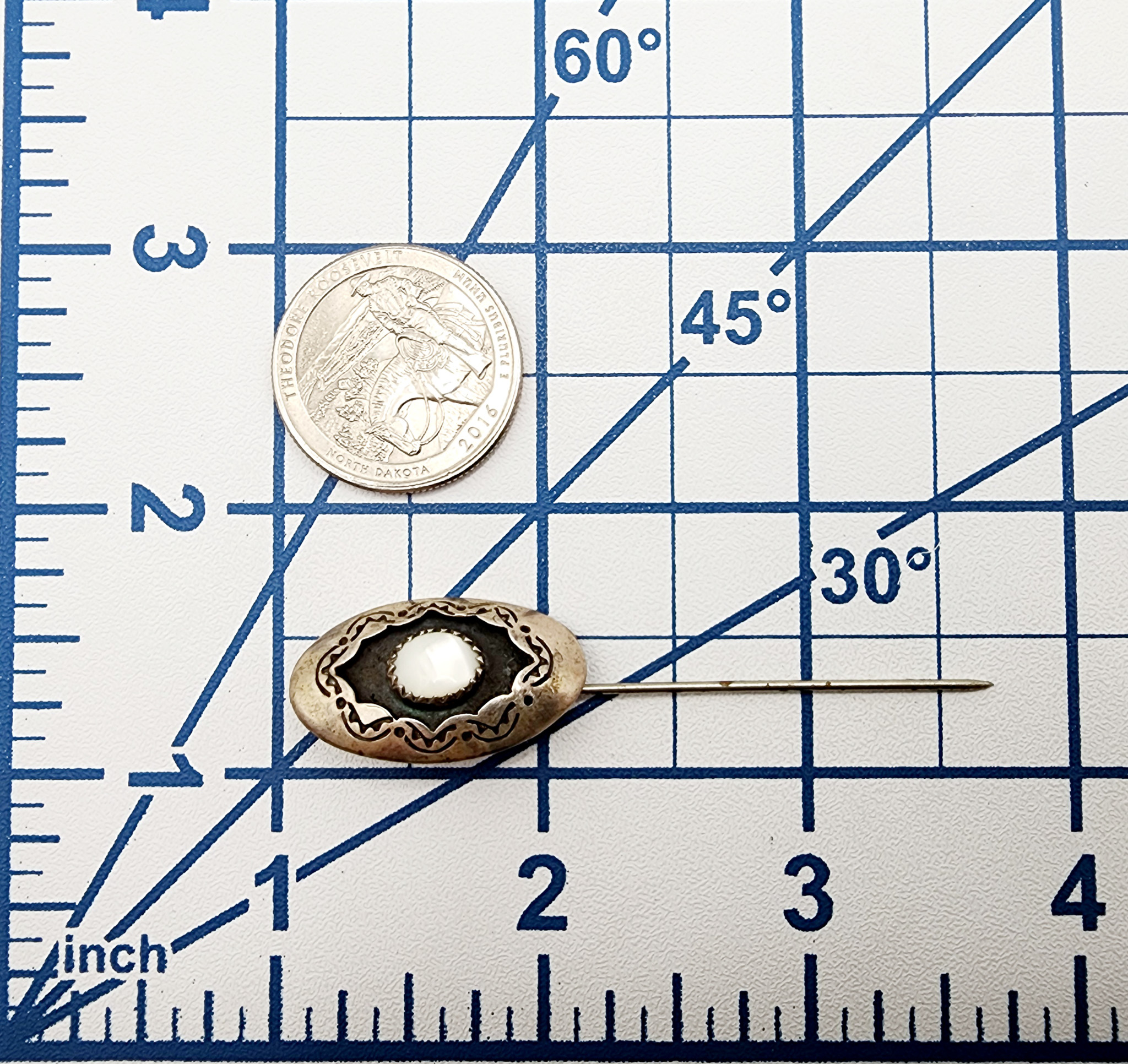 Sterling Native Handstamped MOP Stick Pin 3.1g