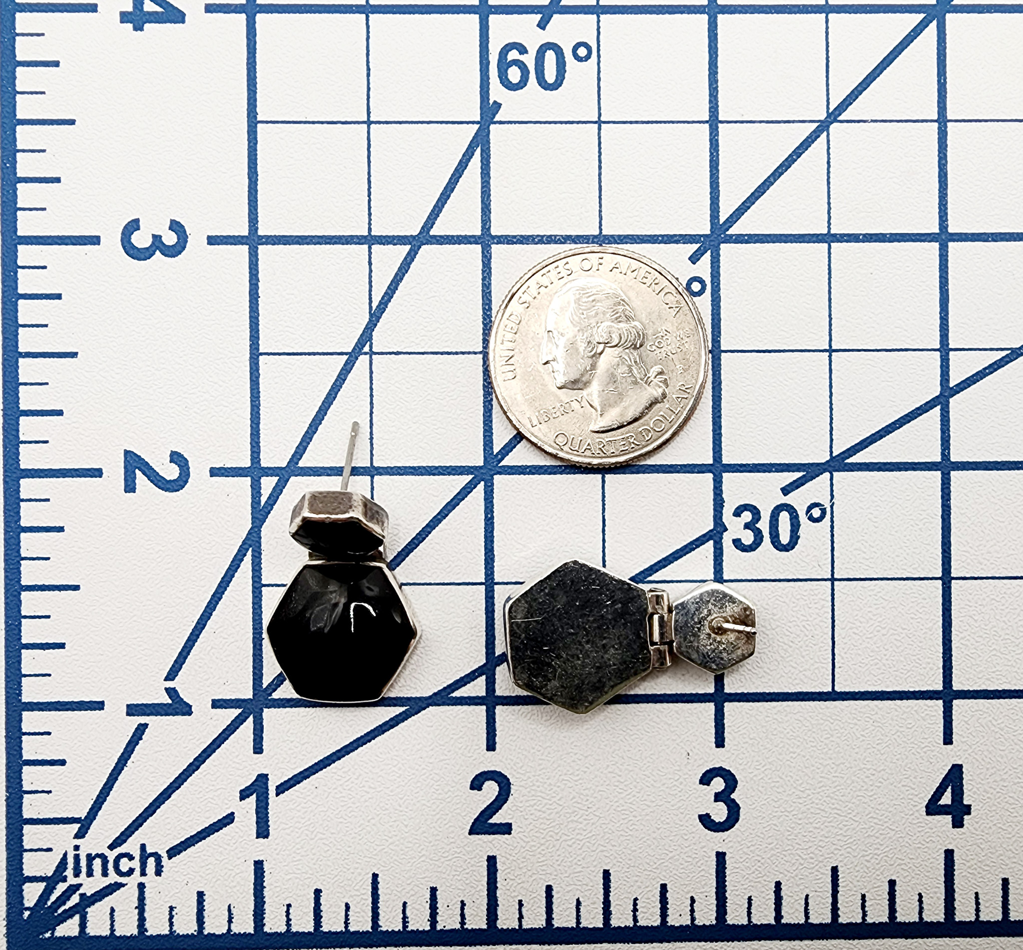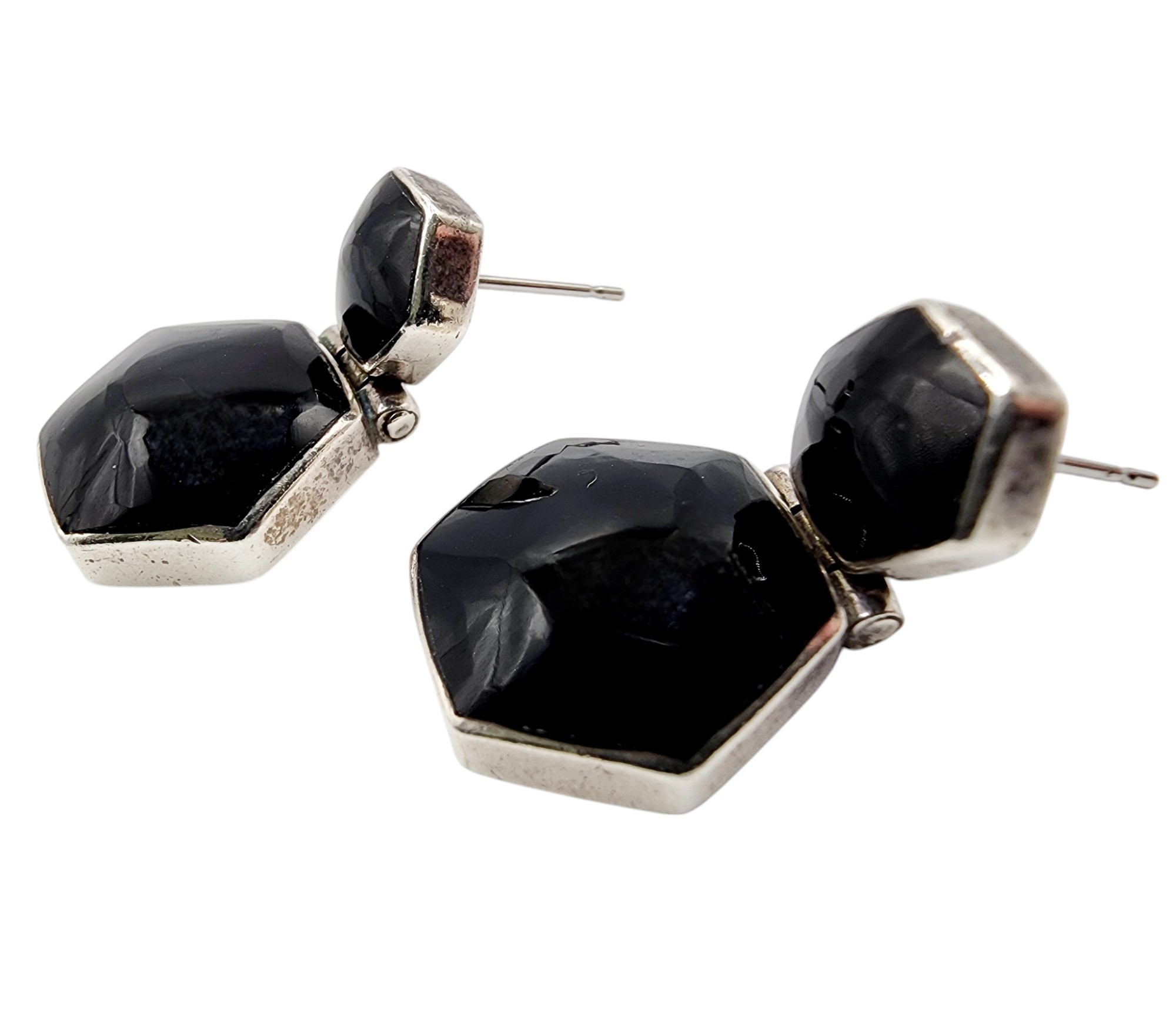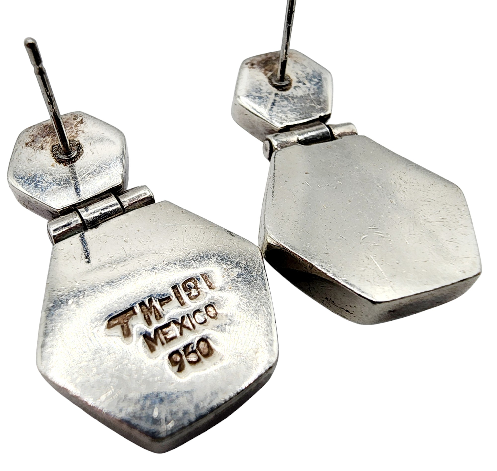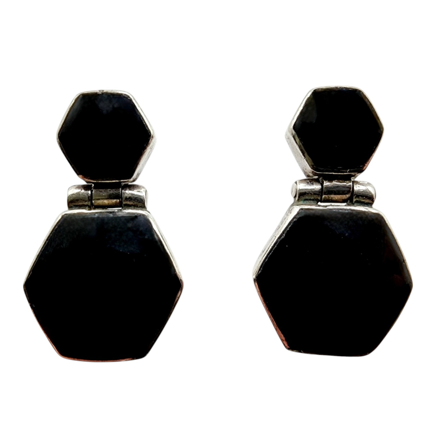 Sterling 950 Taxco TM-181 Hexagon Onyx Drop Earrings 10.6g