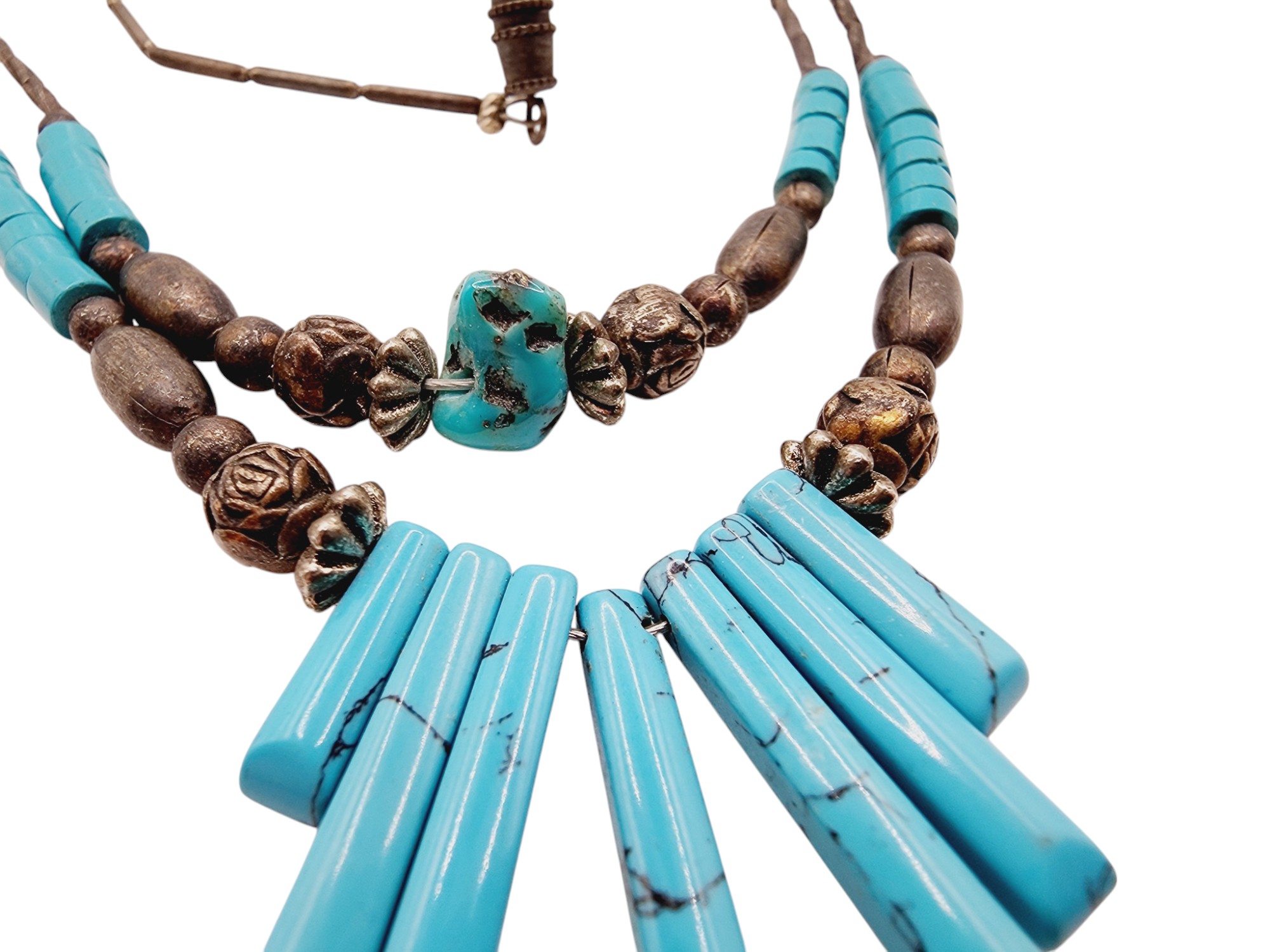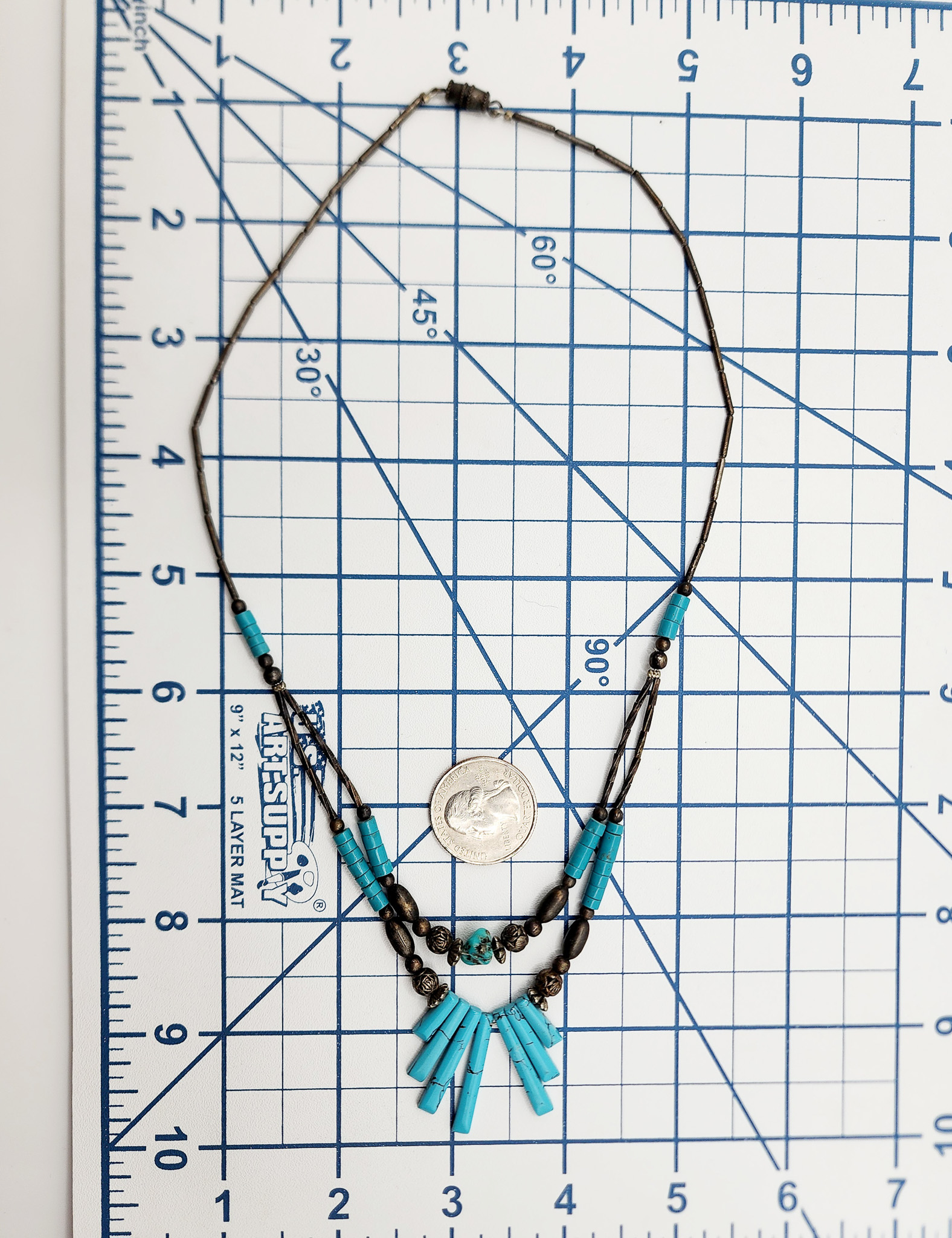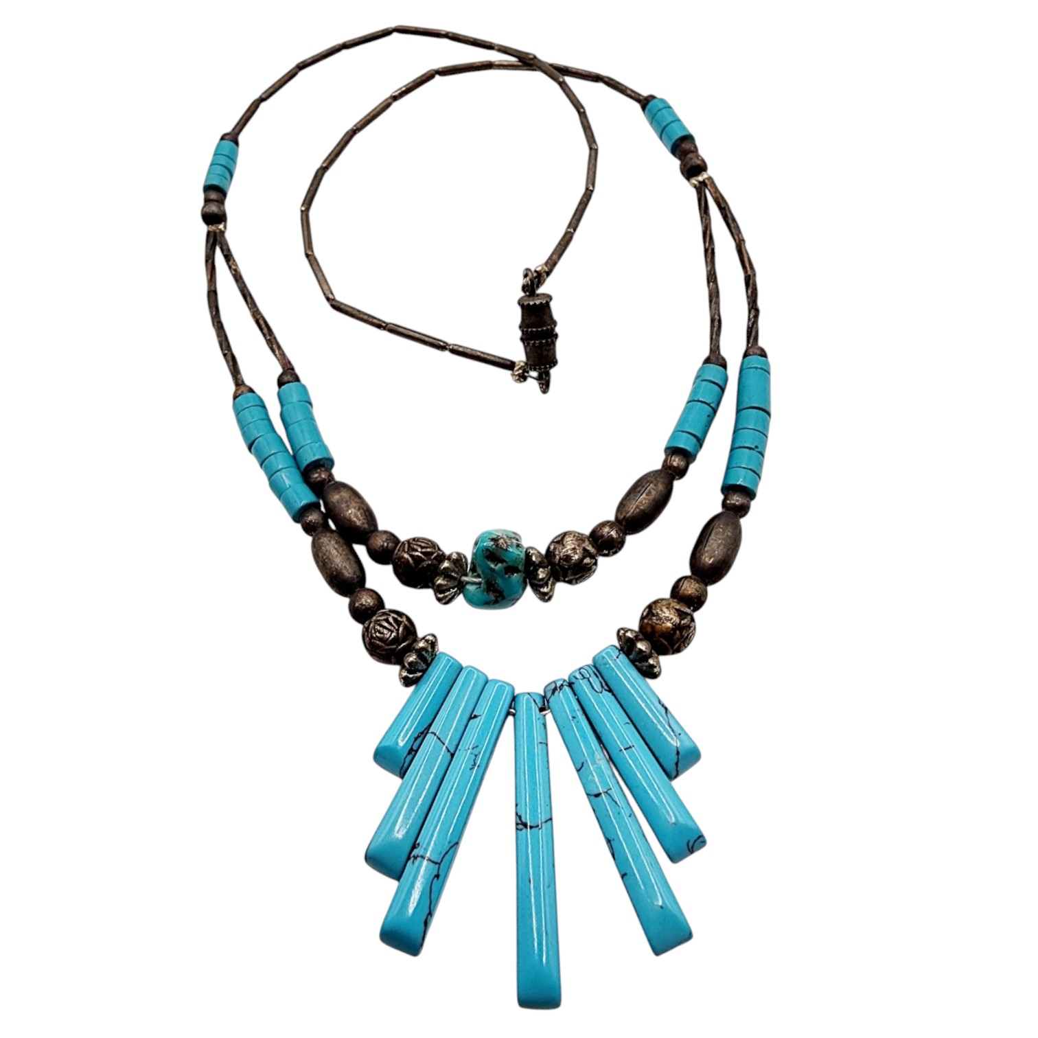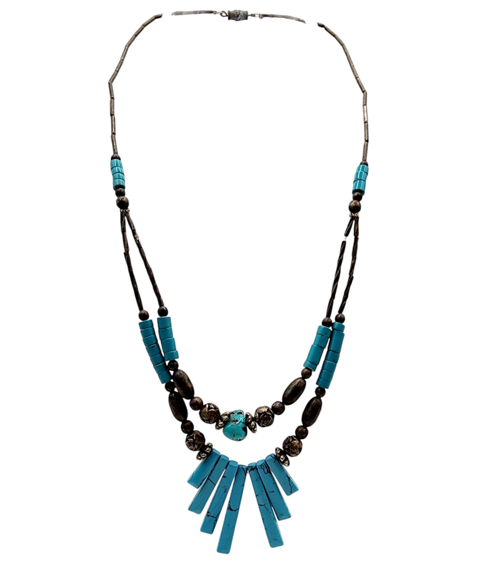 Sterling Faux Turquoise Microbeaded Fringe Necklace 13.8g