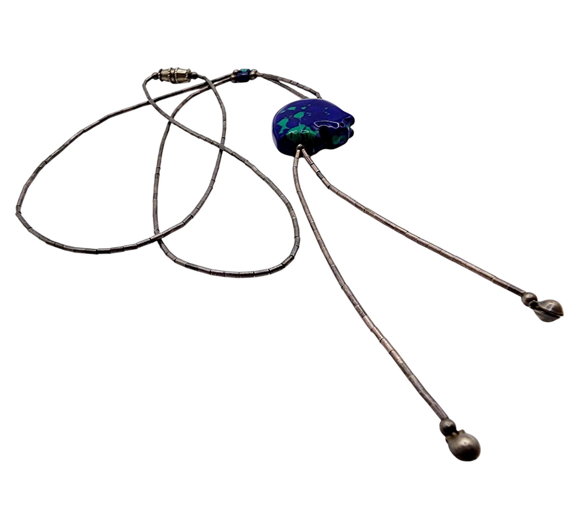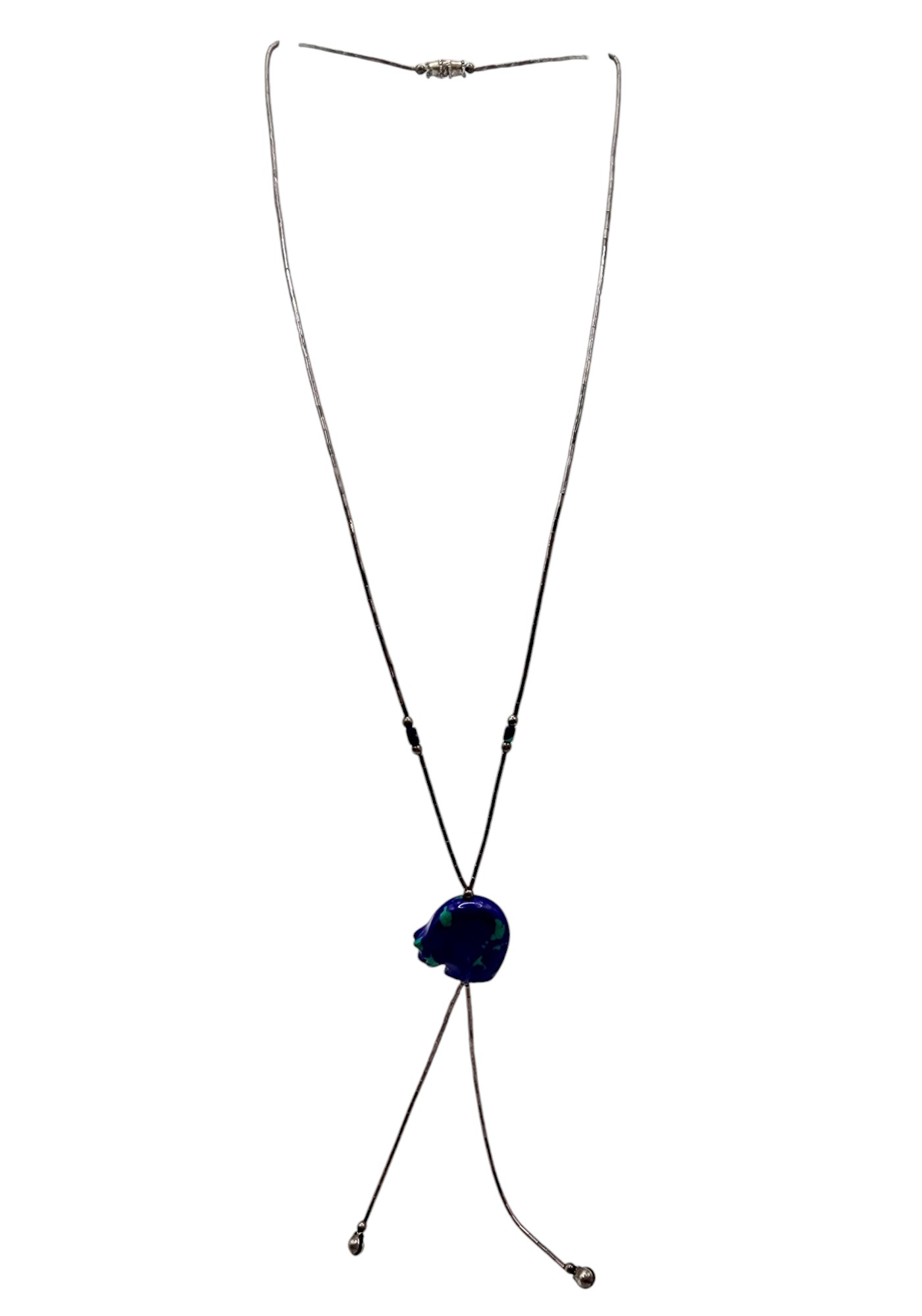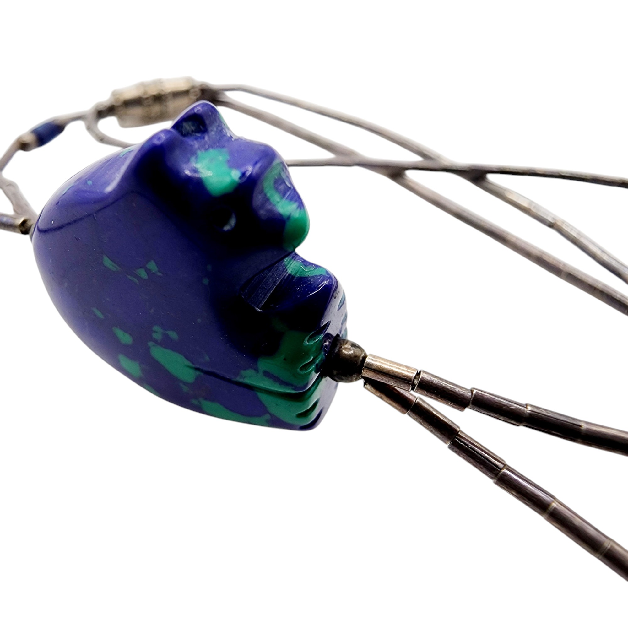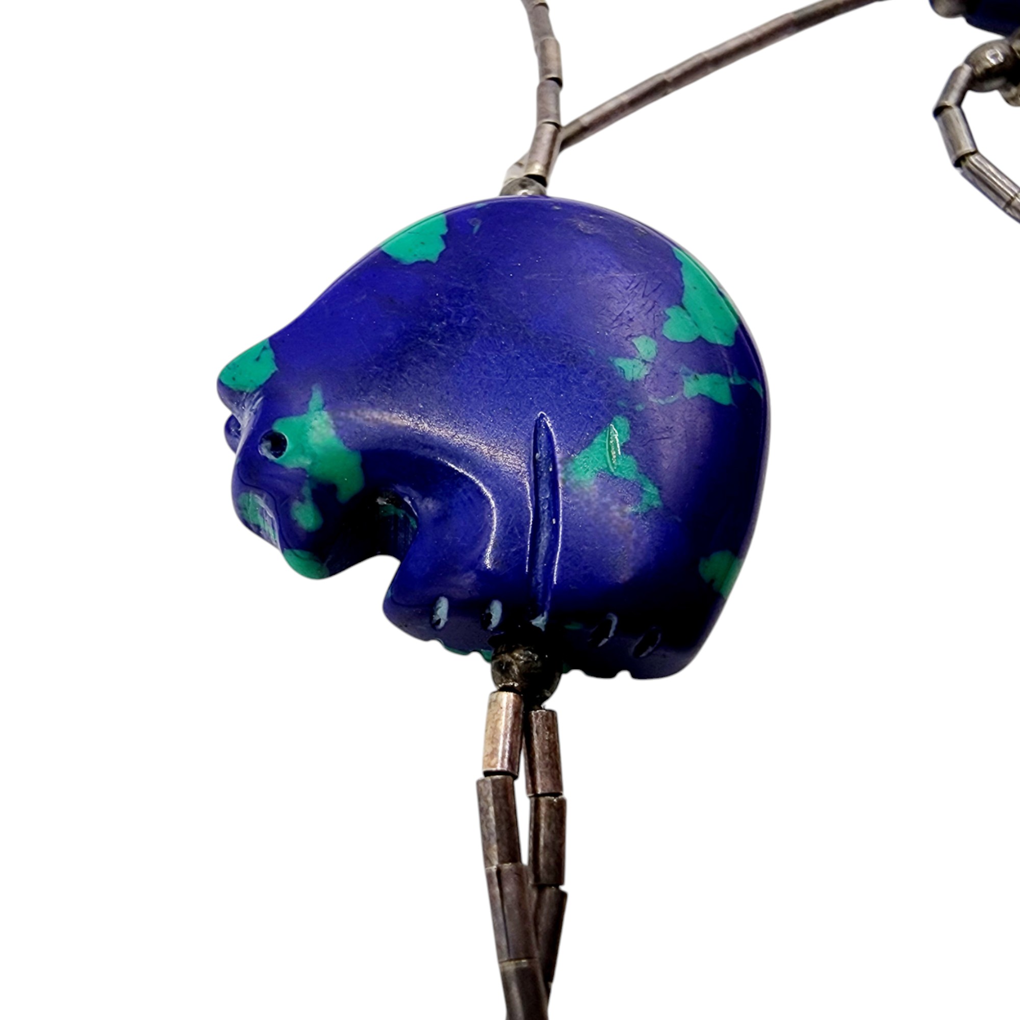 Sterling Liquid Silver Azurite Carved Bear Necklace 5.4g