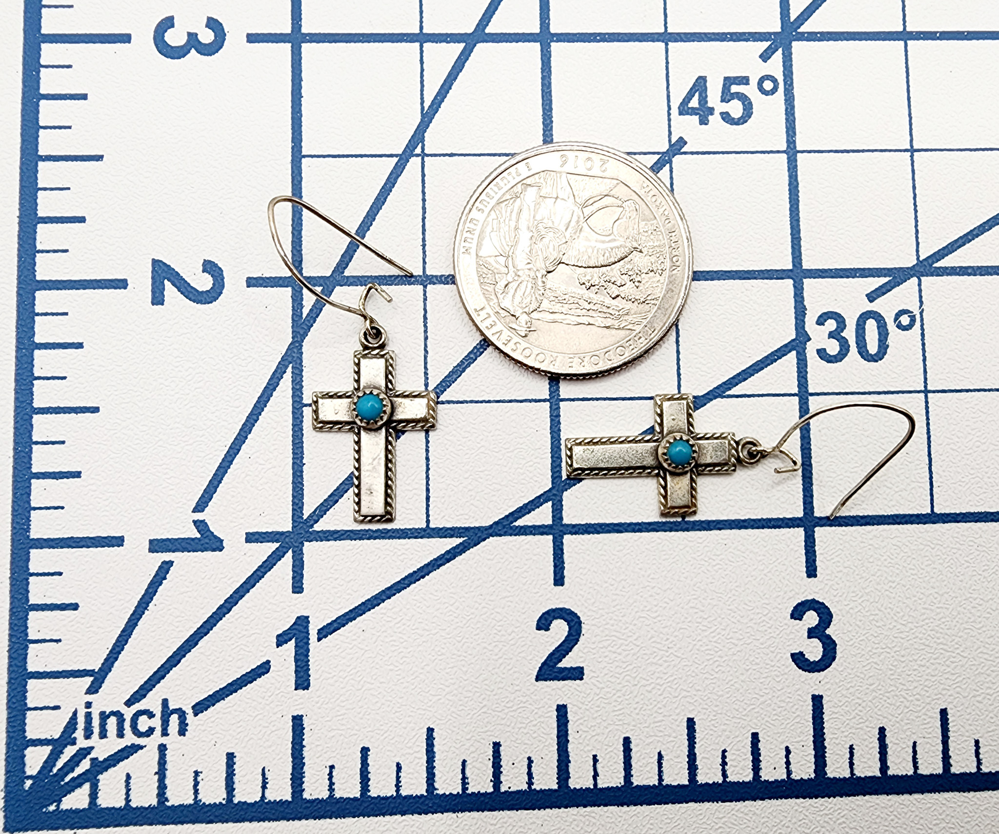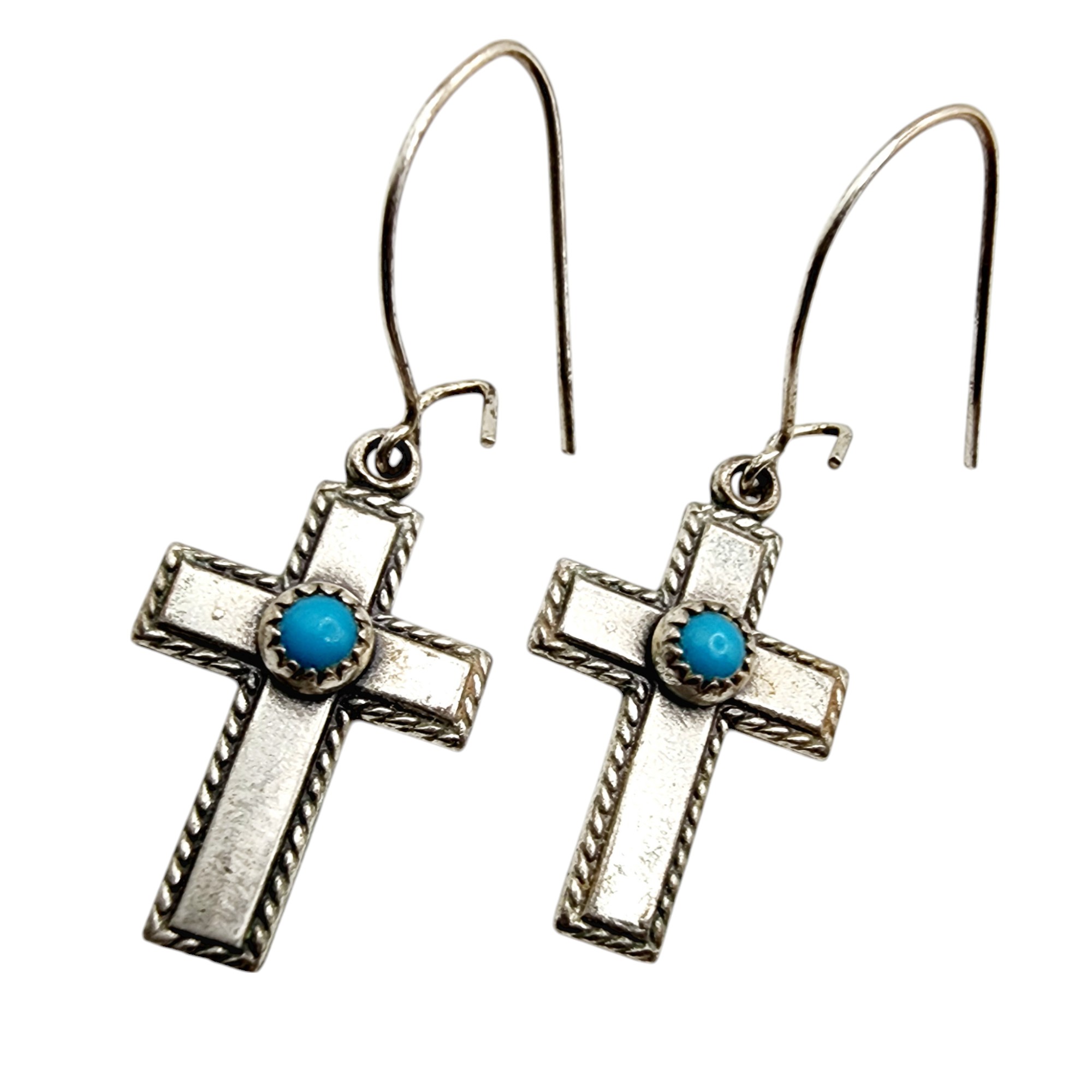 Sterling Southwest Turquoise Cross Dangle Earrings 2.5g