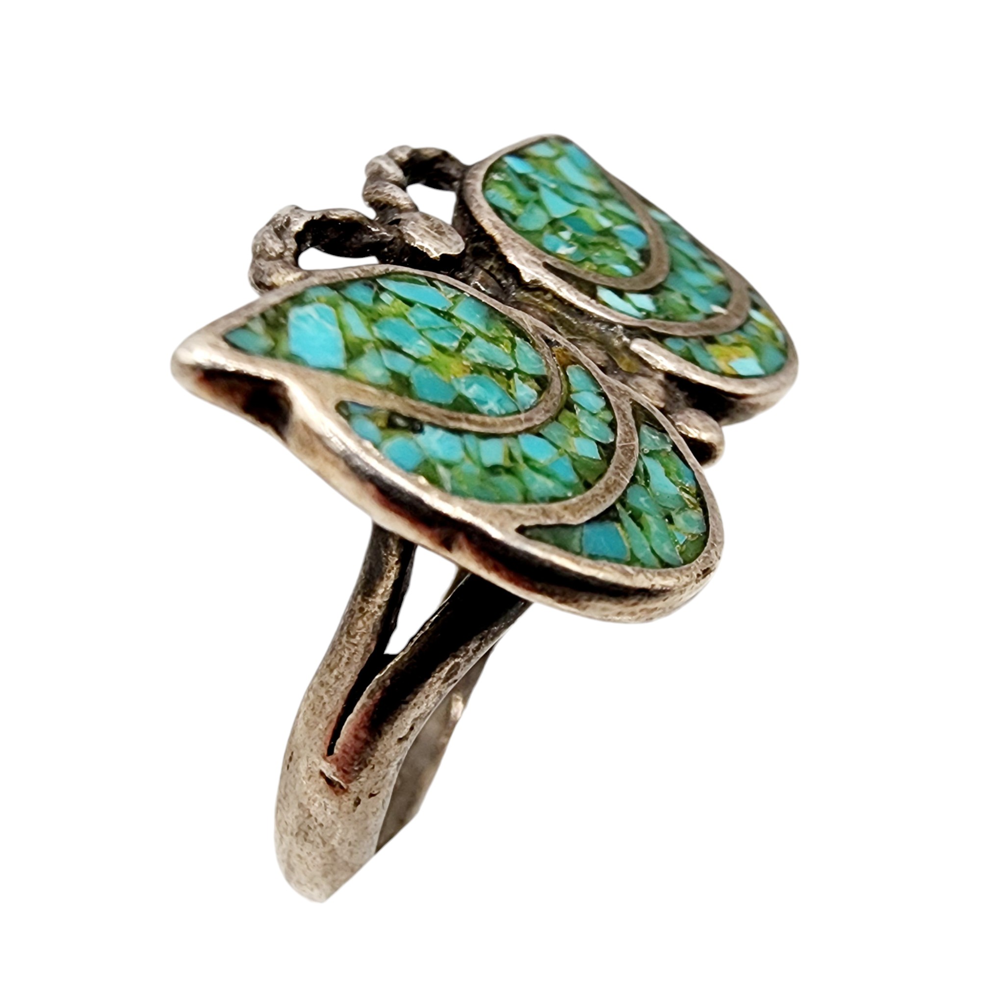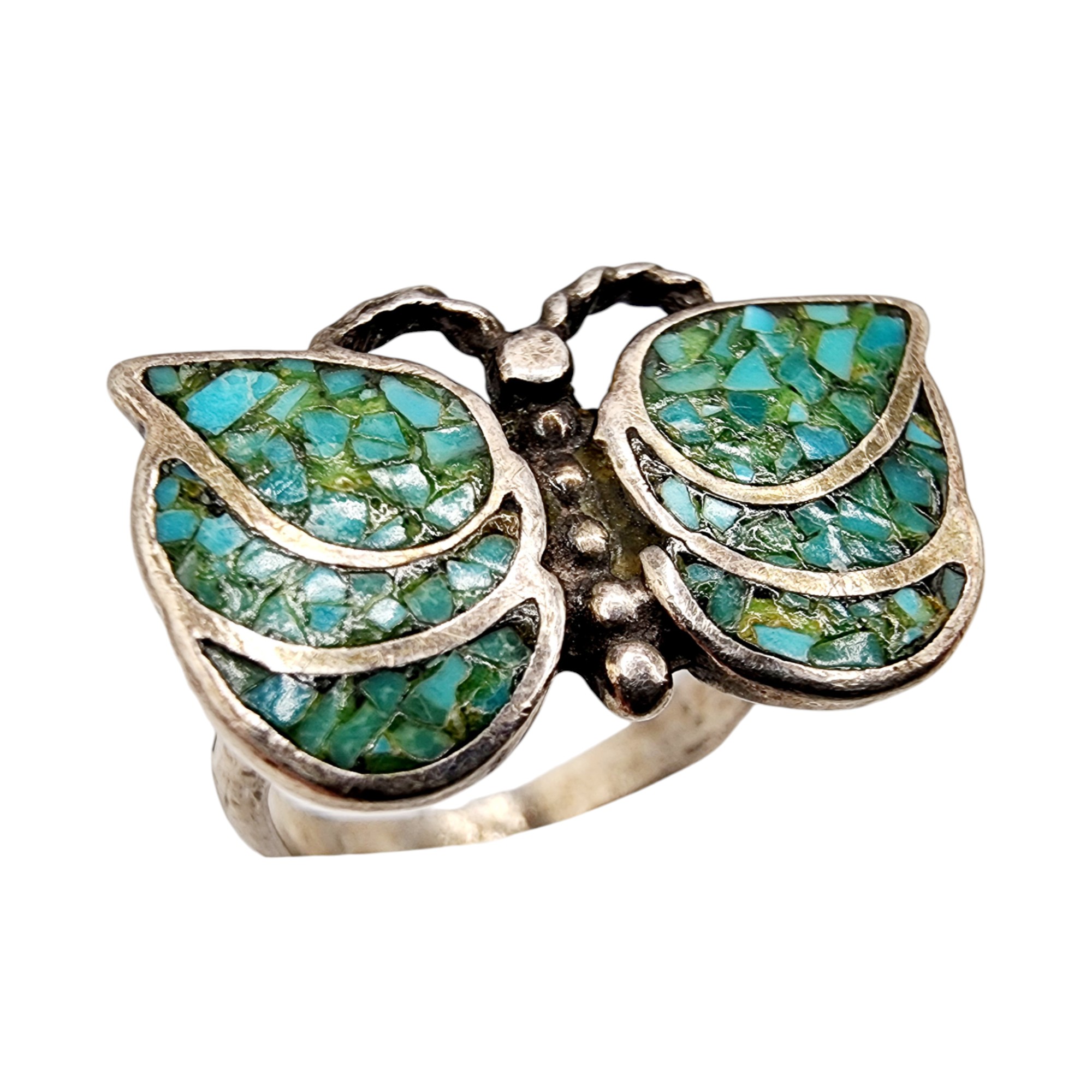 Sterling Native Crushed Turquoise Butterfly Ring SZ 5.25, 4.6g