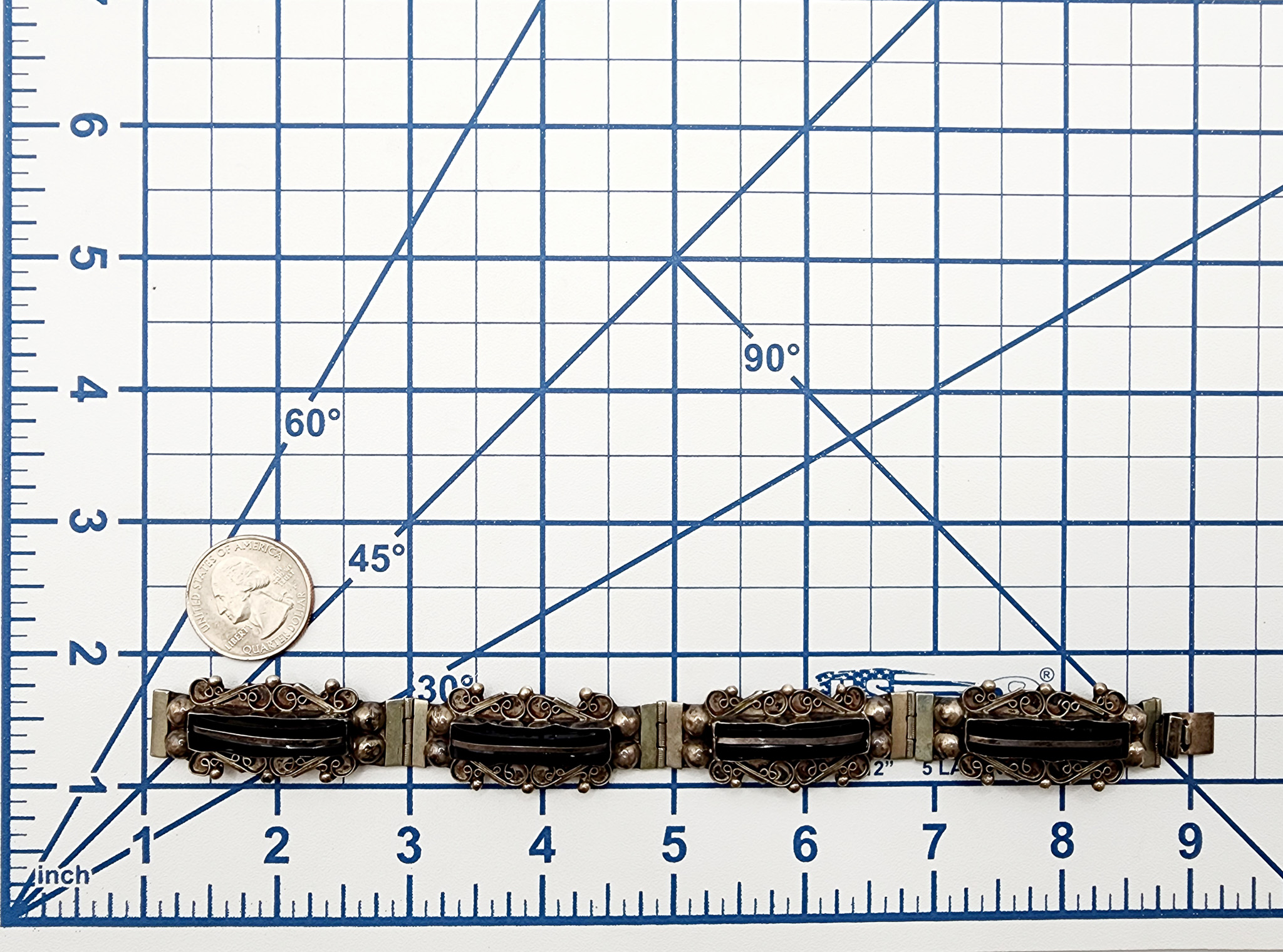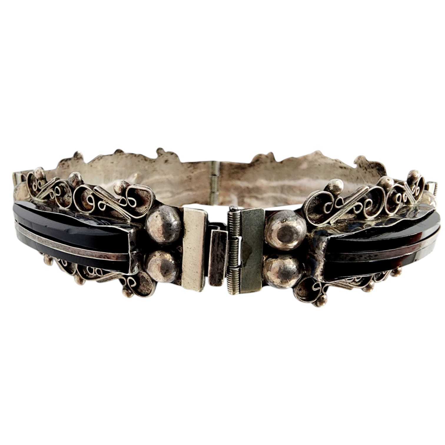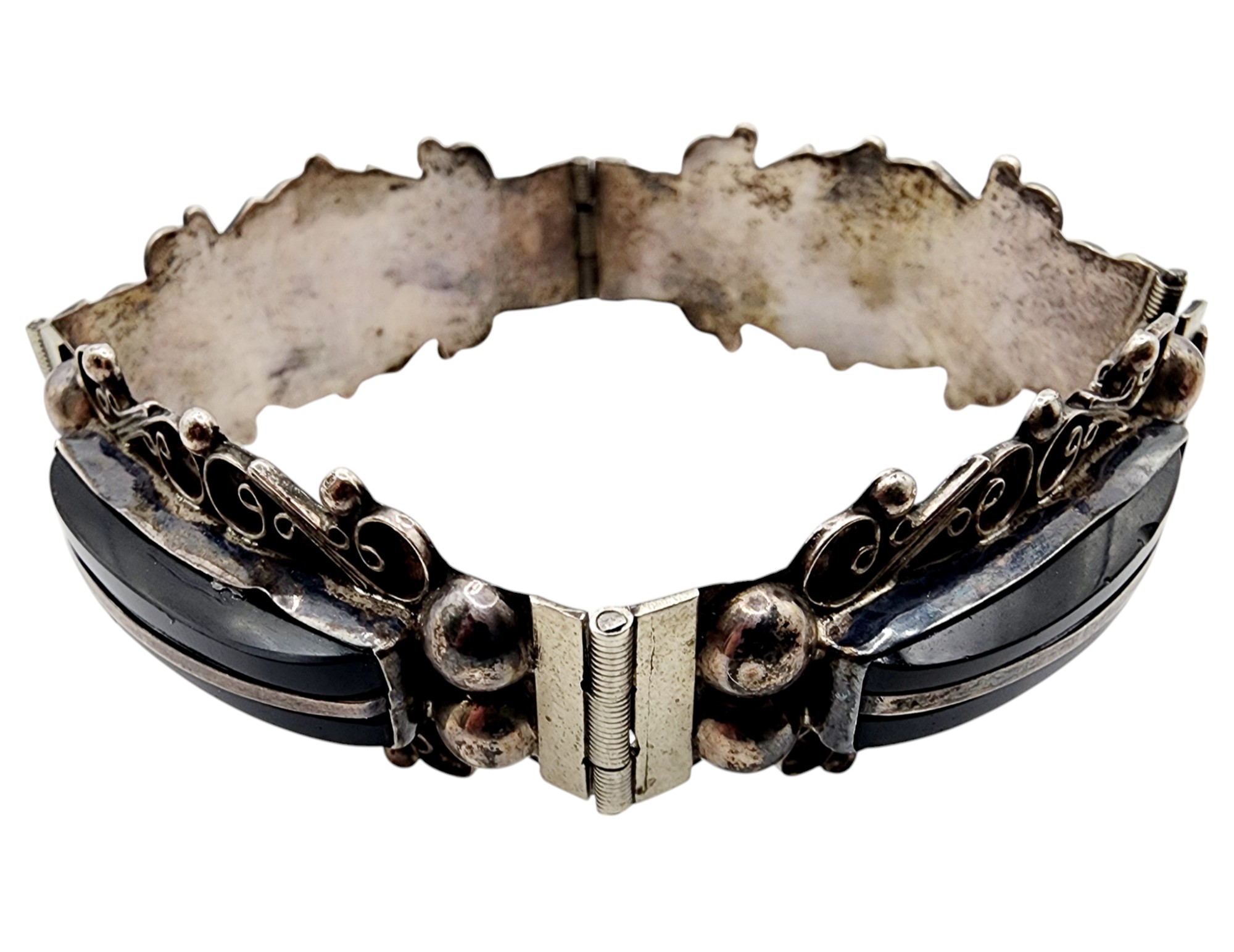Sterling Icuala MBM Mexico Onyx Scroll Panel Bracelet 27.7g