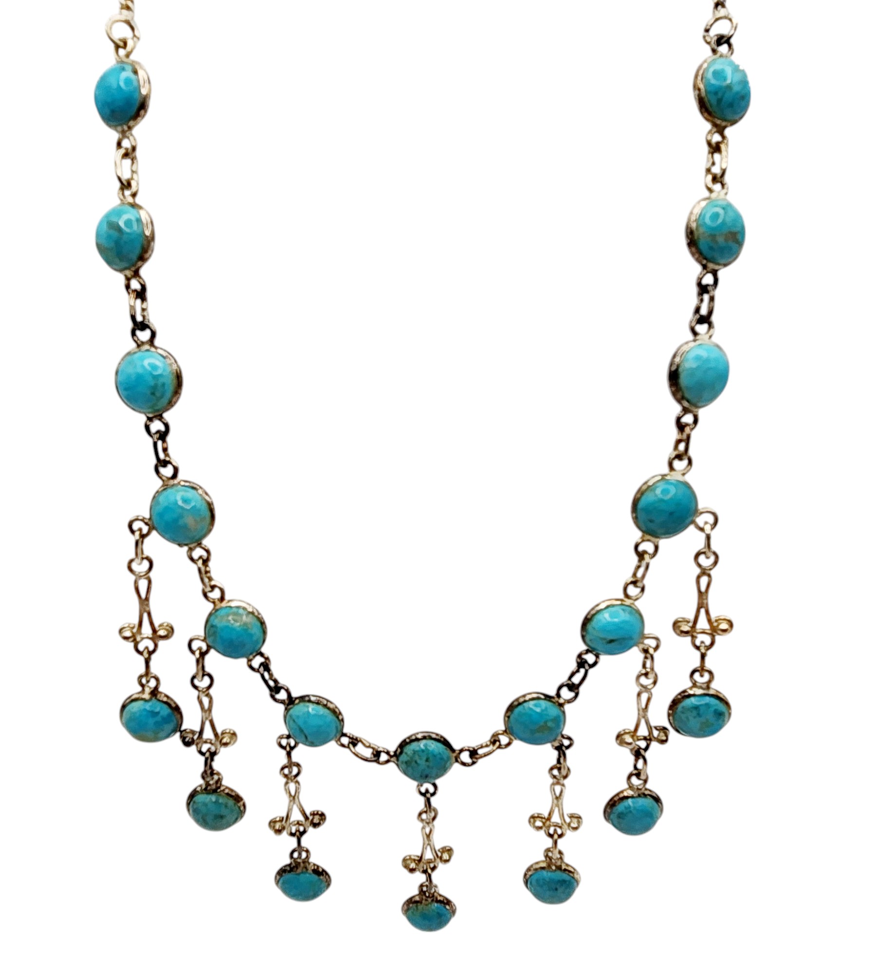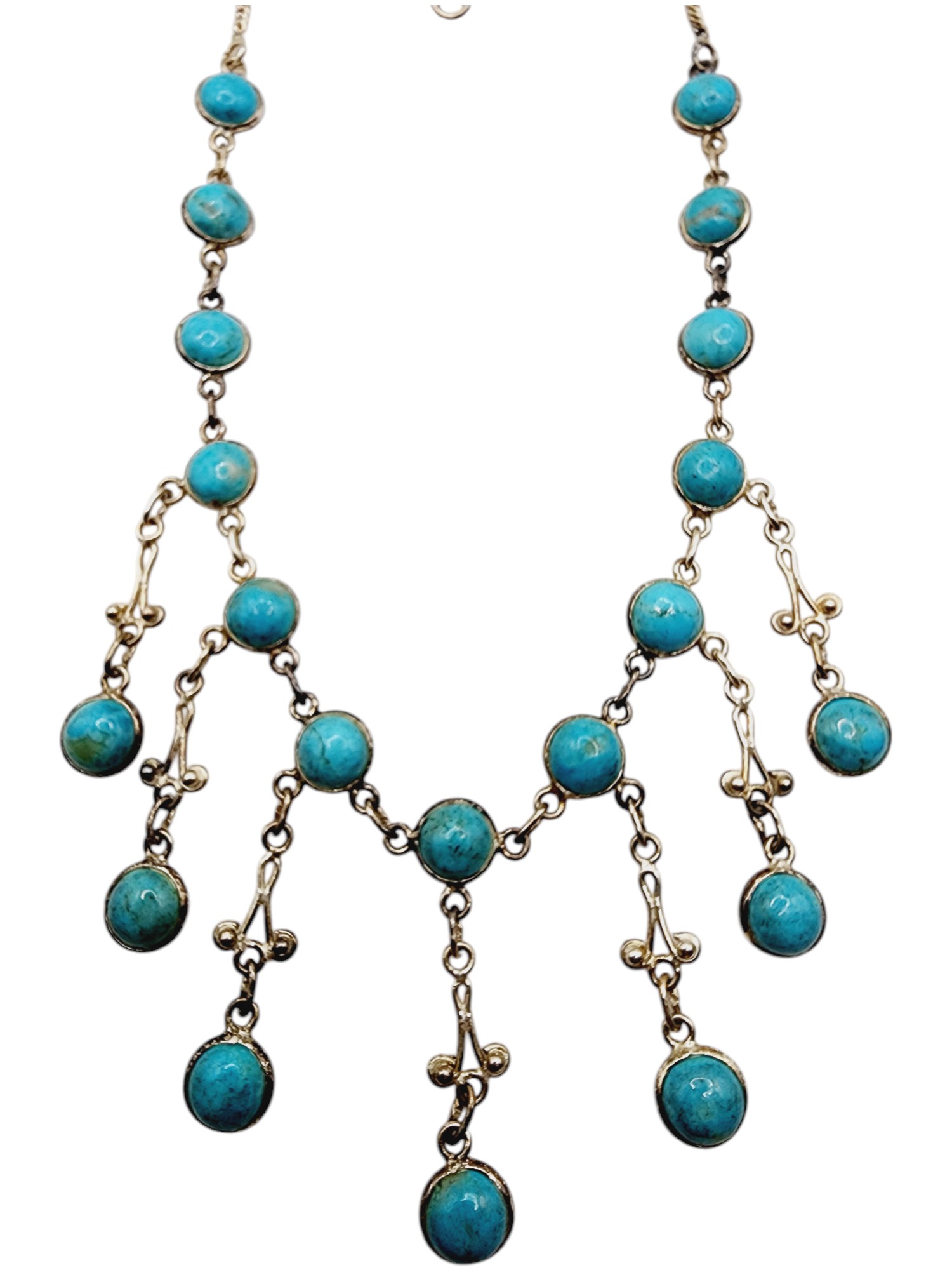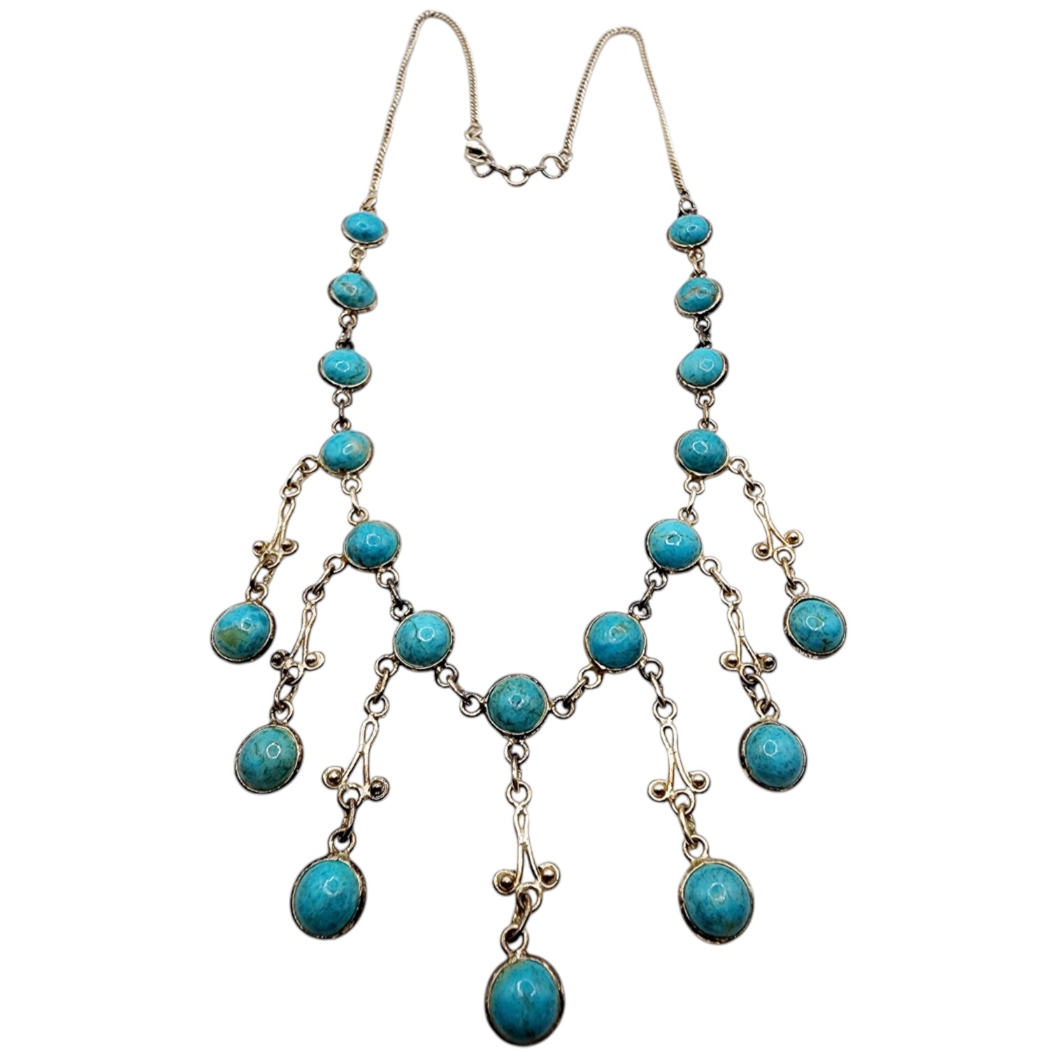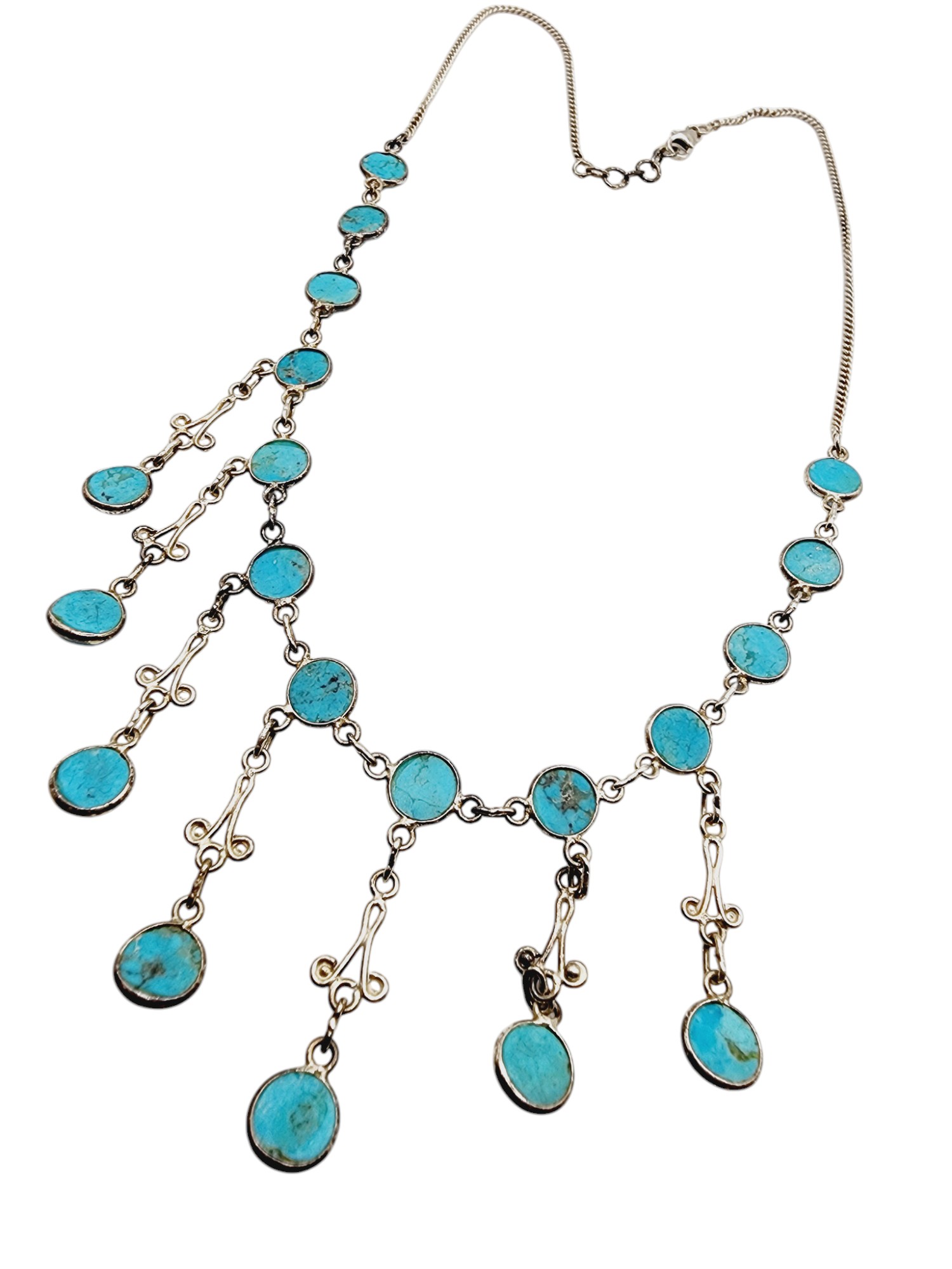 Sterling Faux? Turquoise Chandelier Necklace 13.7g