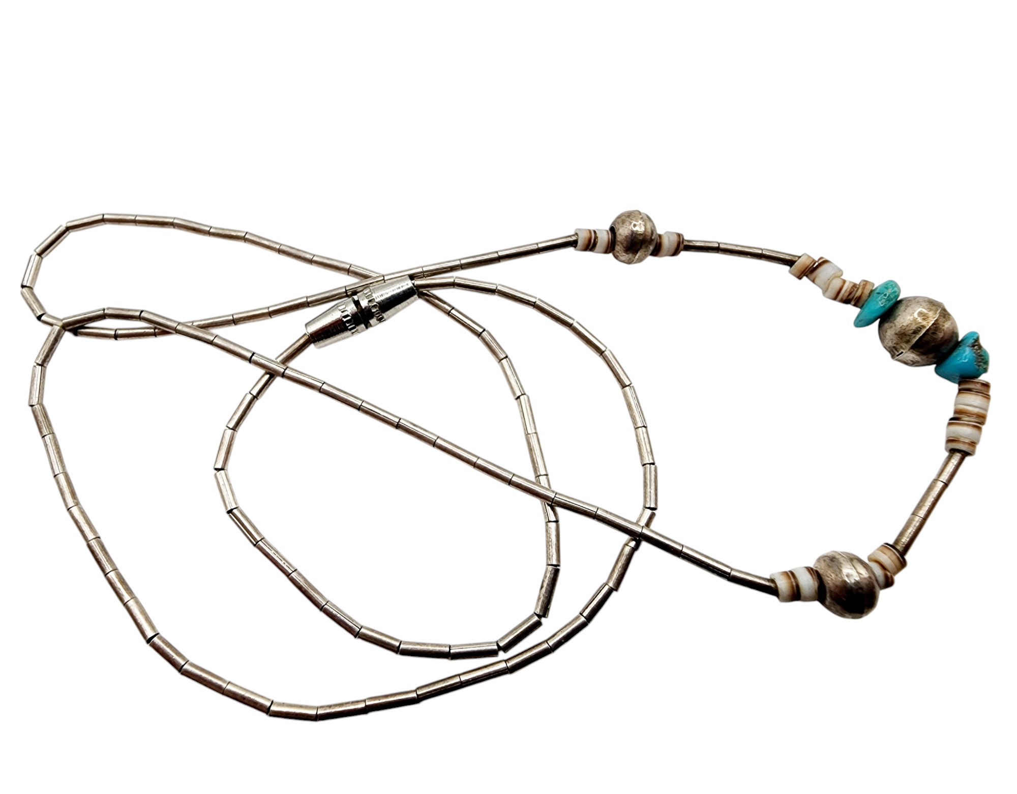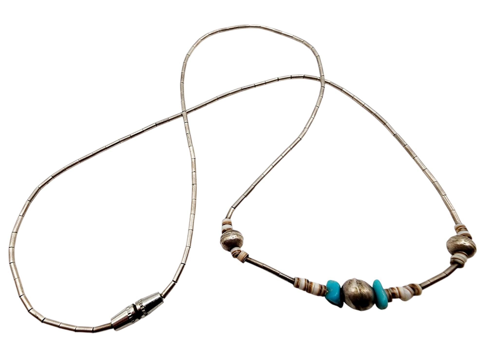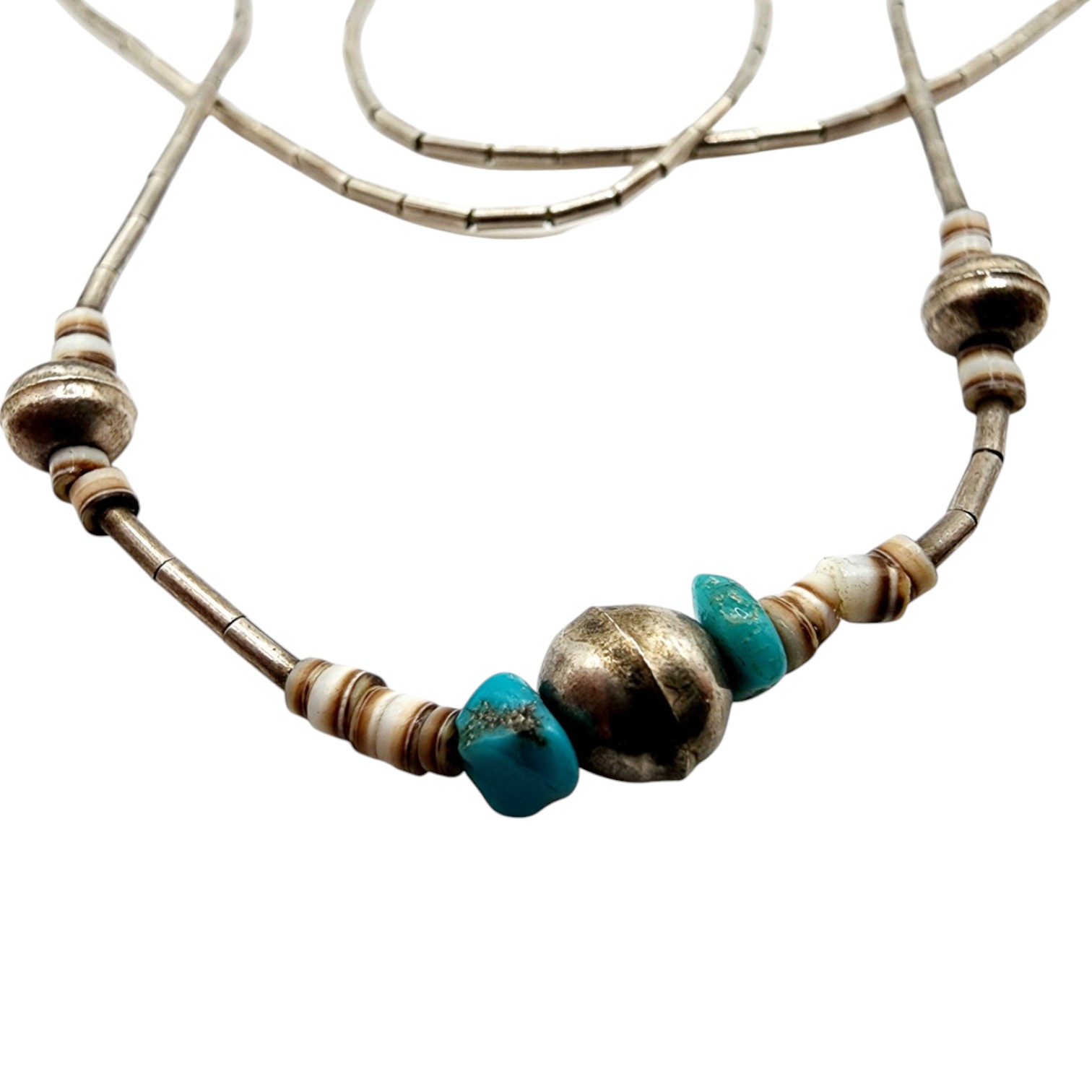 Sterling Liquid Silver Shell and Turquoise Necklace 3.9g
