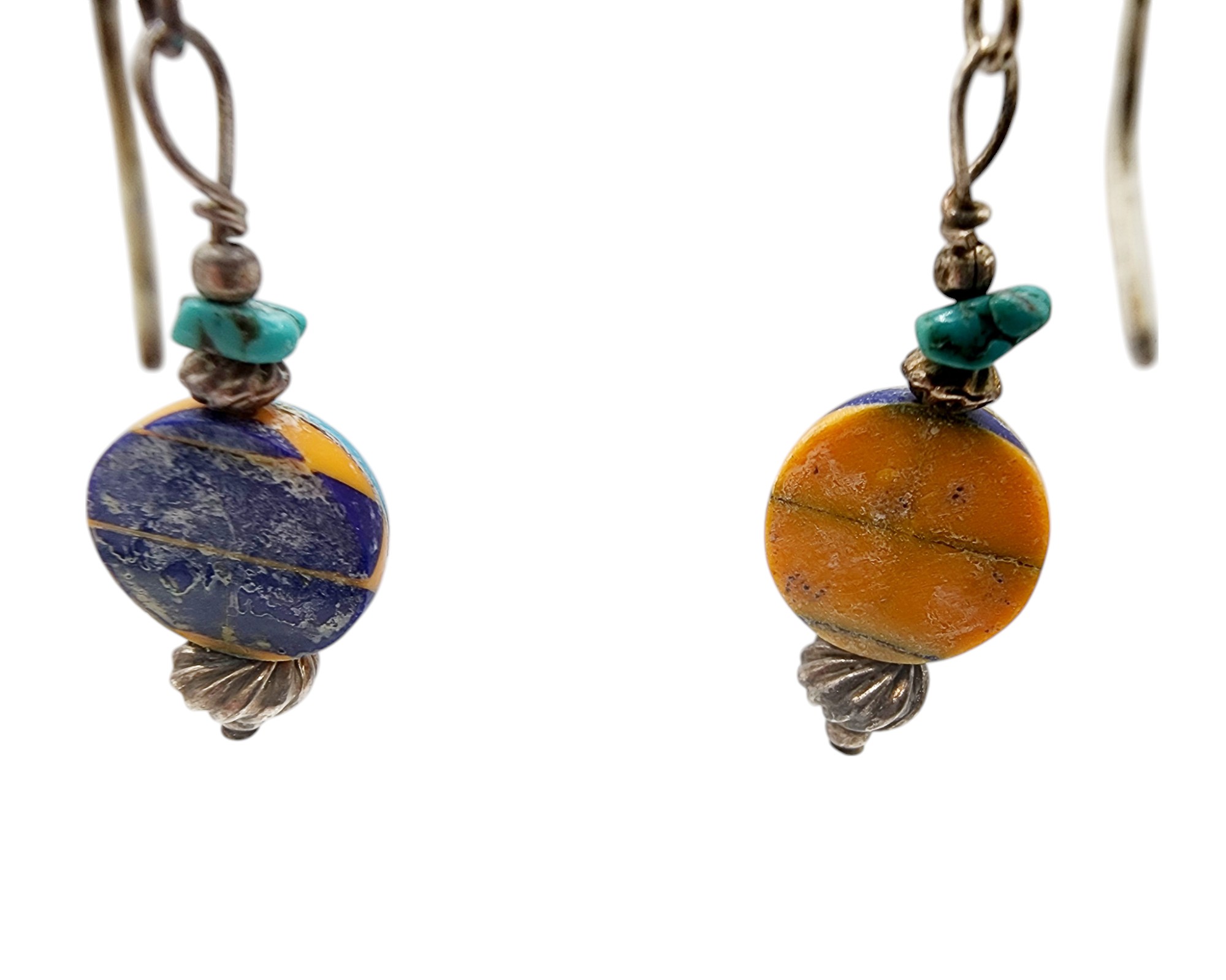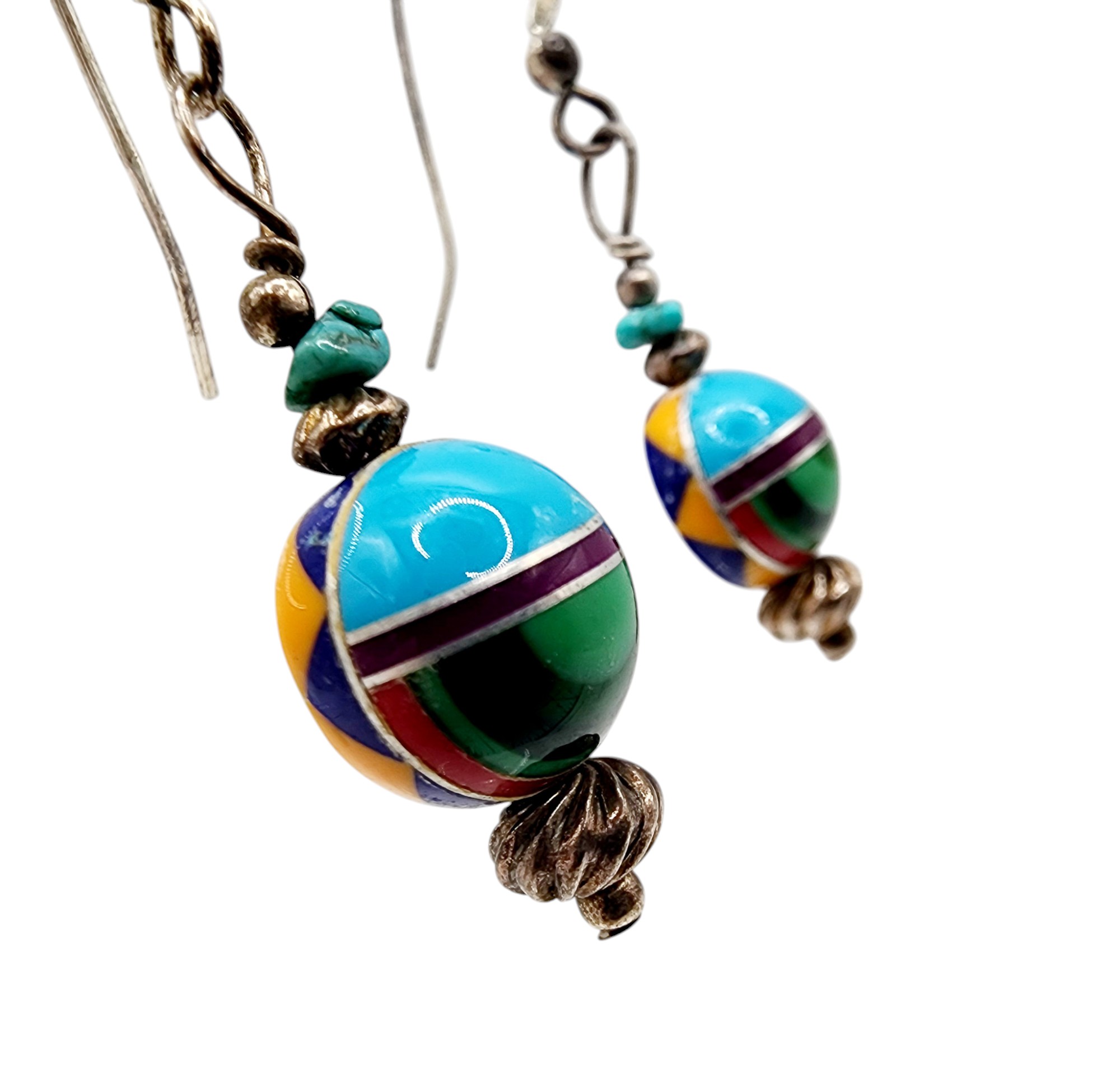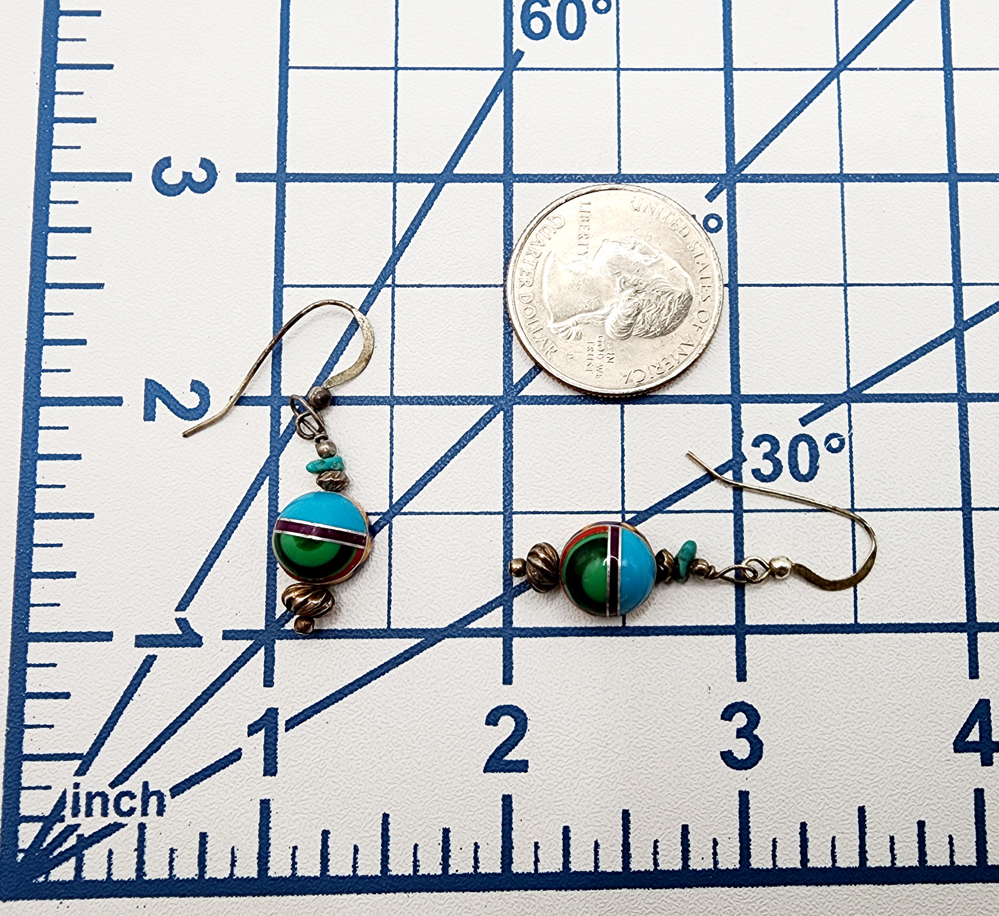 Sterling Southwest Multistone Inlay Dangle Earrings 2.6g