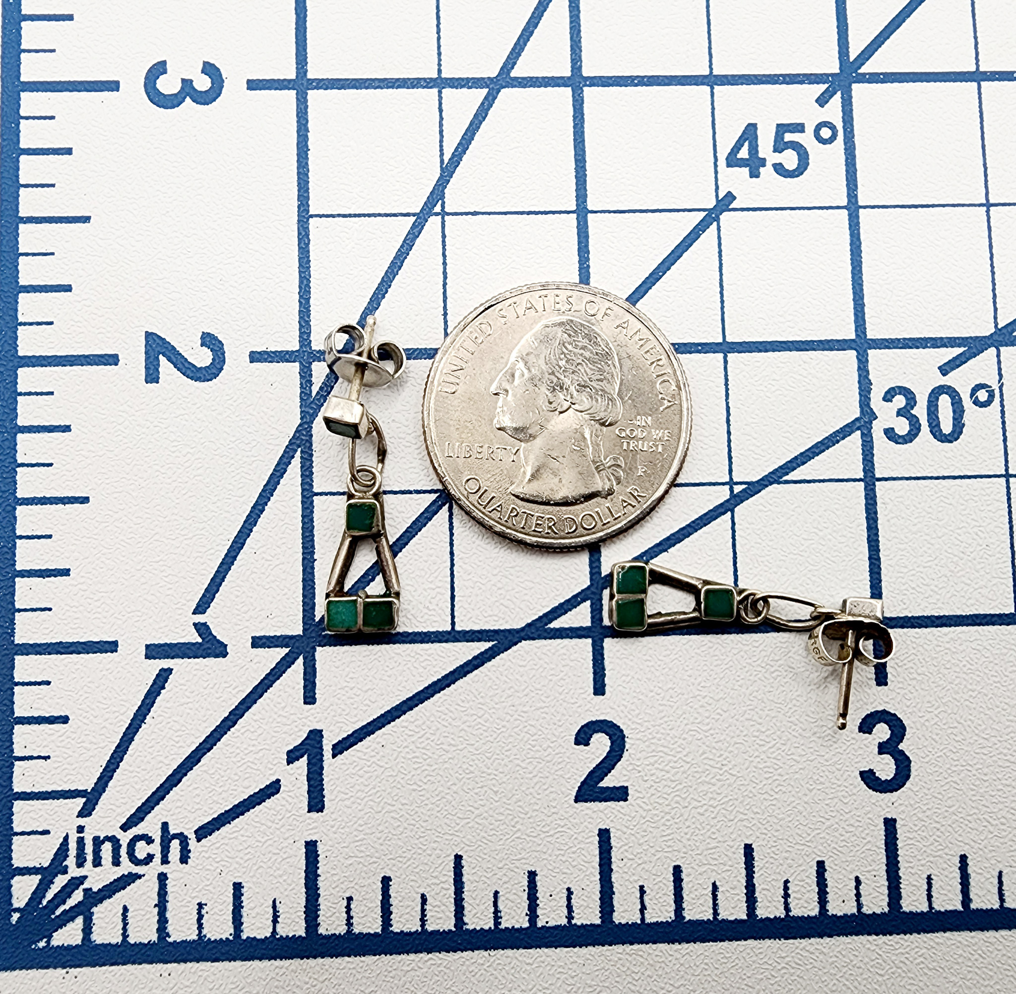 Sterling Vintage Malachite Dangle Earrings 1.6g