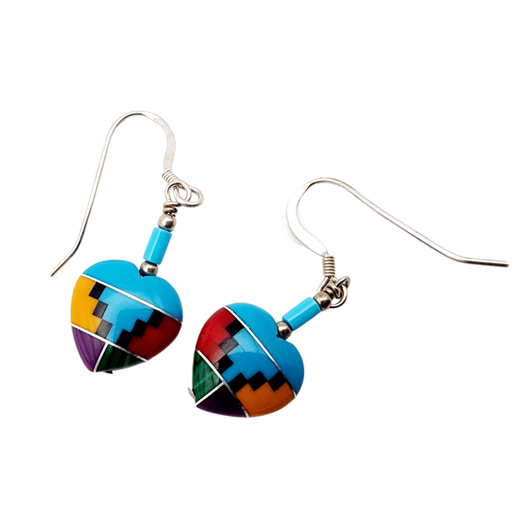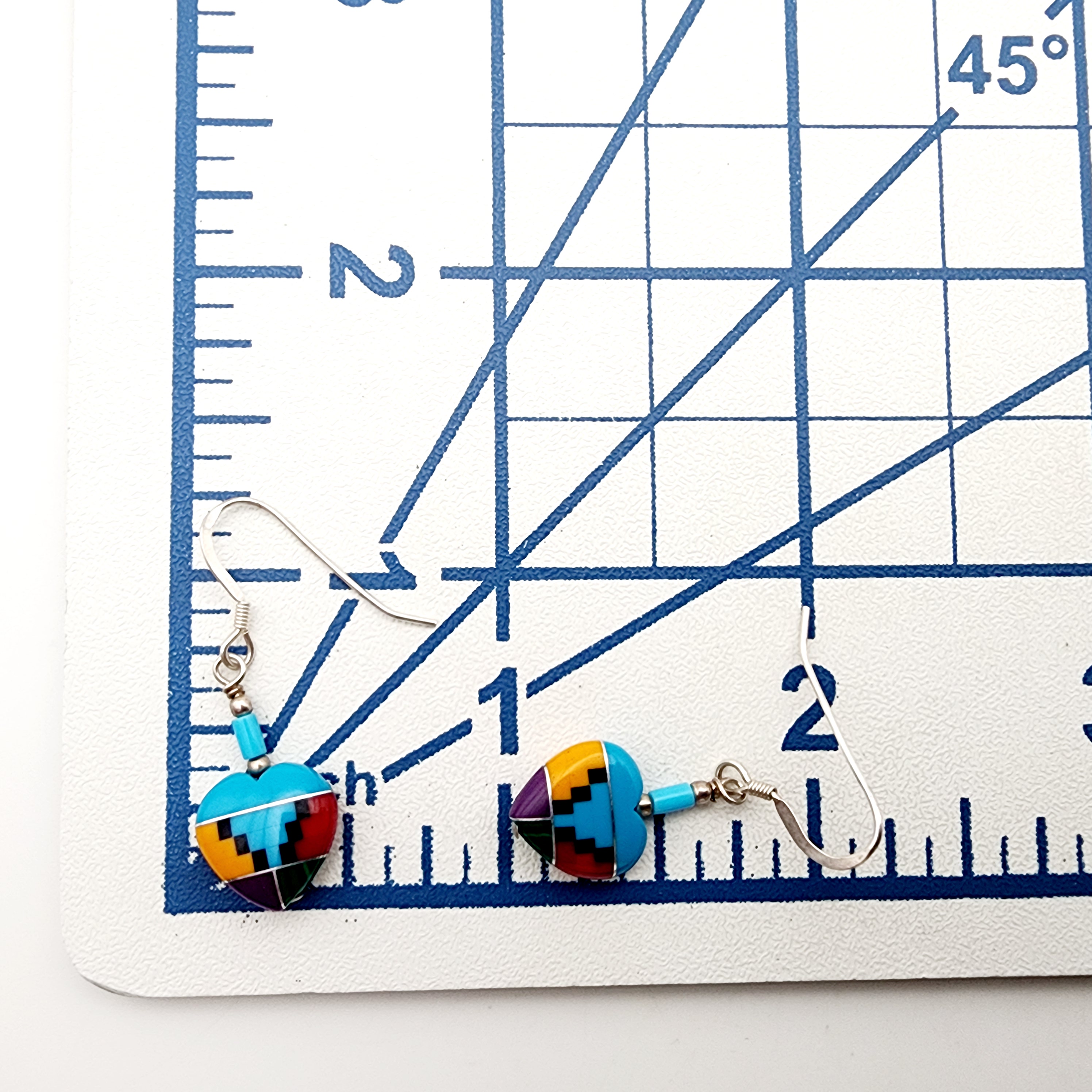 Sterling Southwest Multistone Inlay Heart Earrings 1.4g