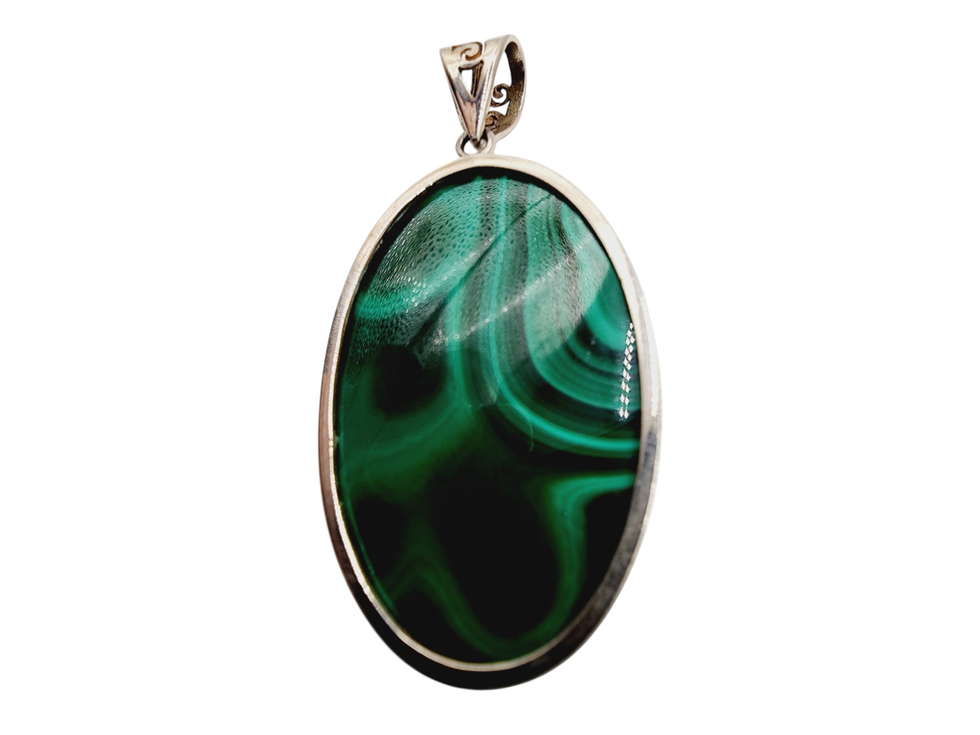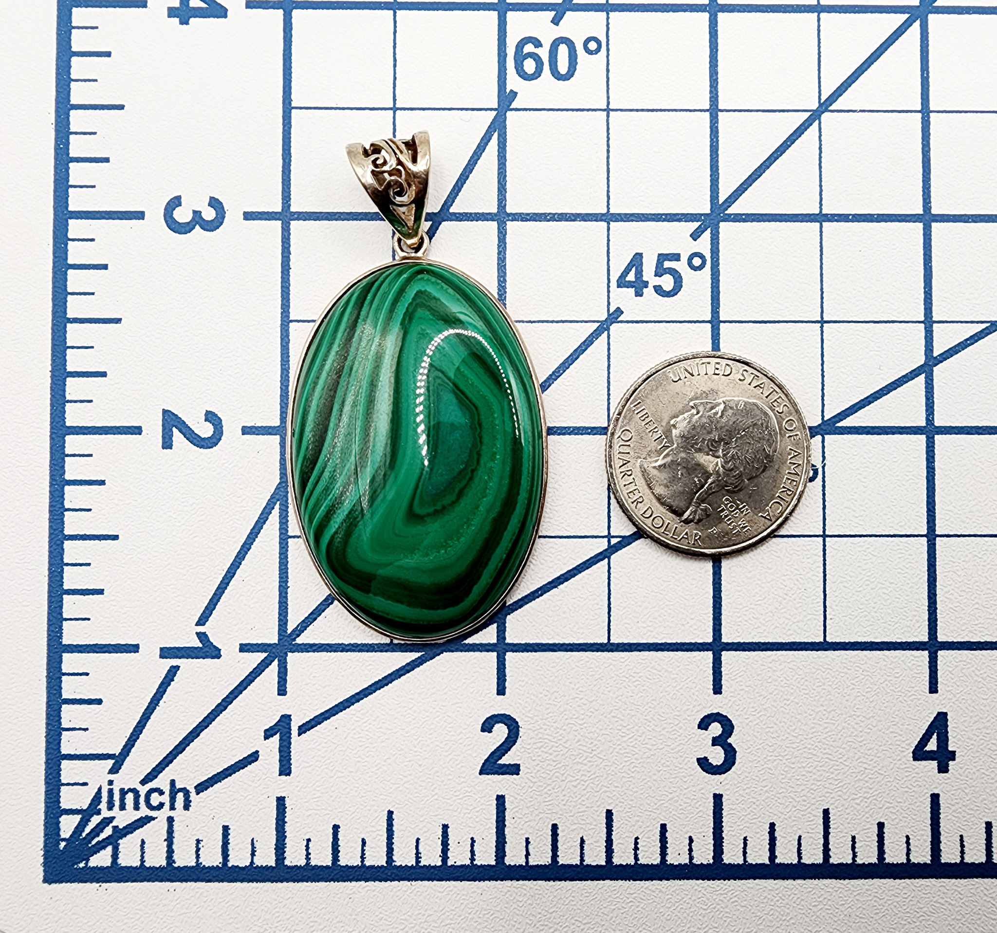 Sterling Southwestern Malachite Oval Pendant 20.3g