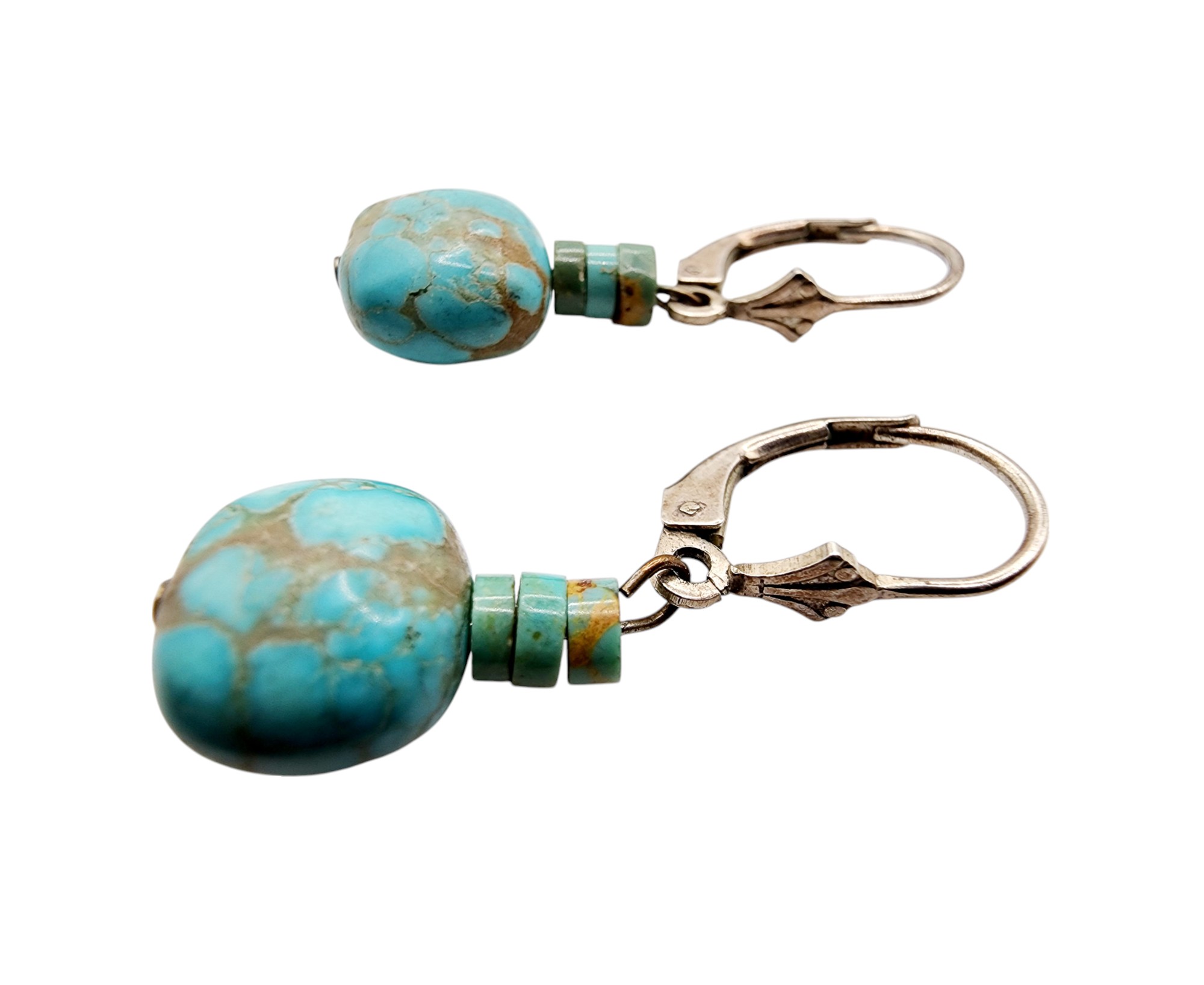 Sterling Heishe Turquoise Dangle Earrings 3.1g