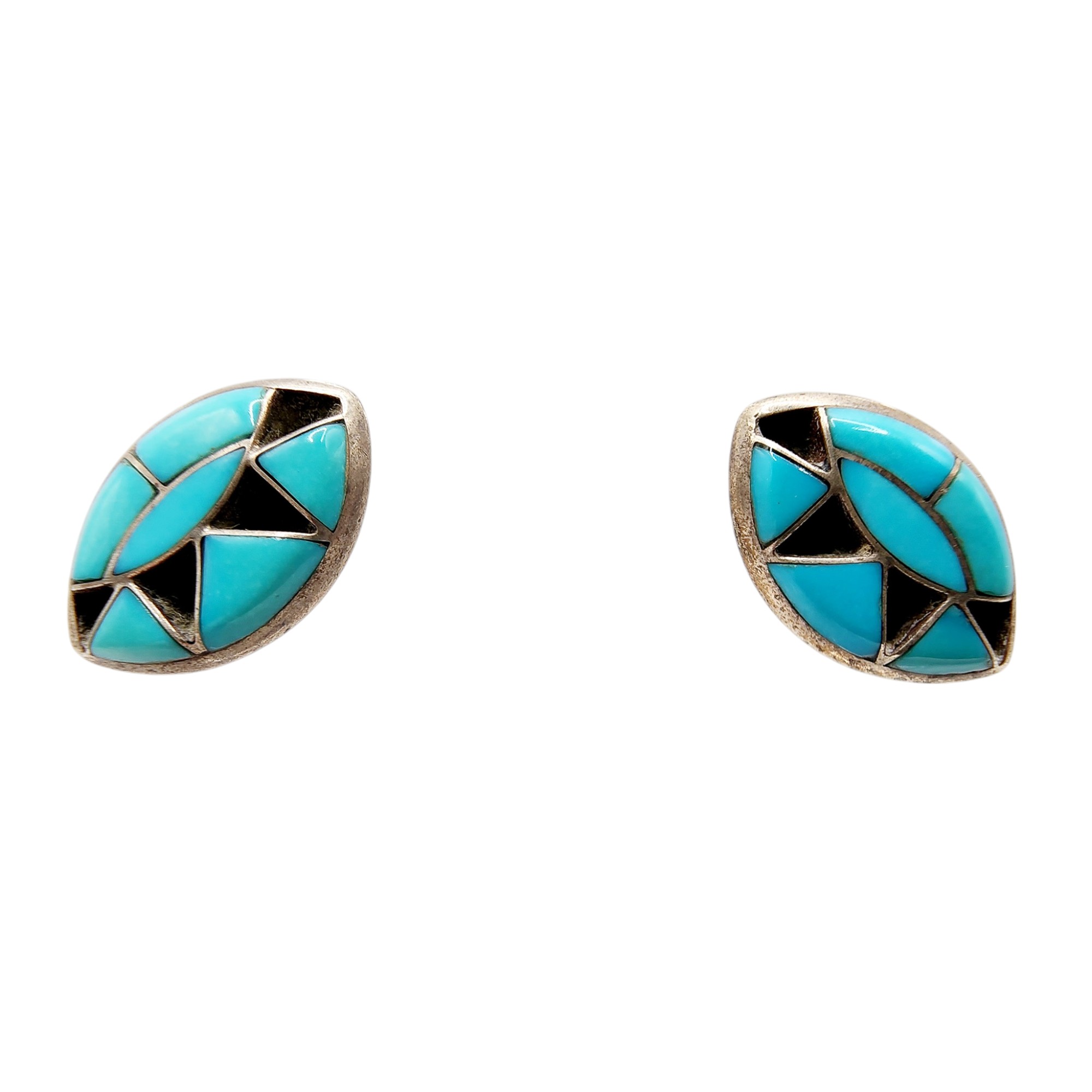 Sterling Native Onyx/Turquoise Inlay Stud Earrings 1.9g