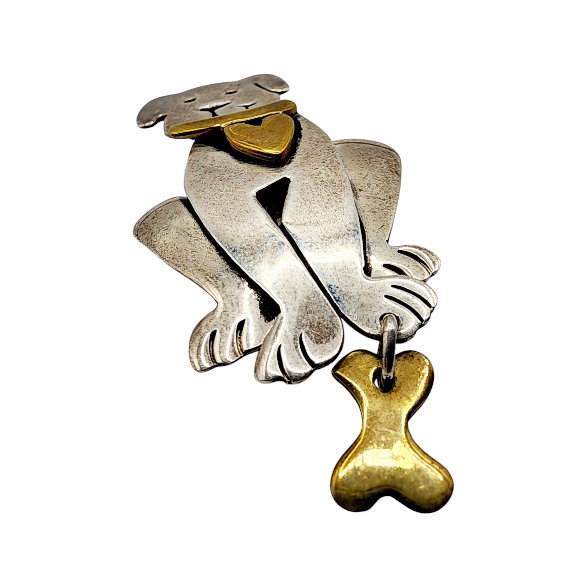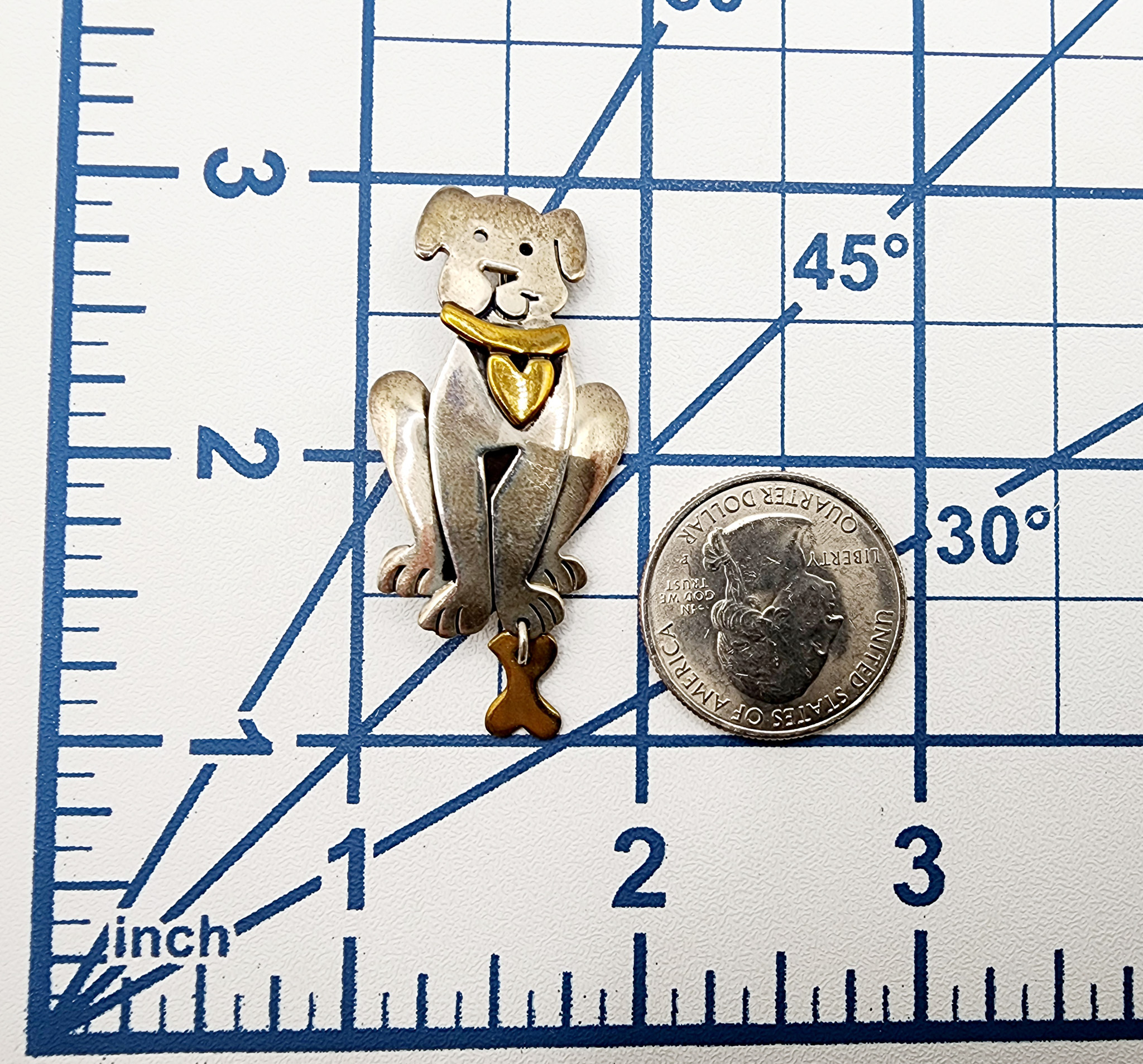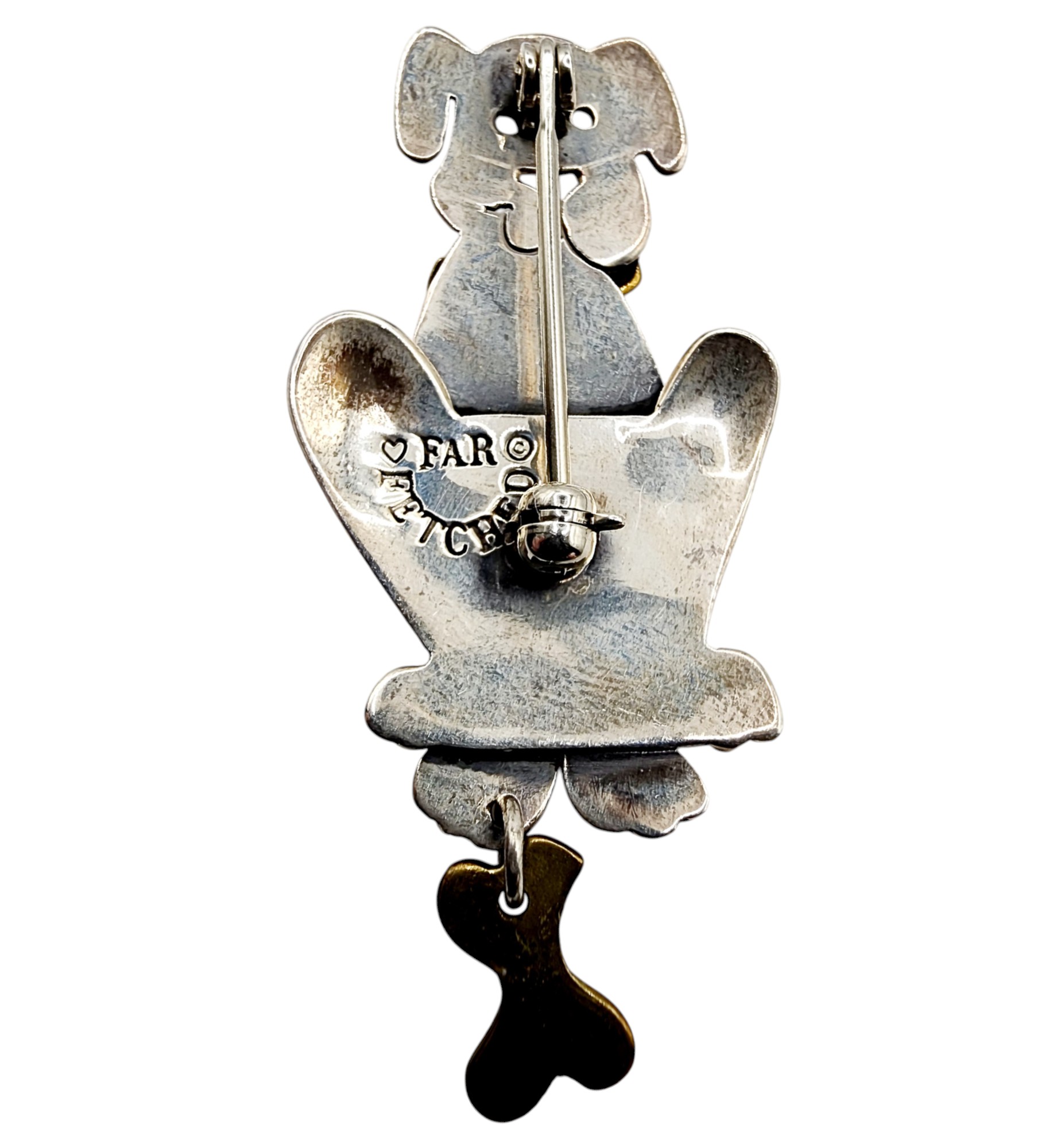 Sterling ‘Far Fetched’ Dog w/ Dangle Bone Brooch 6.6g
