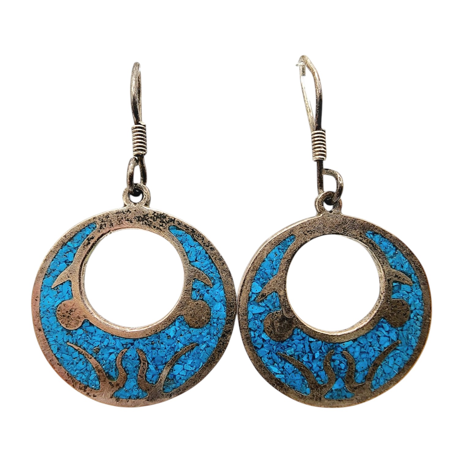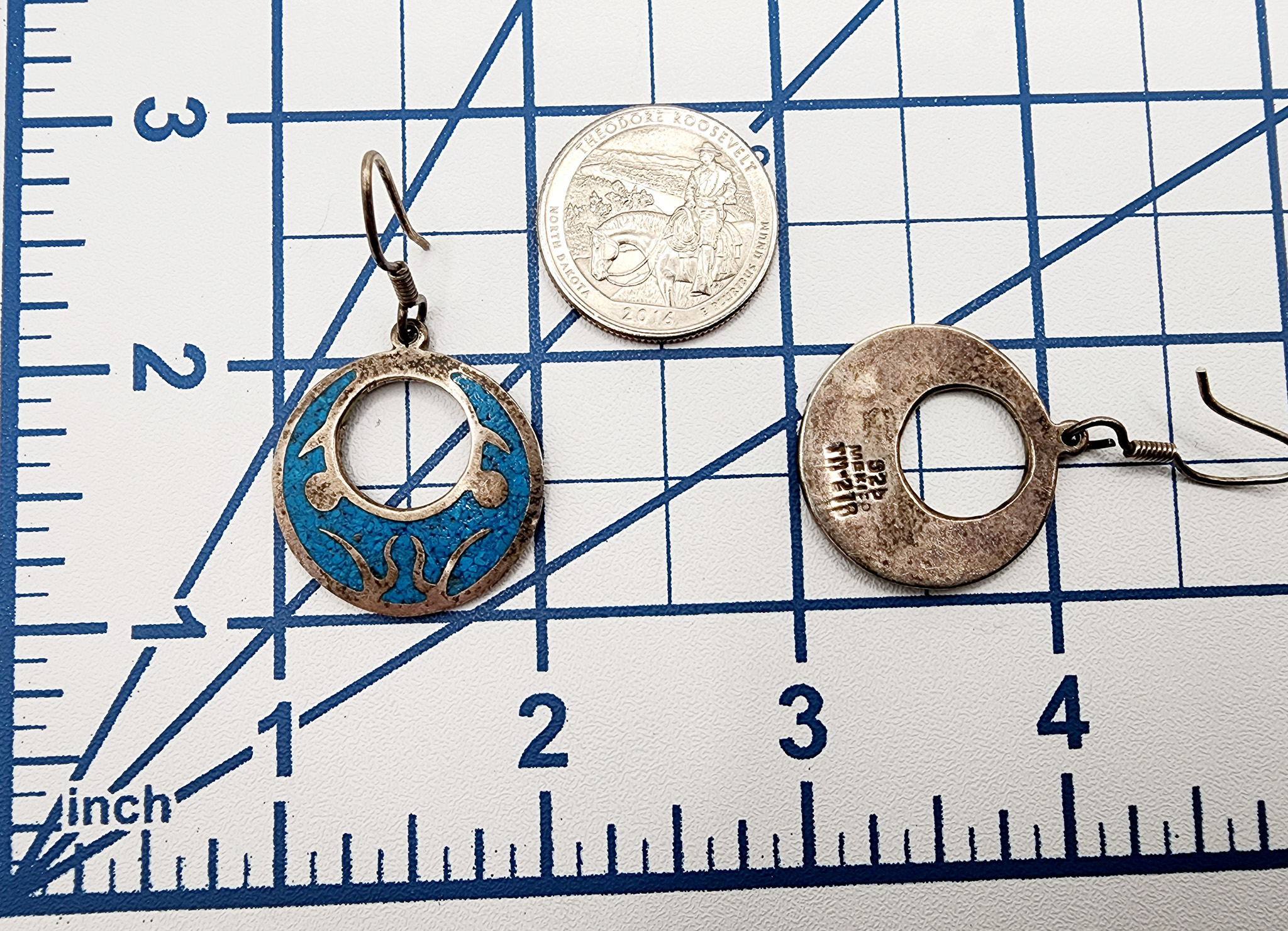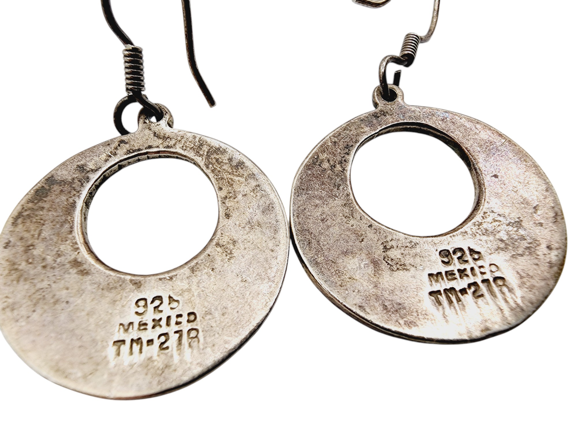 Sterling Taxco TM-276 Crushed Turquoise Dangle Earrings 11g