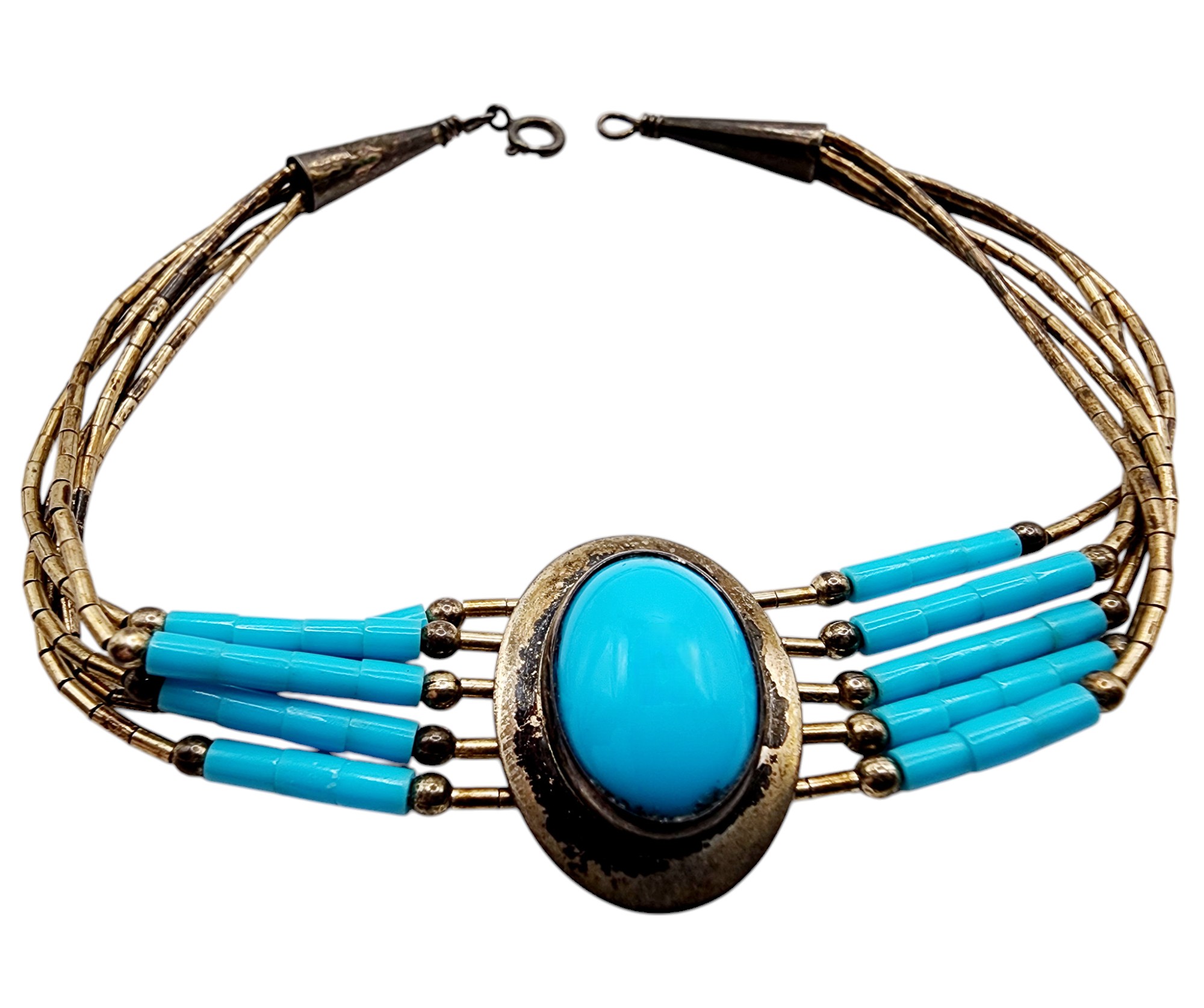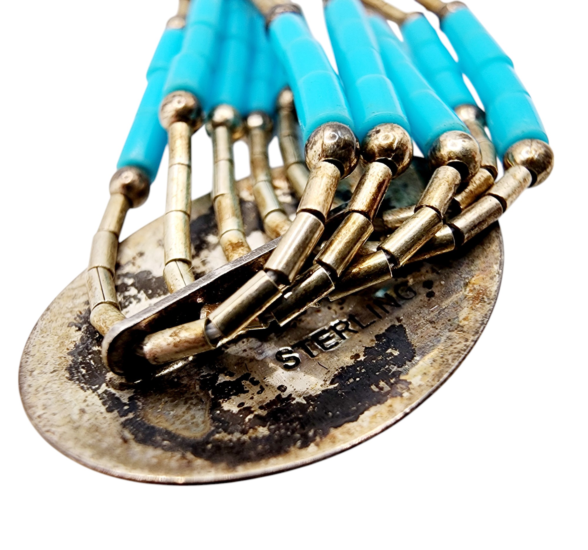 Sterling Native Liquid Silver and Turquoise Beaded Bracelet 6.6g