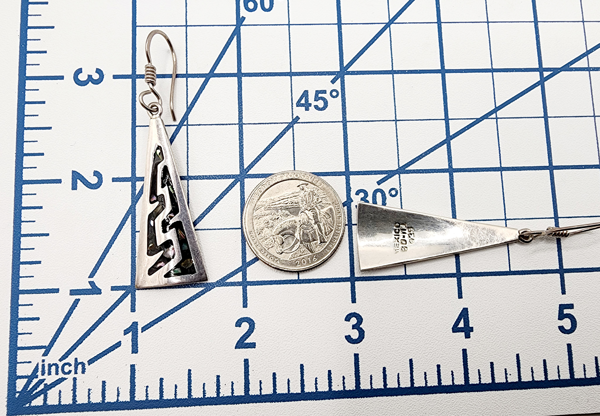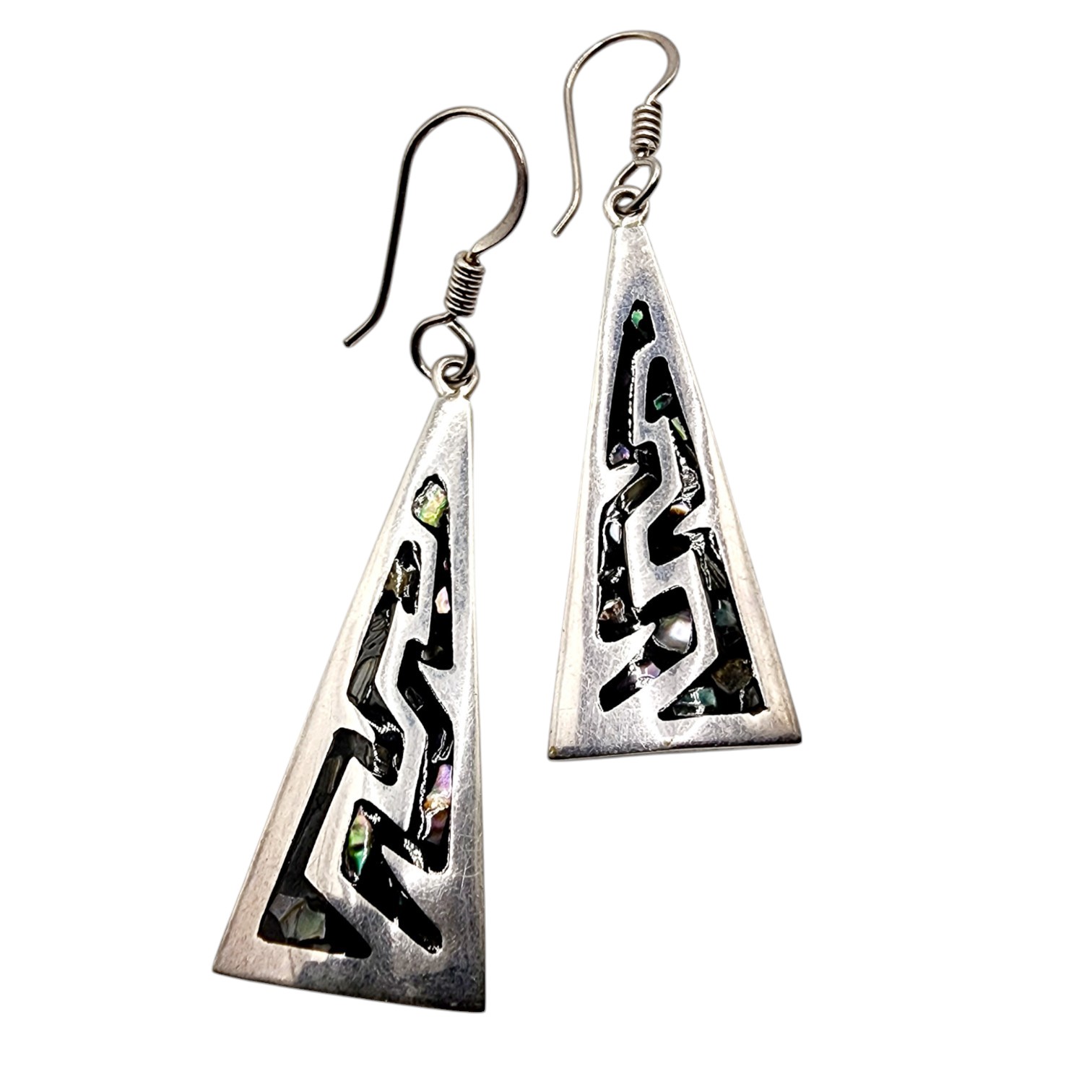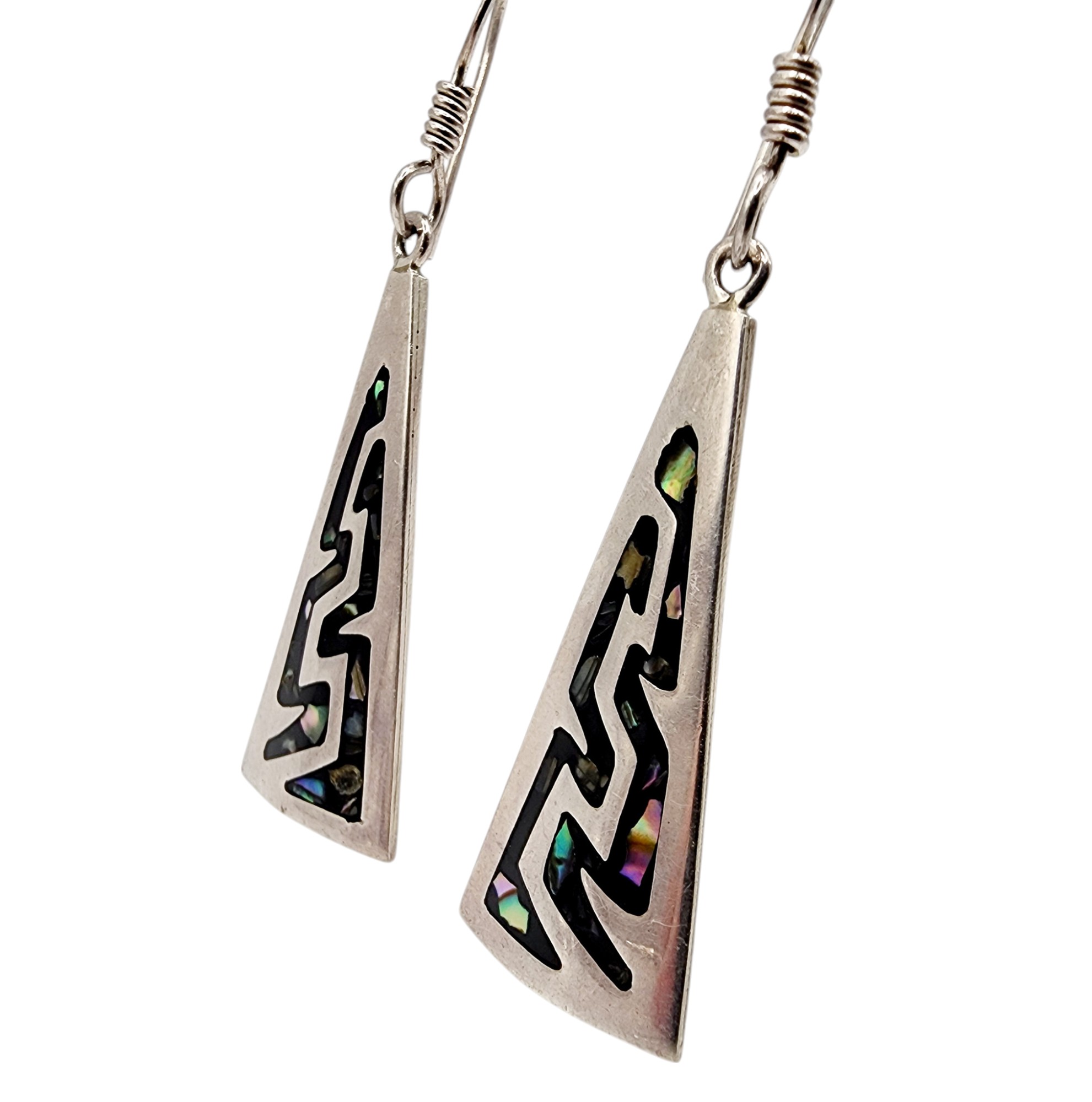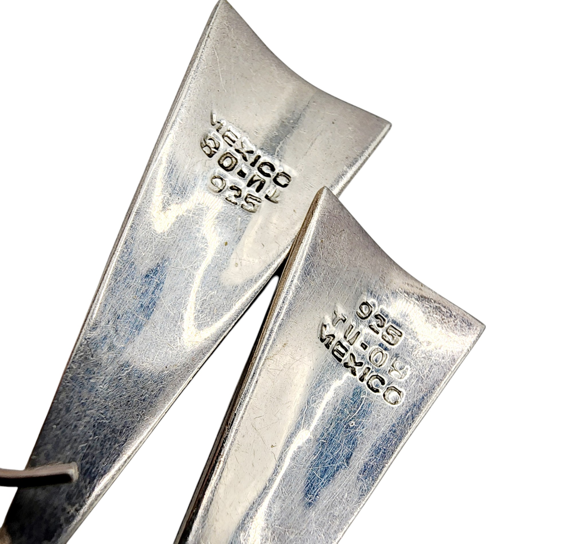Sterling Taxco TU-08 Triangle Inlay Dangle Earrings 11.4g