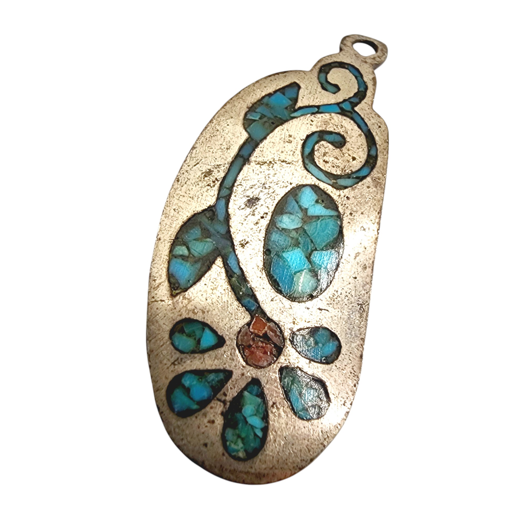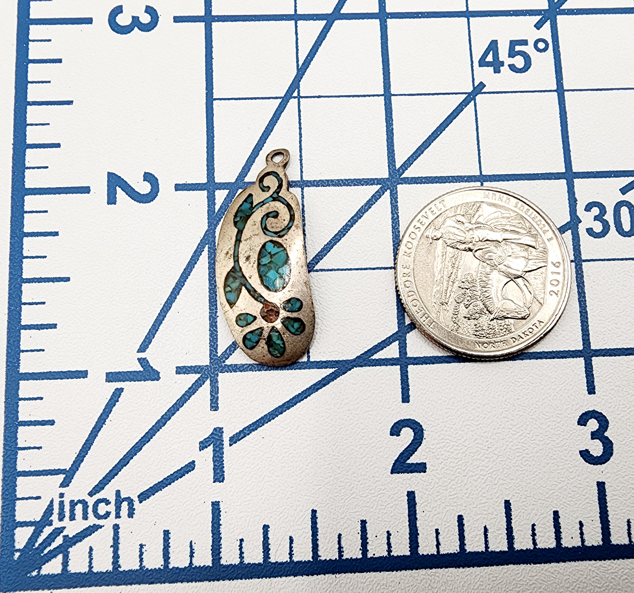 Sterling Native Crushed Turquoise Inlay Flower Pendant 3g