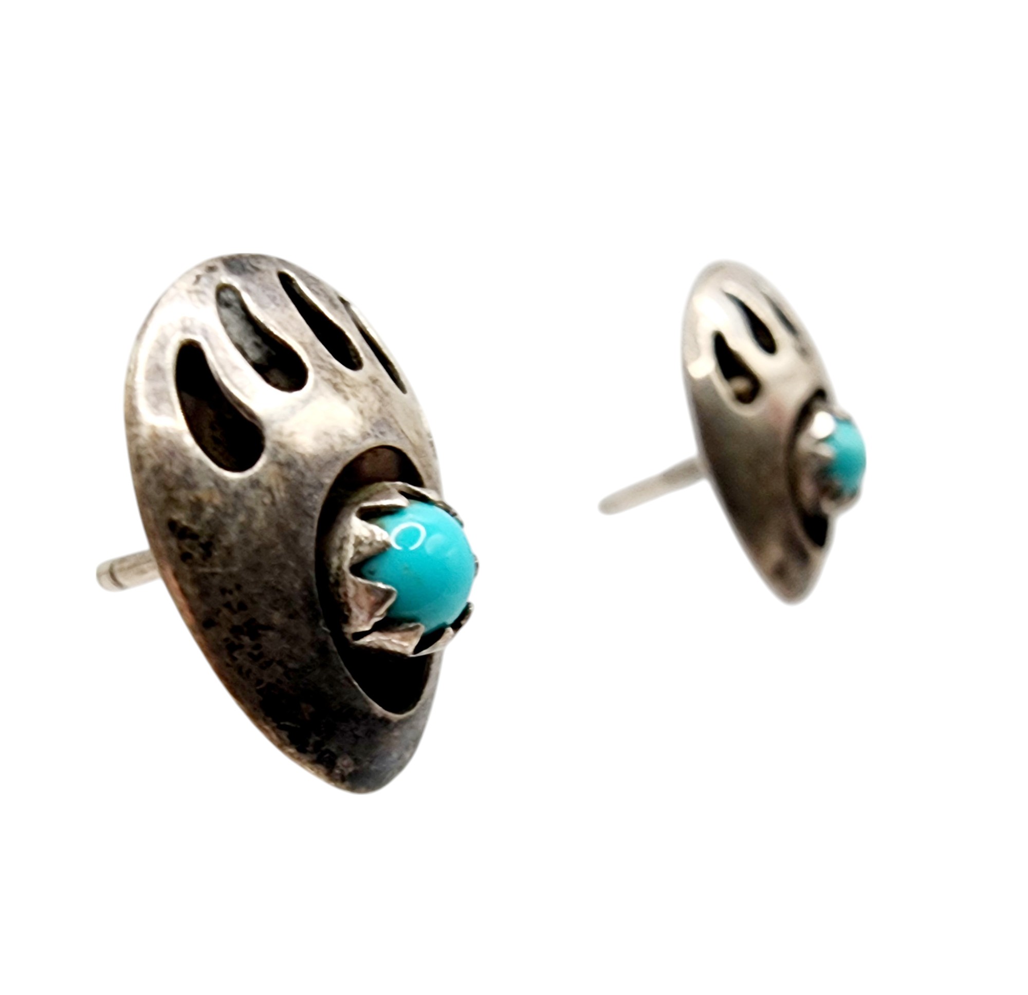 Sterling Navajo Turquoise Bear Claw Stud Earrings 1.2g