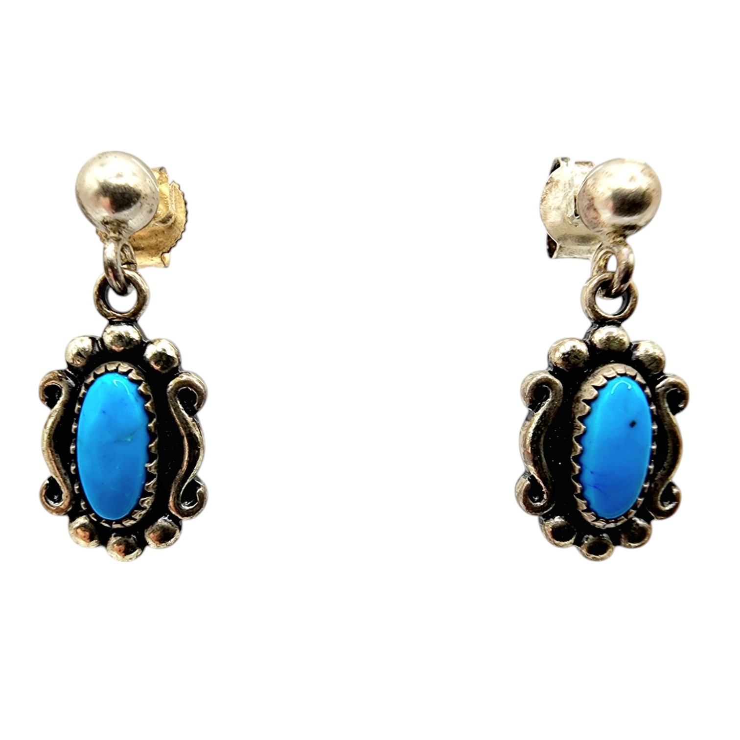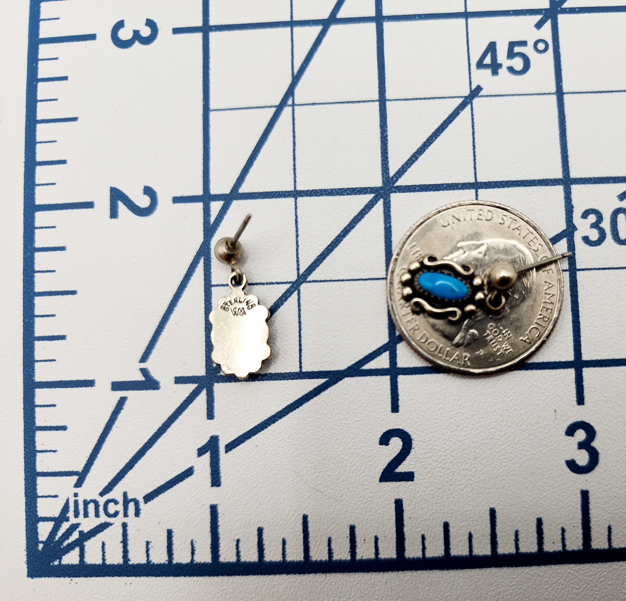 Sterling Wheeler Manufacturing Cabachon Turquoise Dangle Earrings 2.4