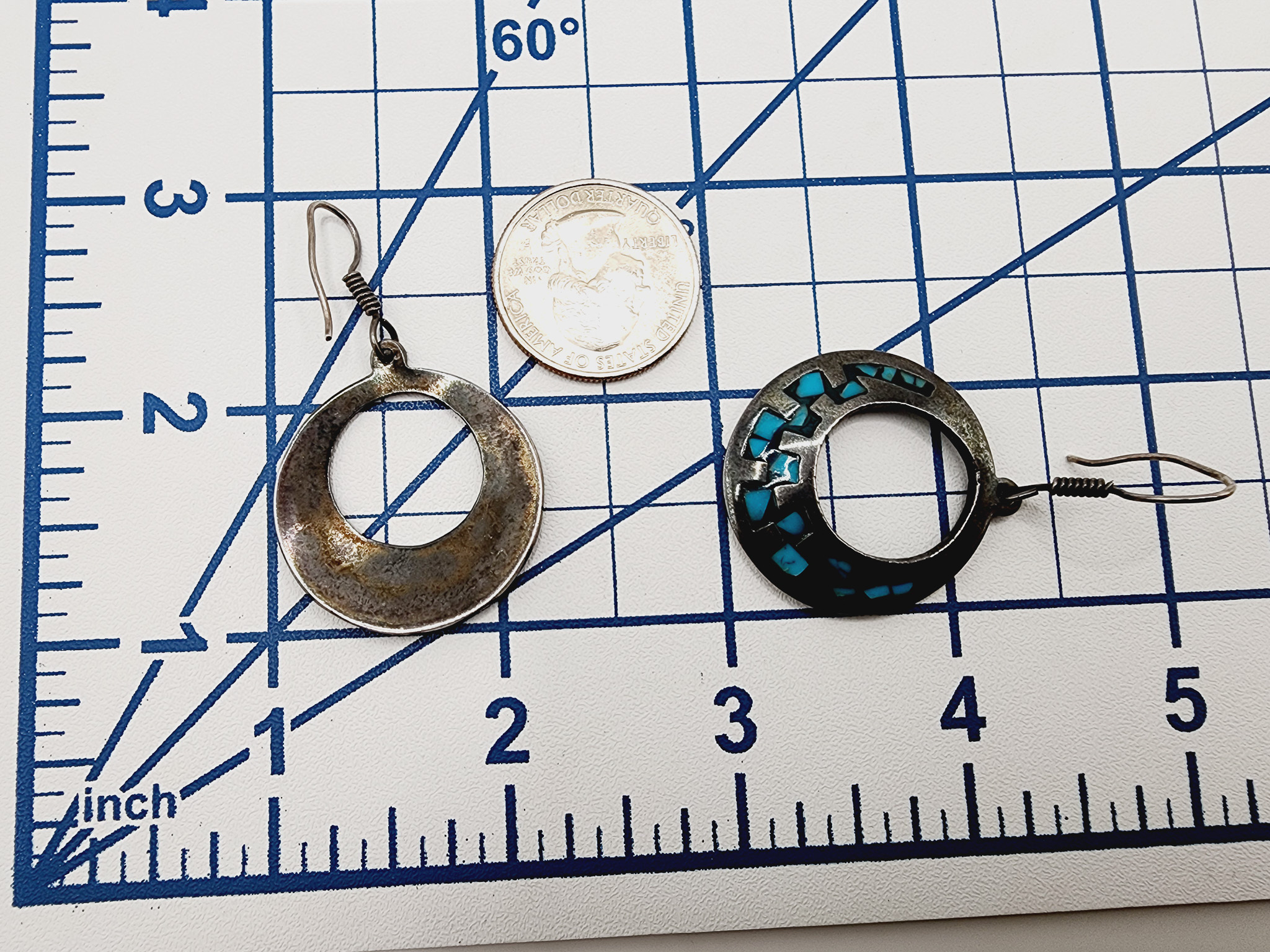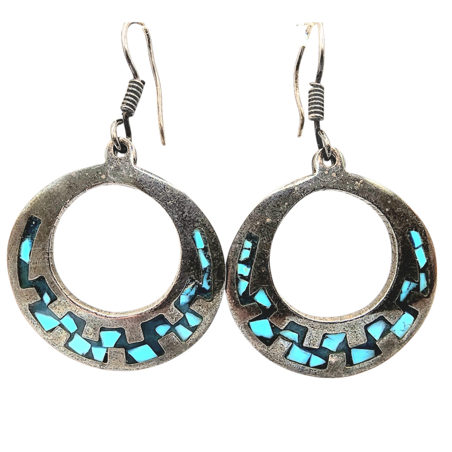 Sterling Taxco TB-148 Turquoise Inlay Dangle Earrings 12.6g