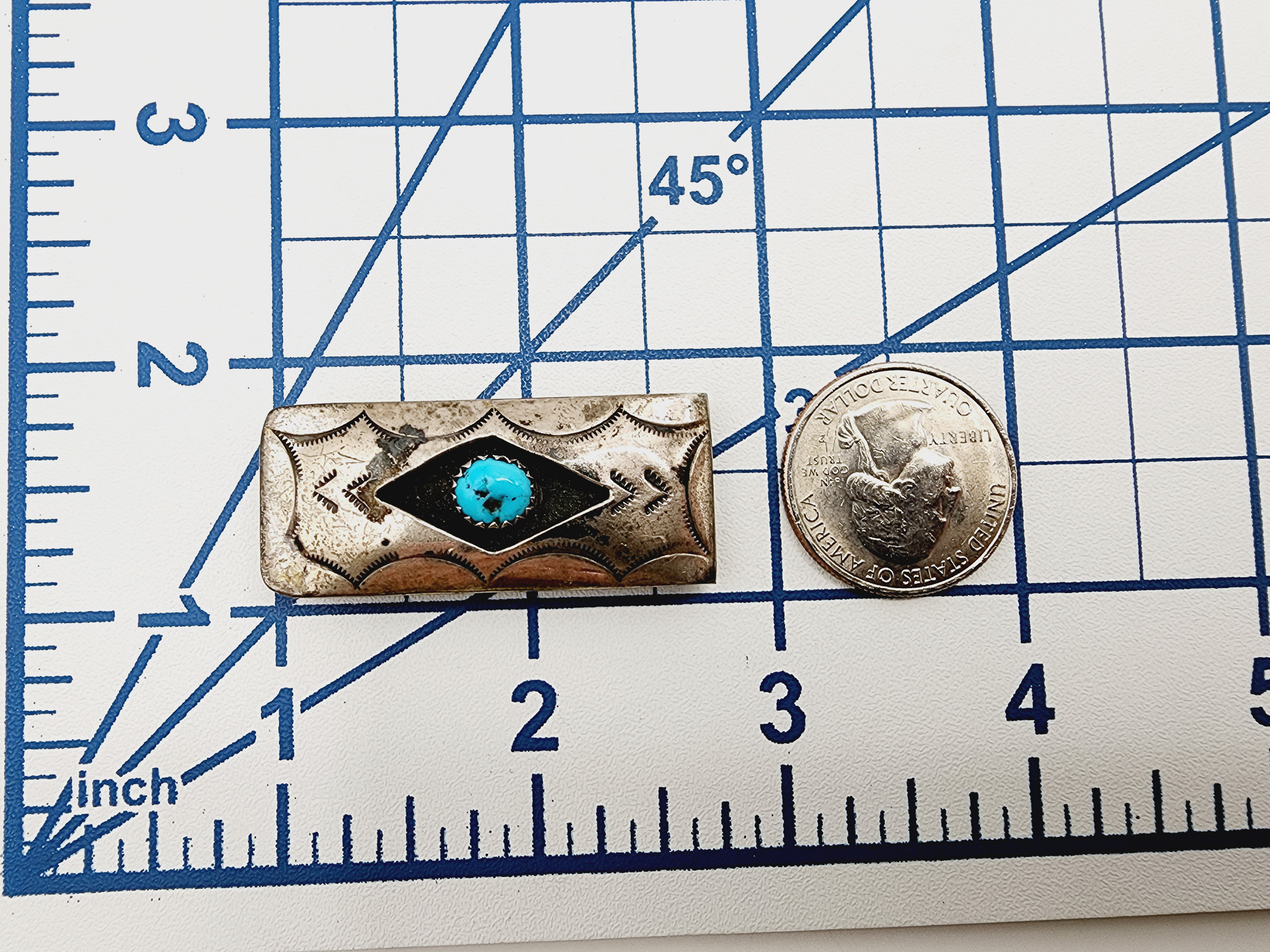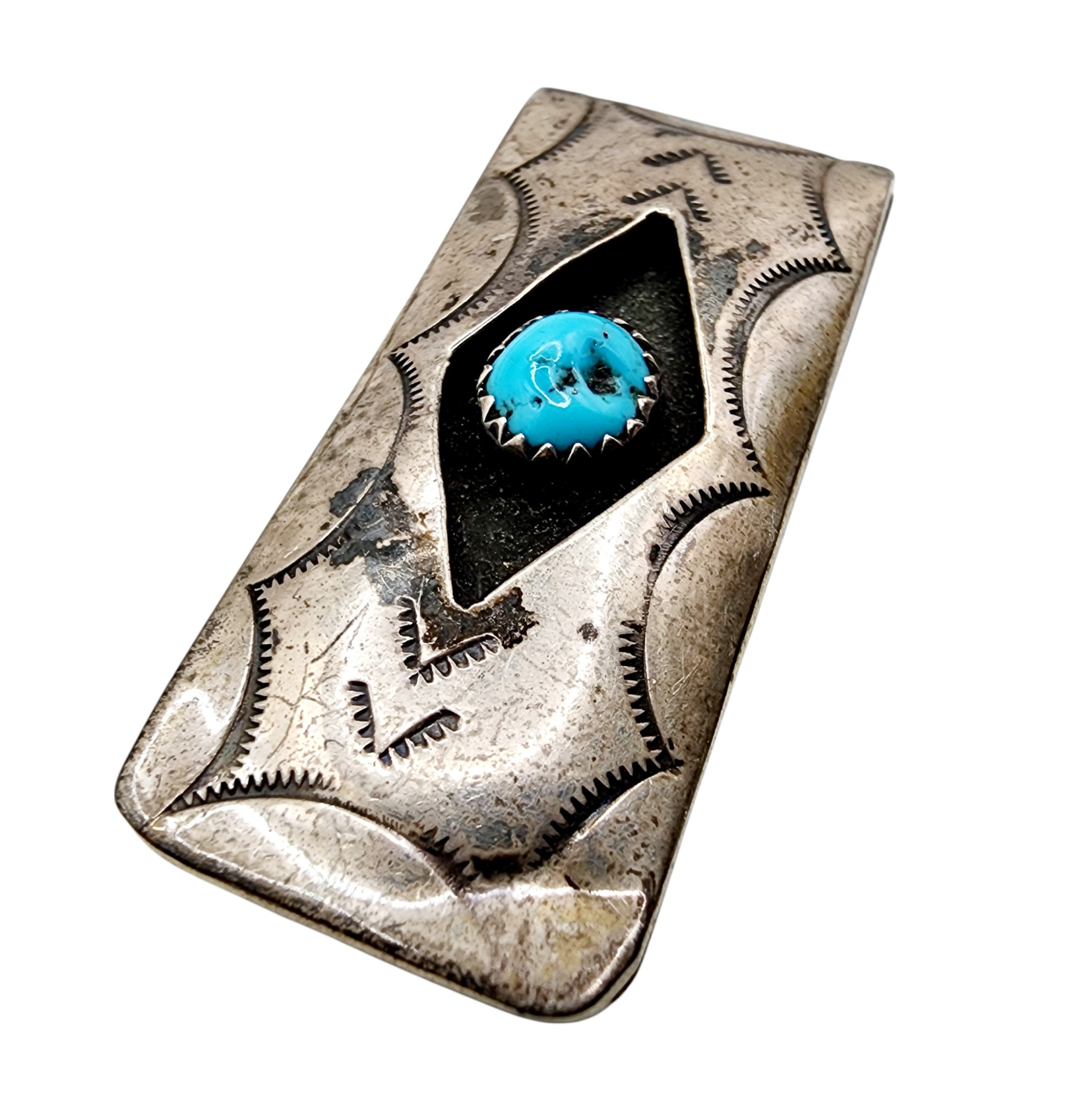 Sterling Navajo Turquoise Handstamped Money Clip 14.9g