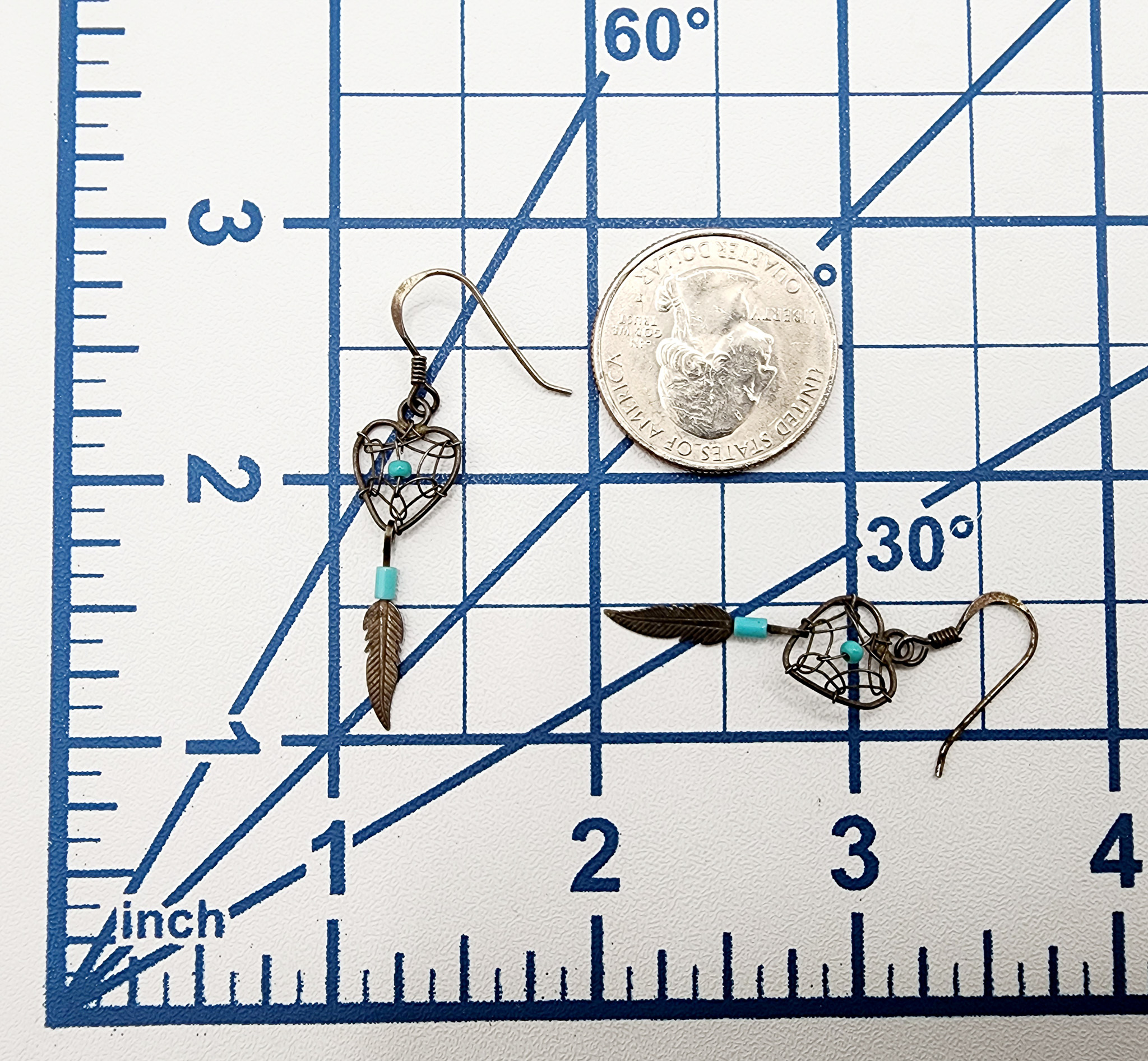 Sterling Heart Dream Catcher Dangle Earrings 1.1g
