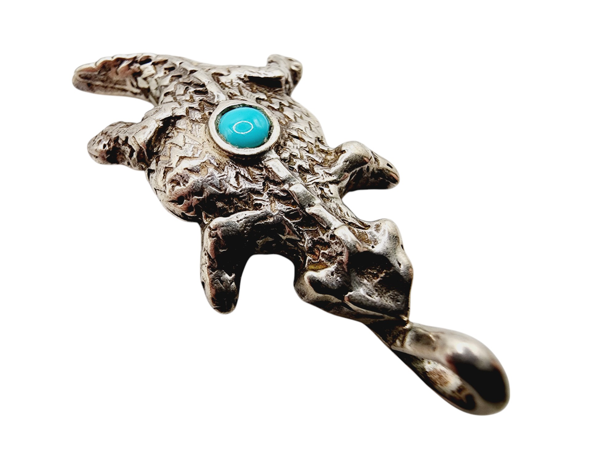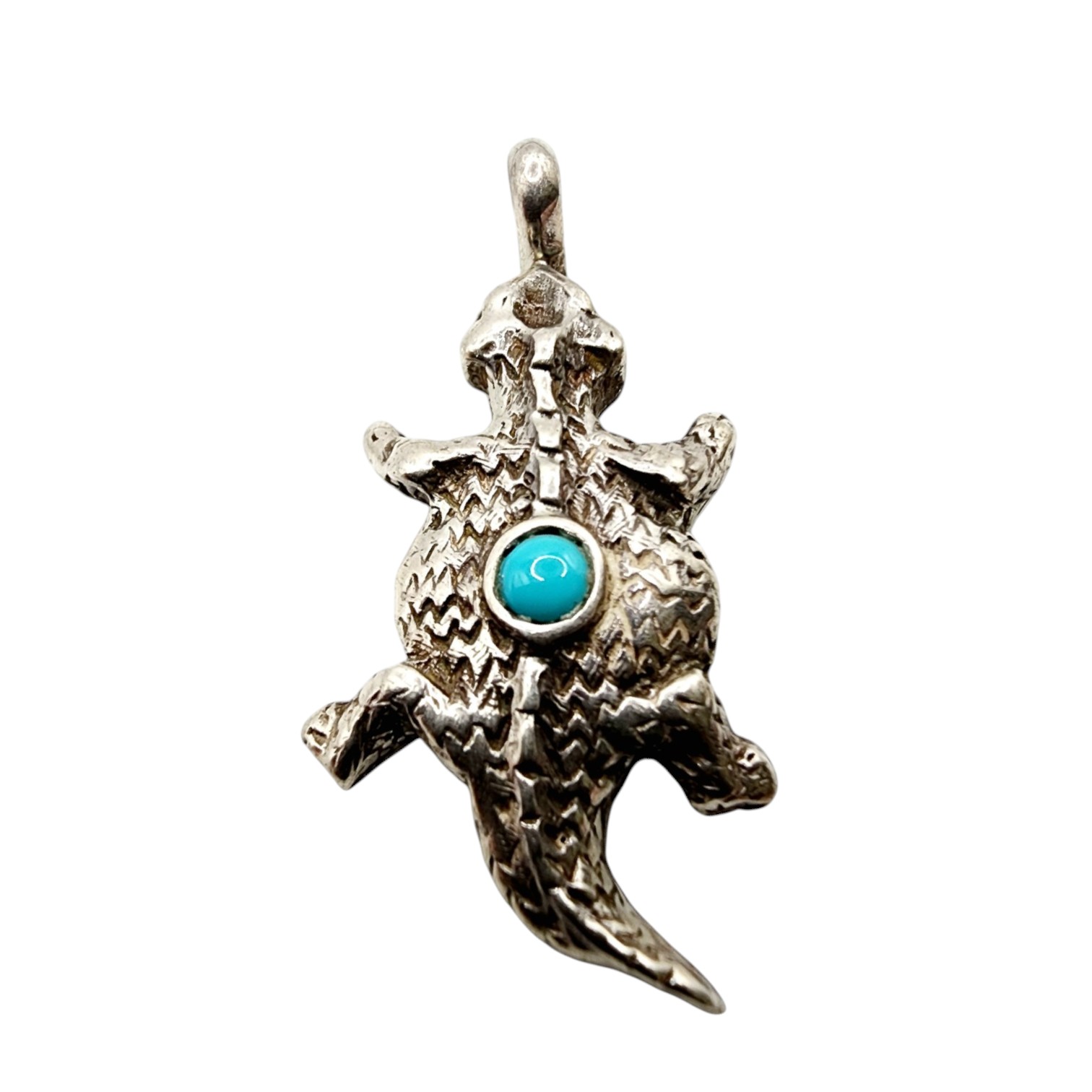Sterling NavajoTurquoise Lizard Pendant 3.8g
