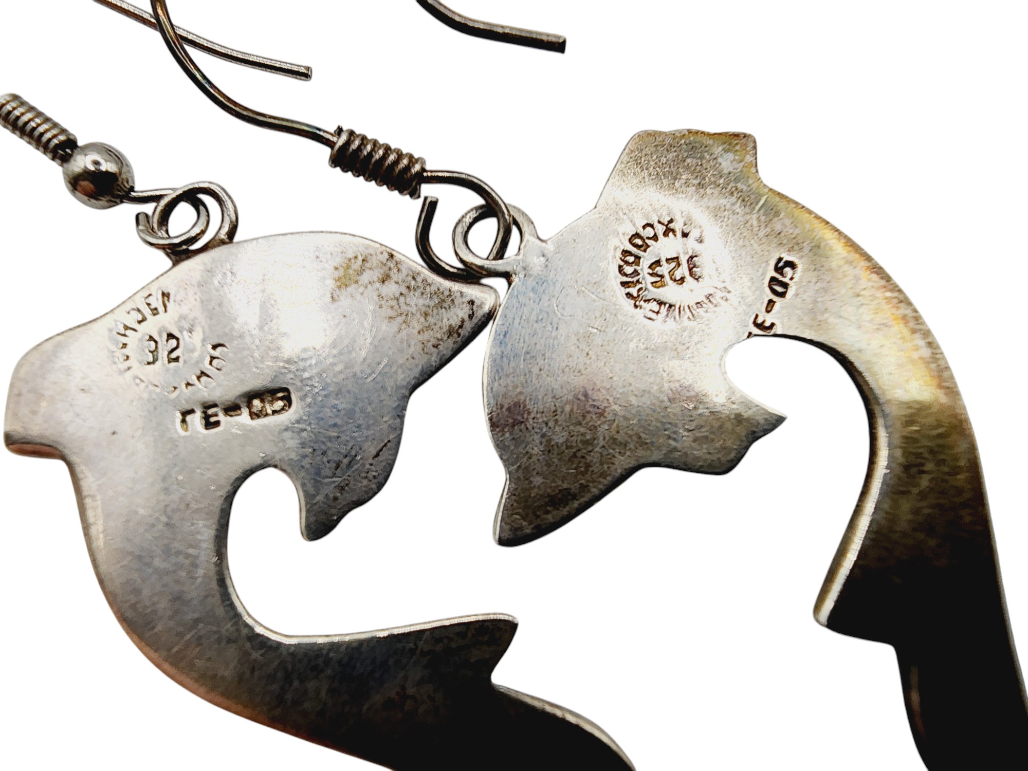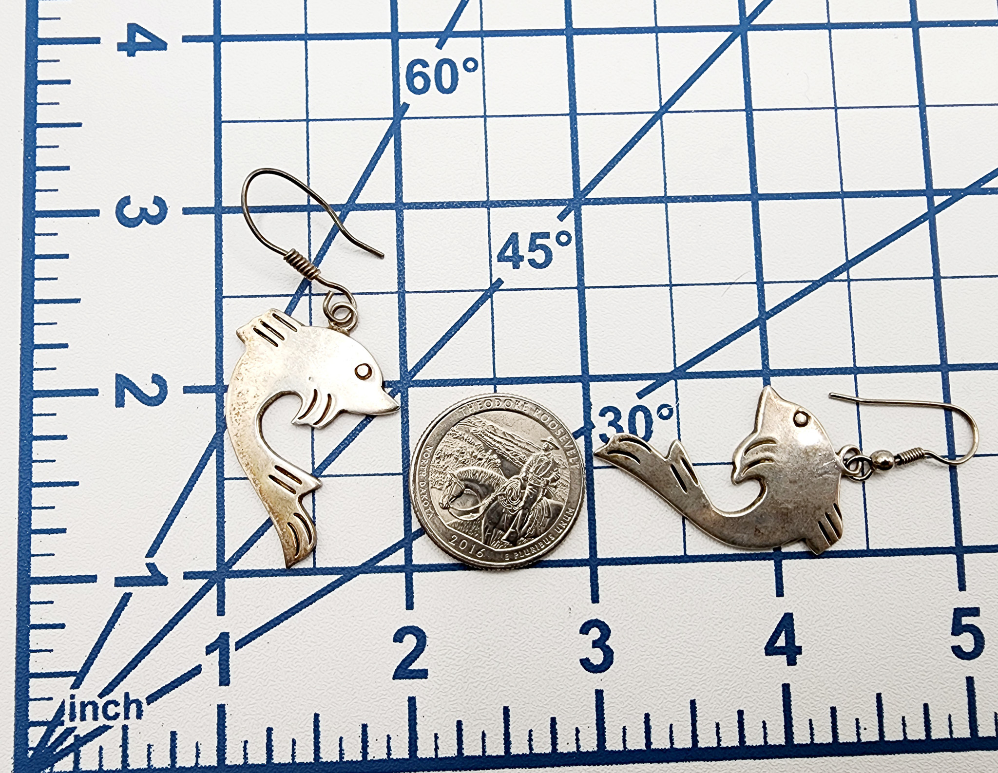 Sterling Taxco TE-05 Dolphin Dangle Earrings 10.8g