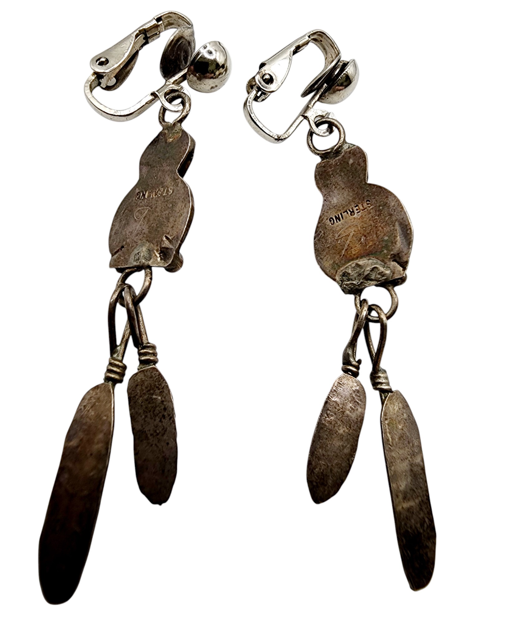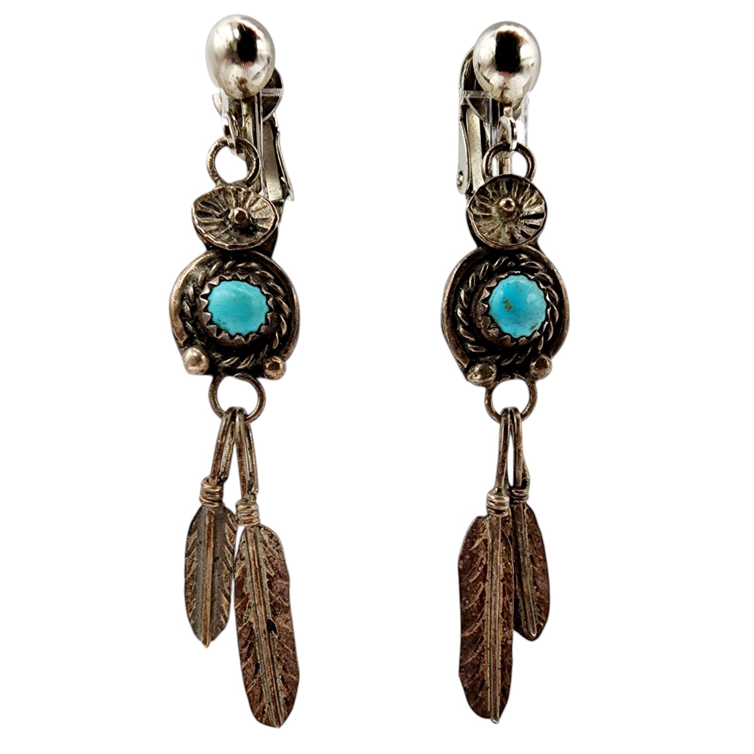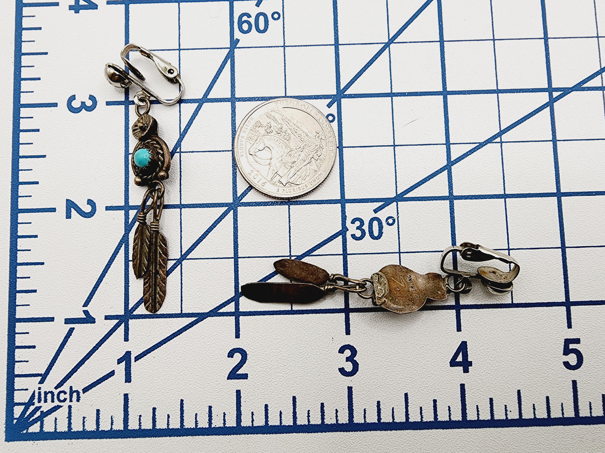 Sterling Navajo Turquoise Feather Dangle Earrings 7.3g