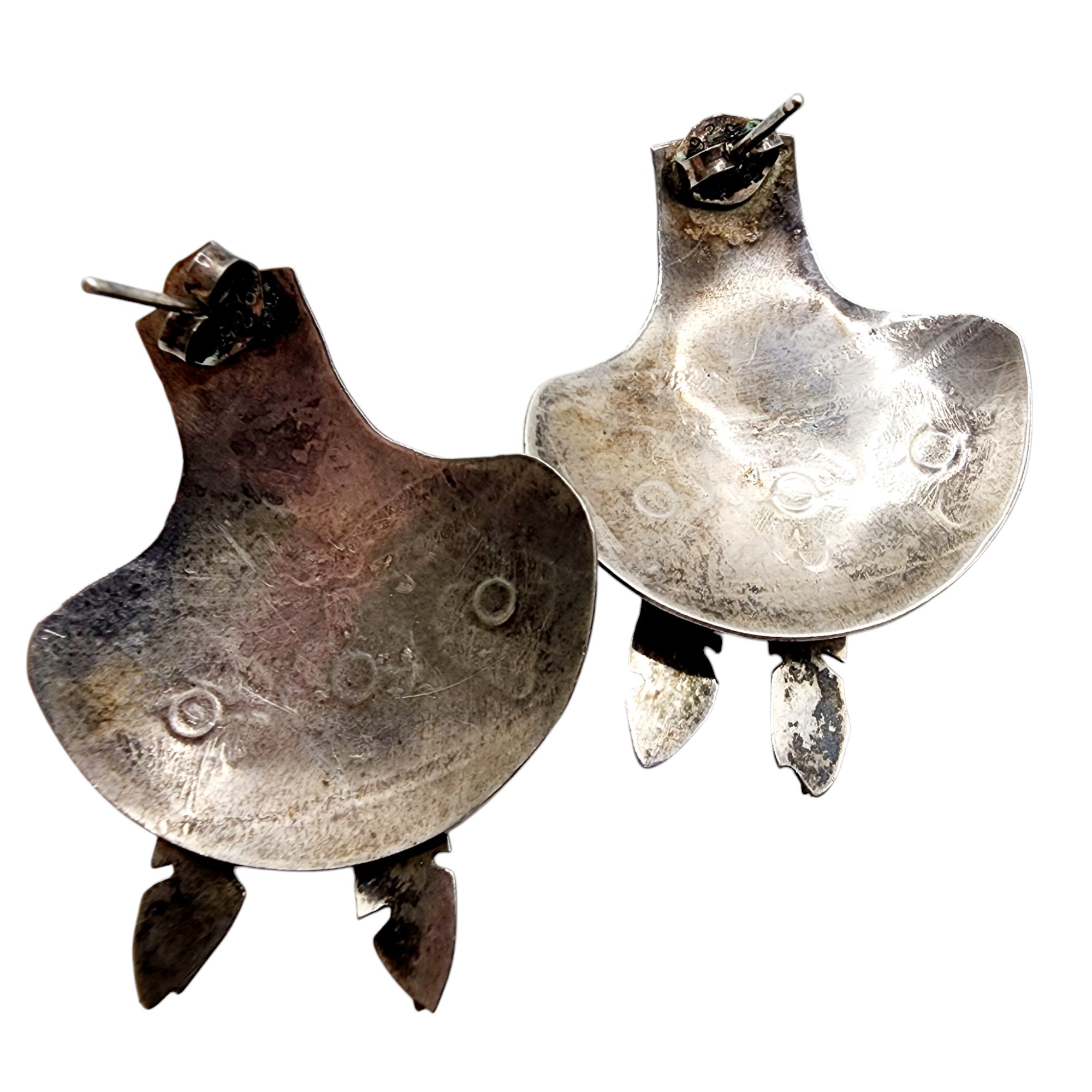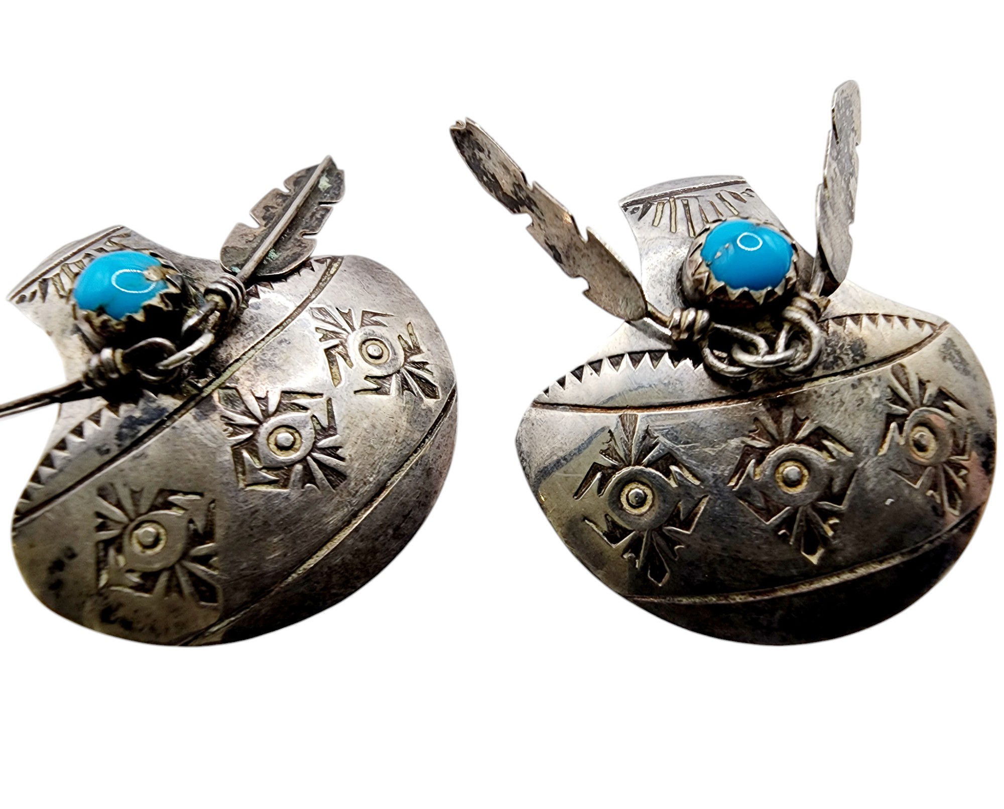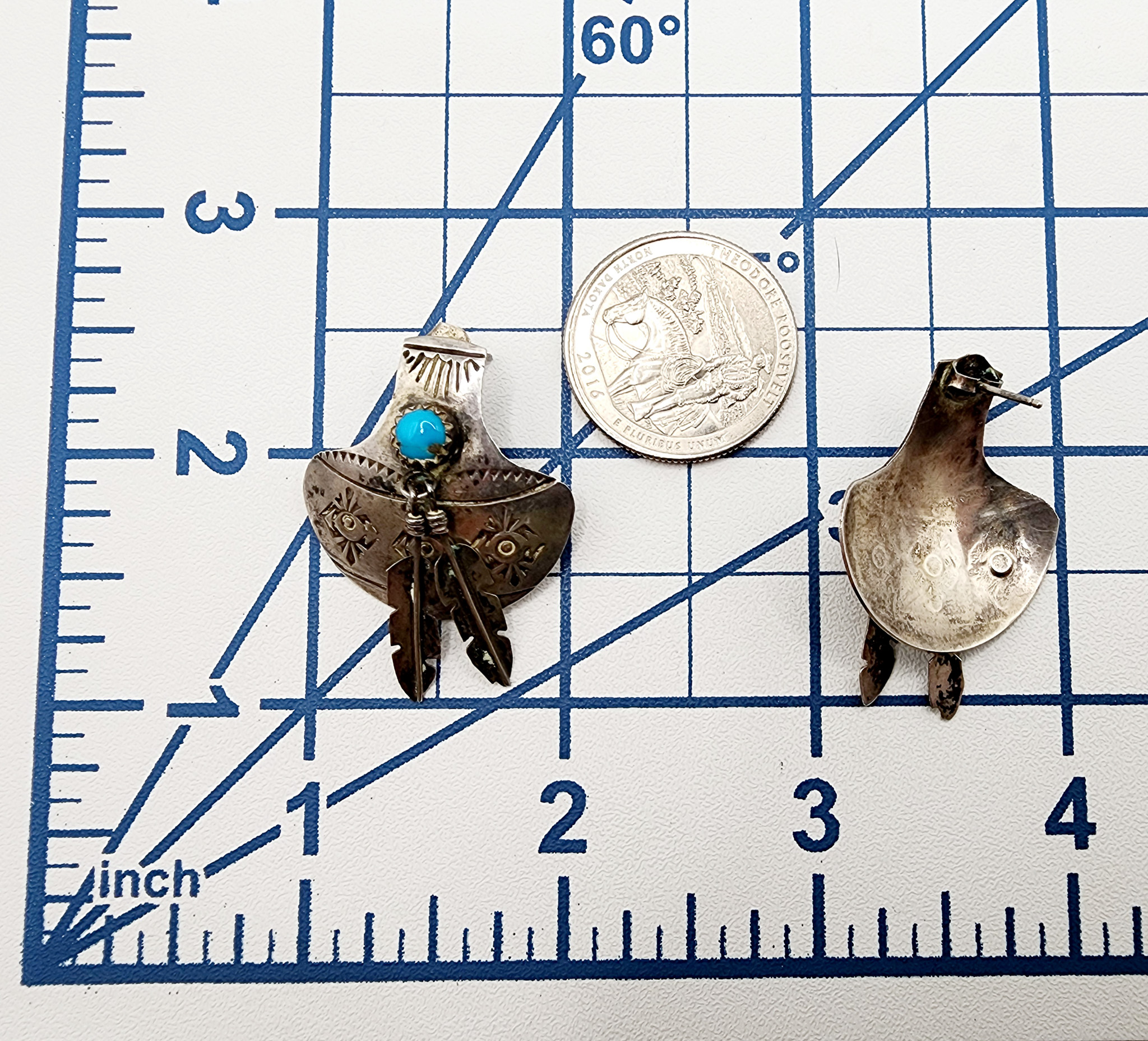 Sterling Native Handstamped Basket Turquoise Feather Dangle Earrings 6g