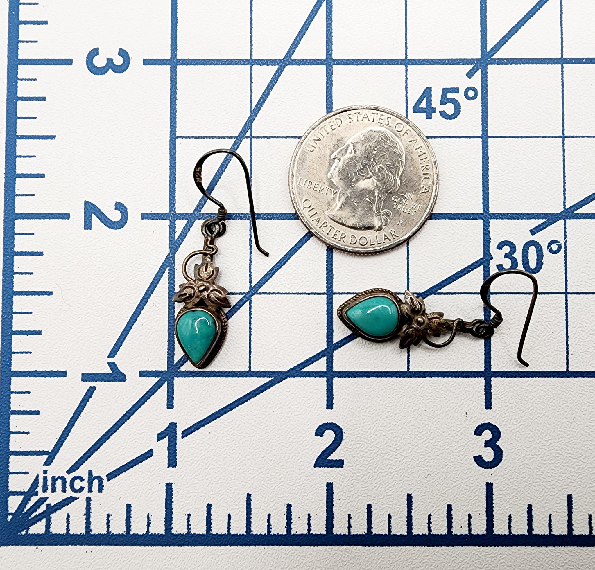 Sterling Turquoise Dangle Drop Earrings 2.7g