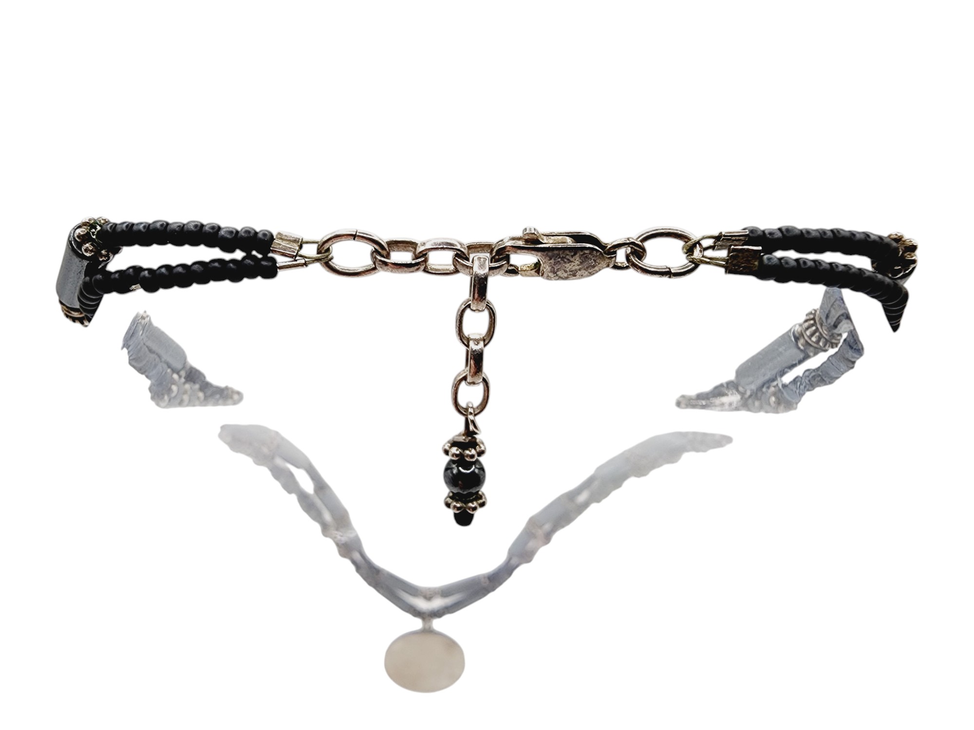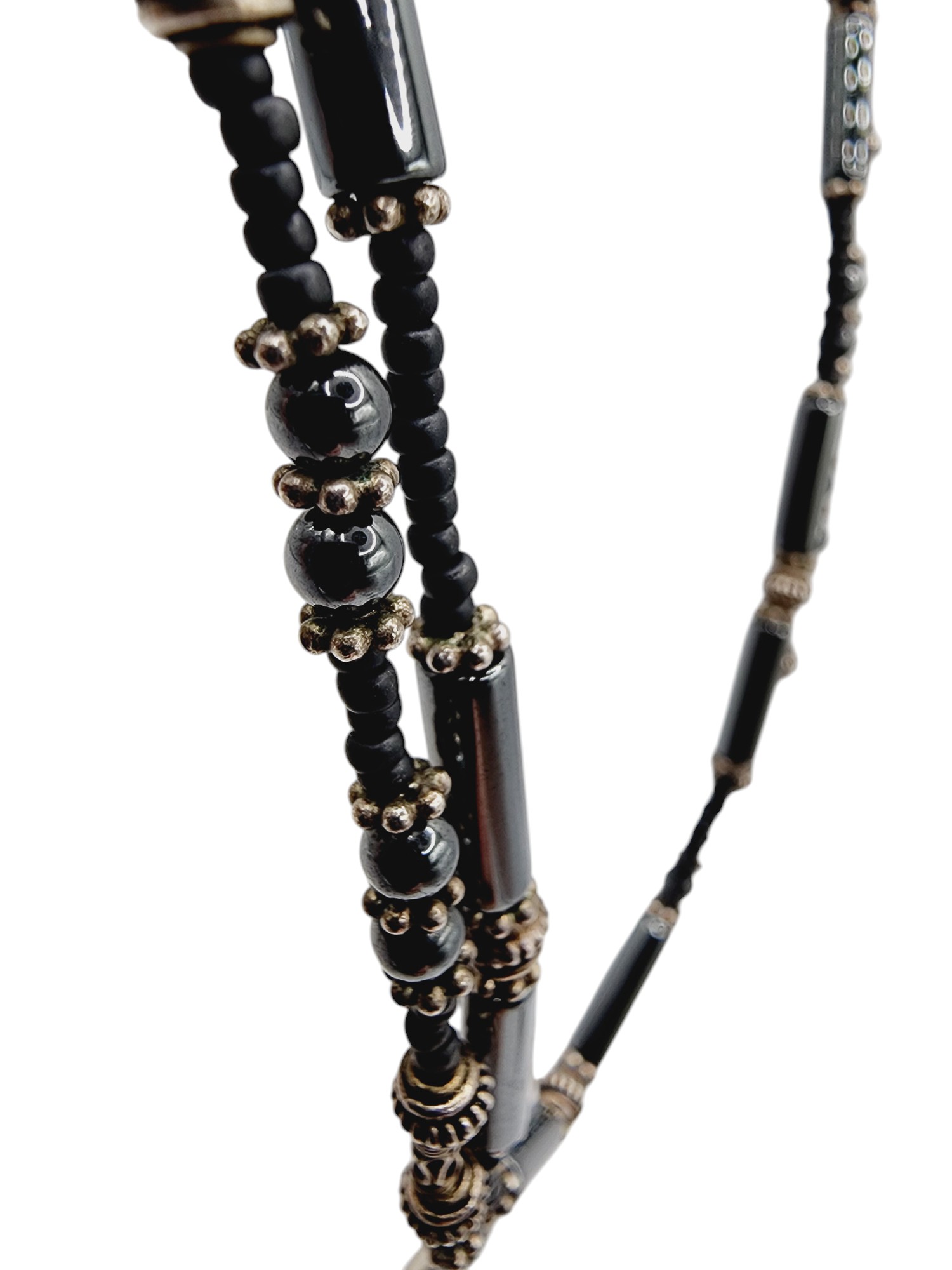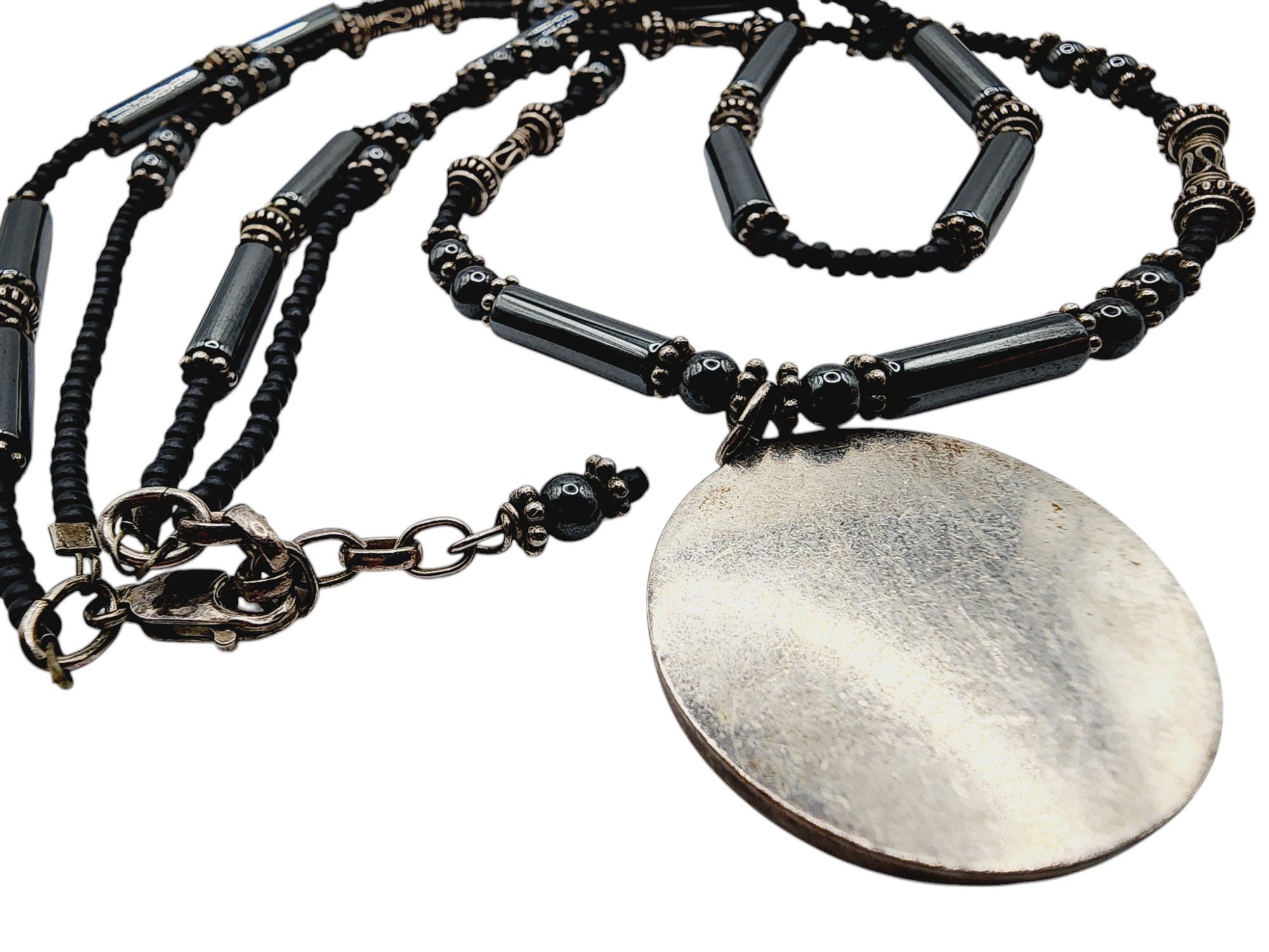 Sterling Mayan/Aztec Medallion Hematite Beaded Double Strand Necklace 42.4g