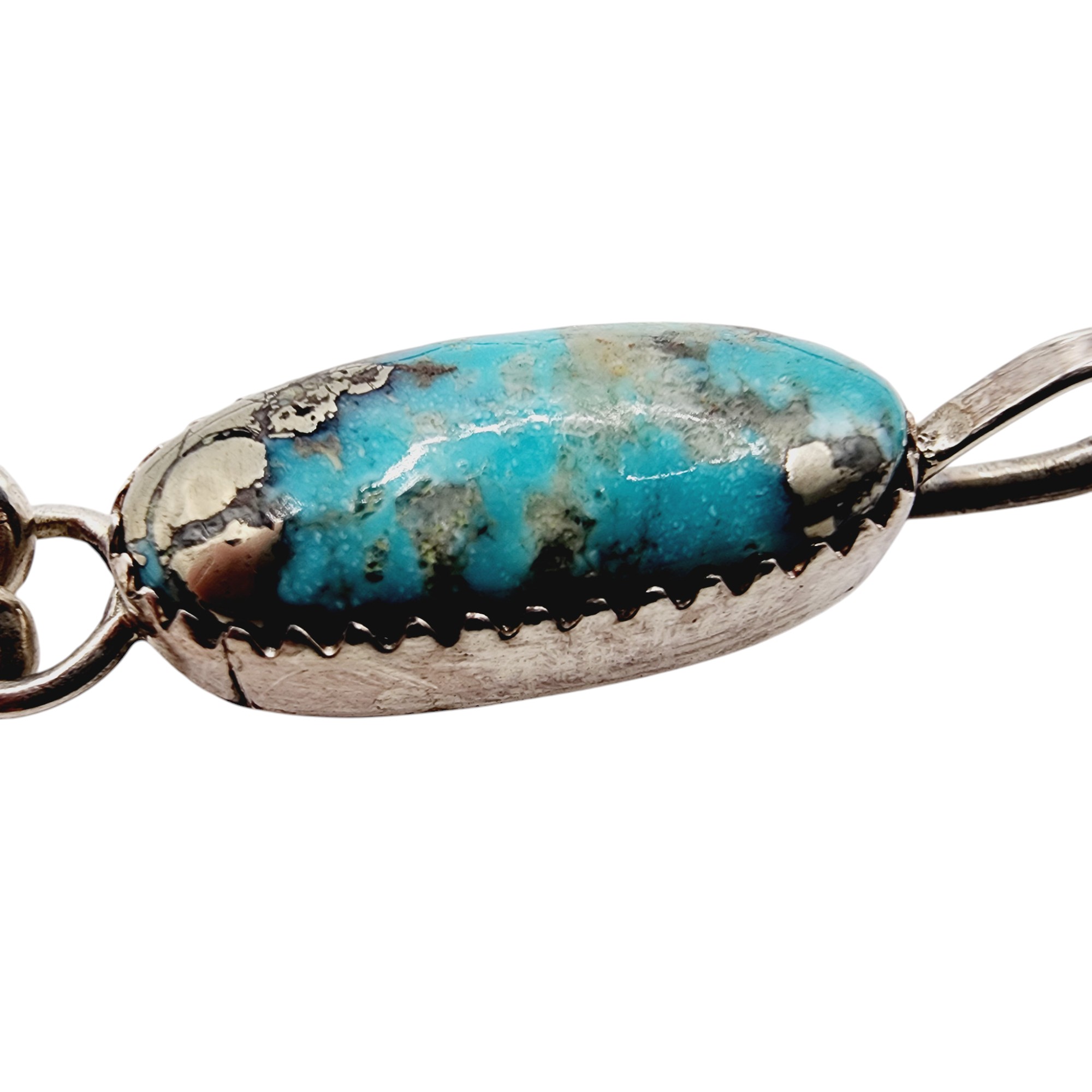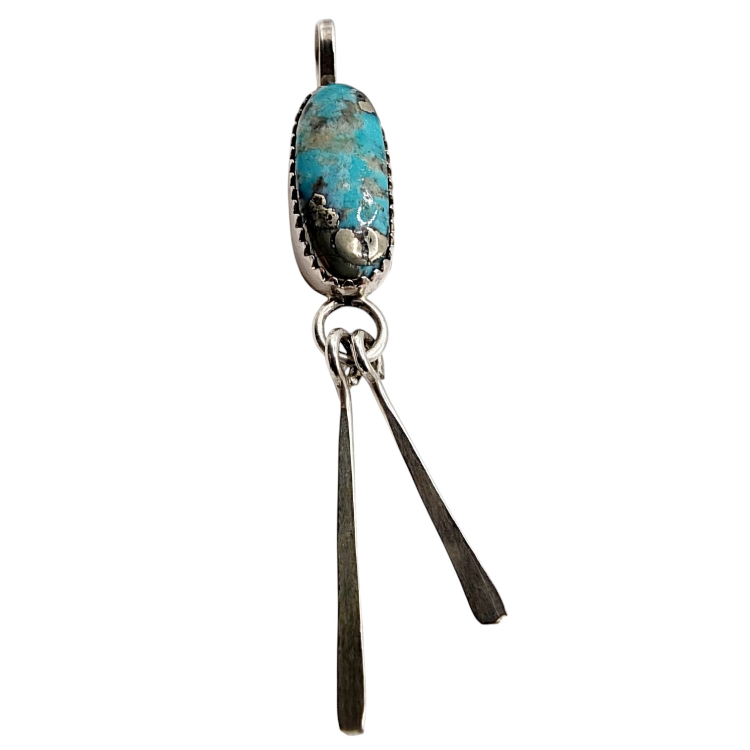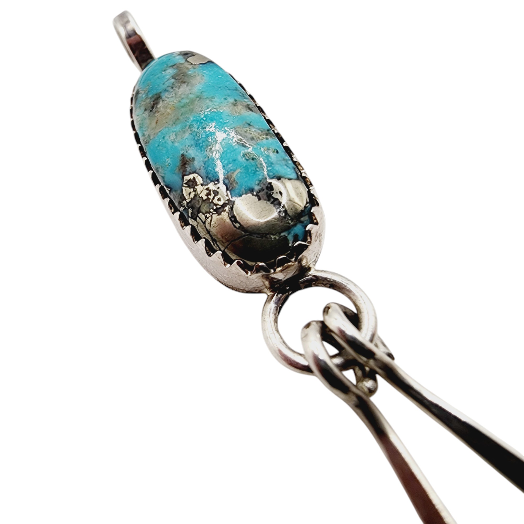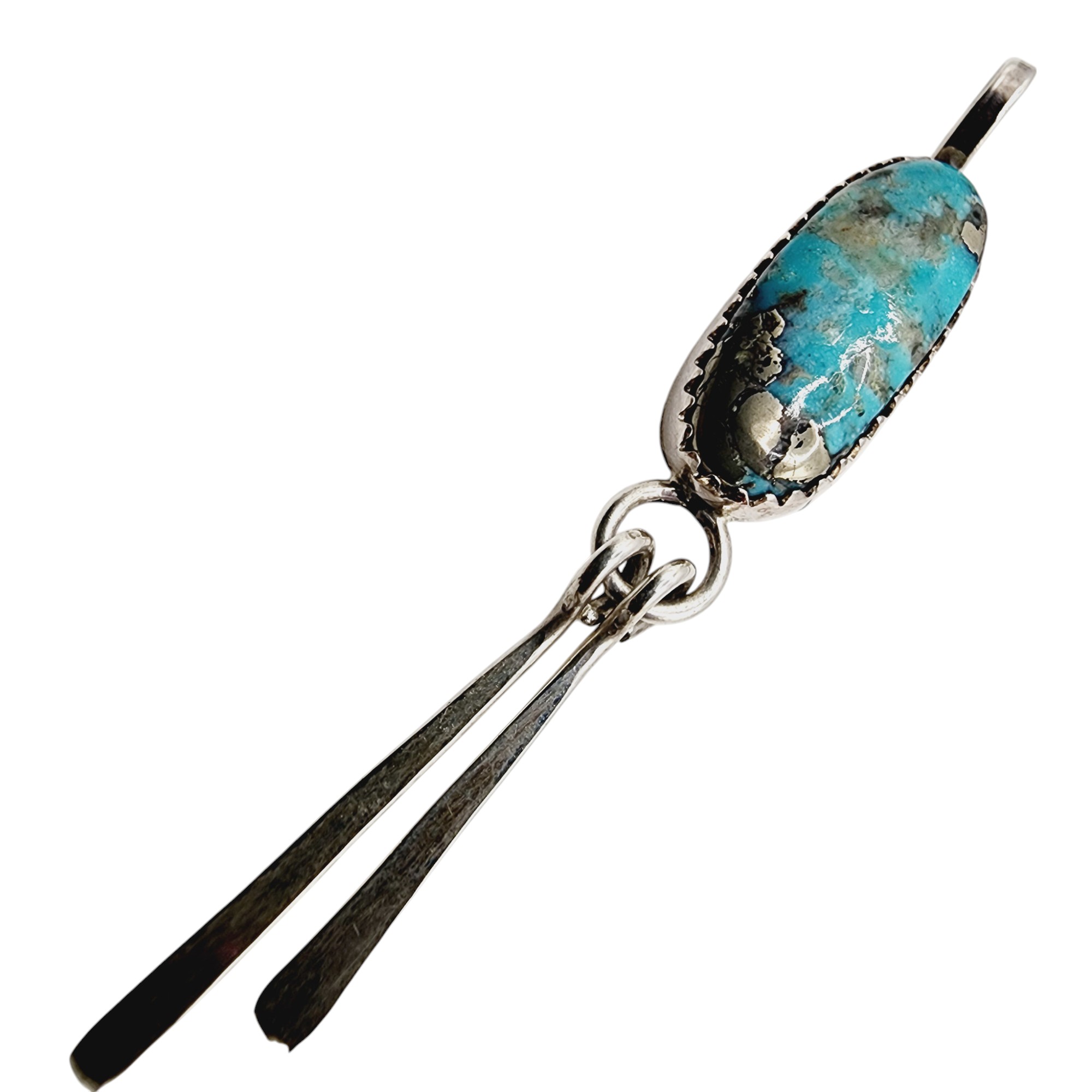 Sterling J Manuelito Navajo Beautiful Turquoise Fringe Pendant 2.8g