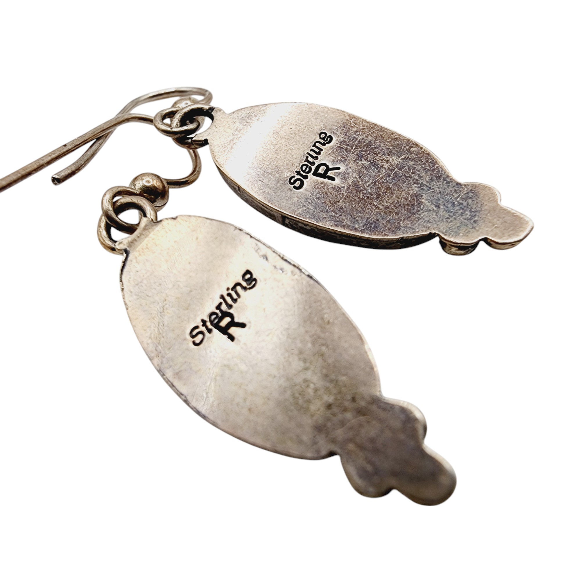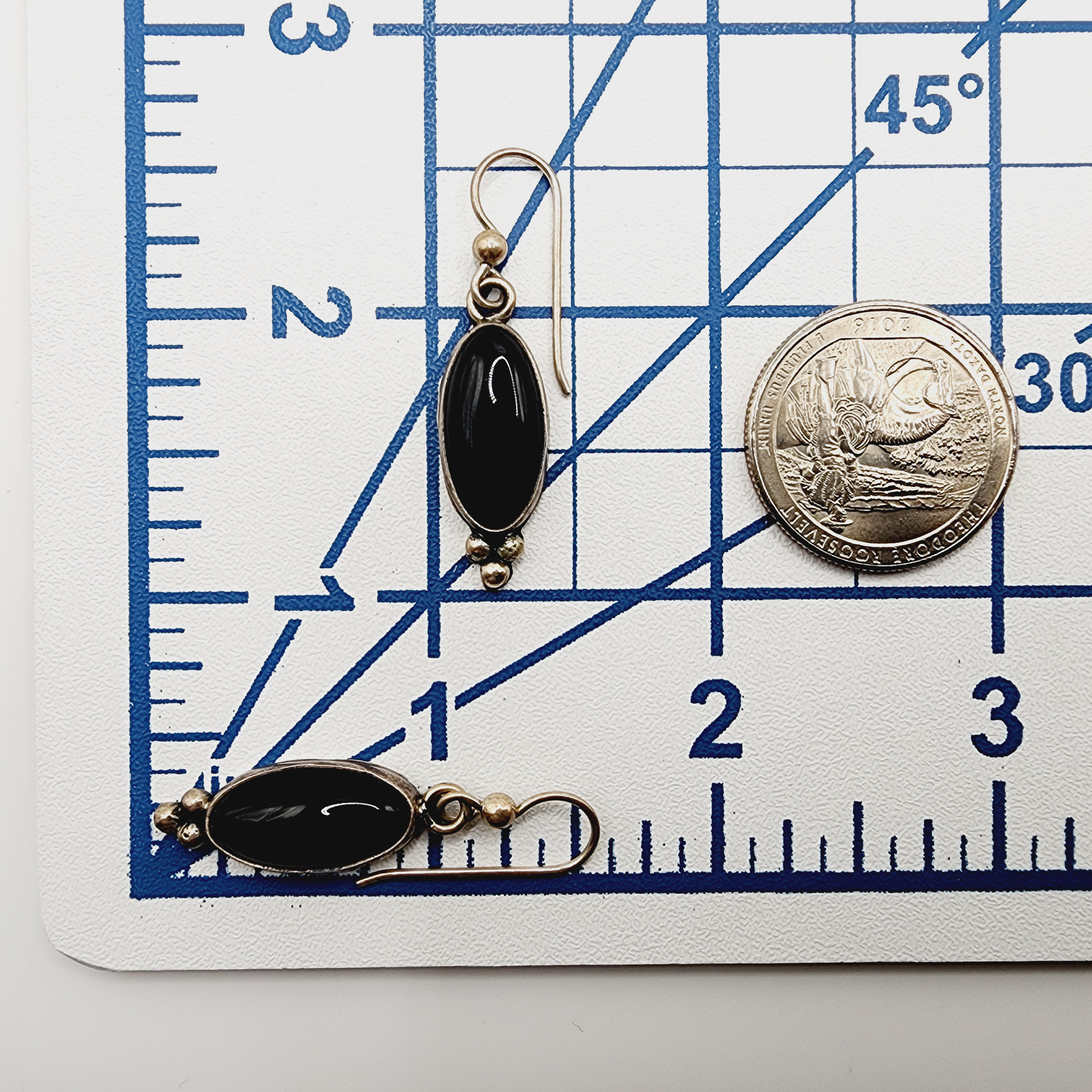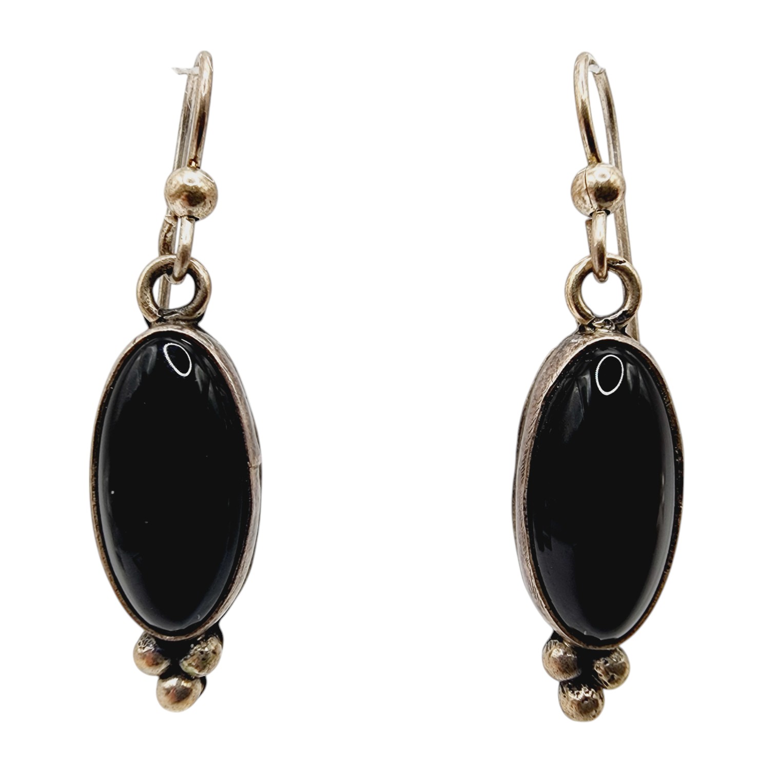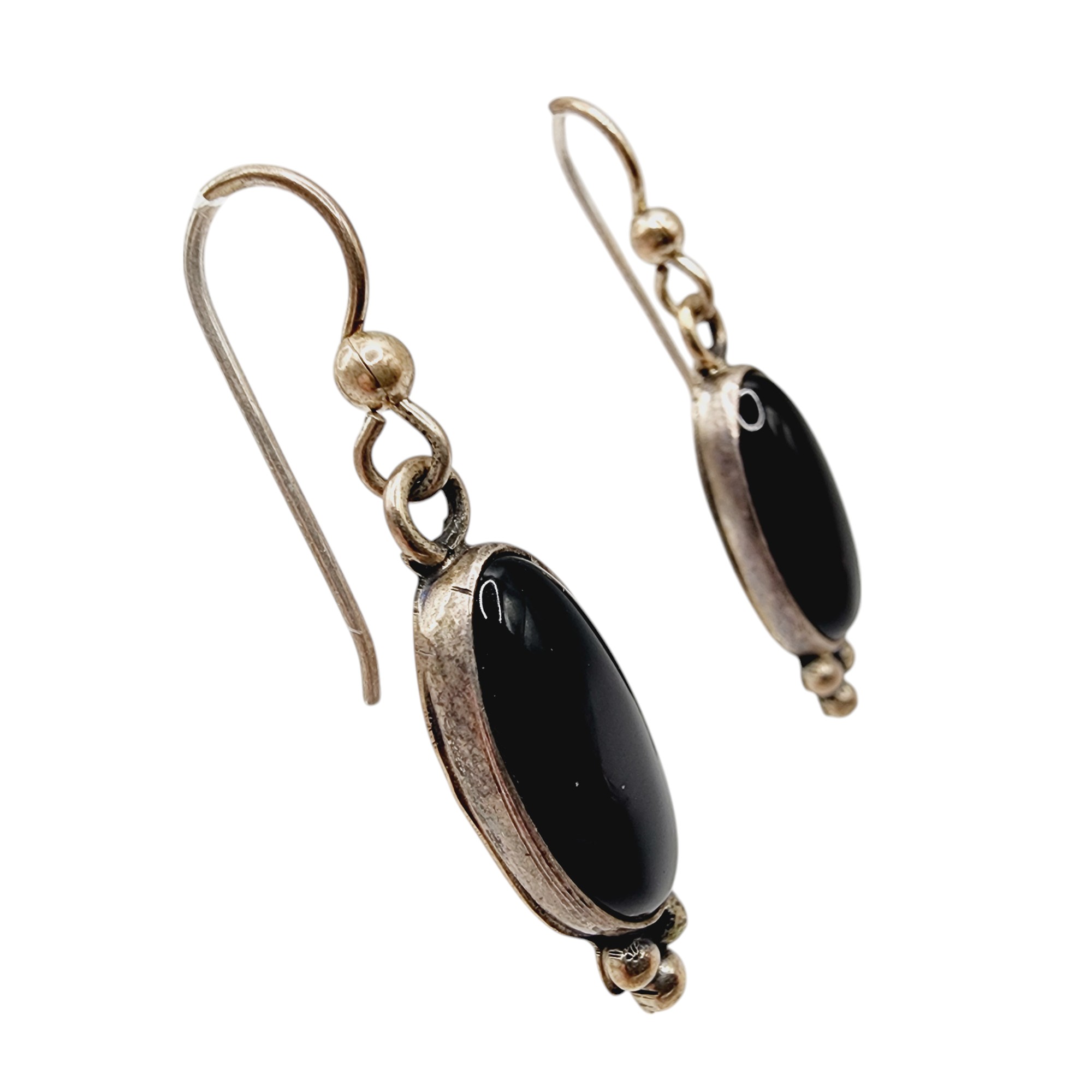 Sterling Navajo Signed ‘R’ Onyx Dangle Earrings 5.3g