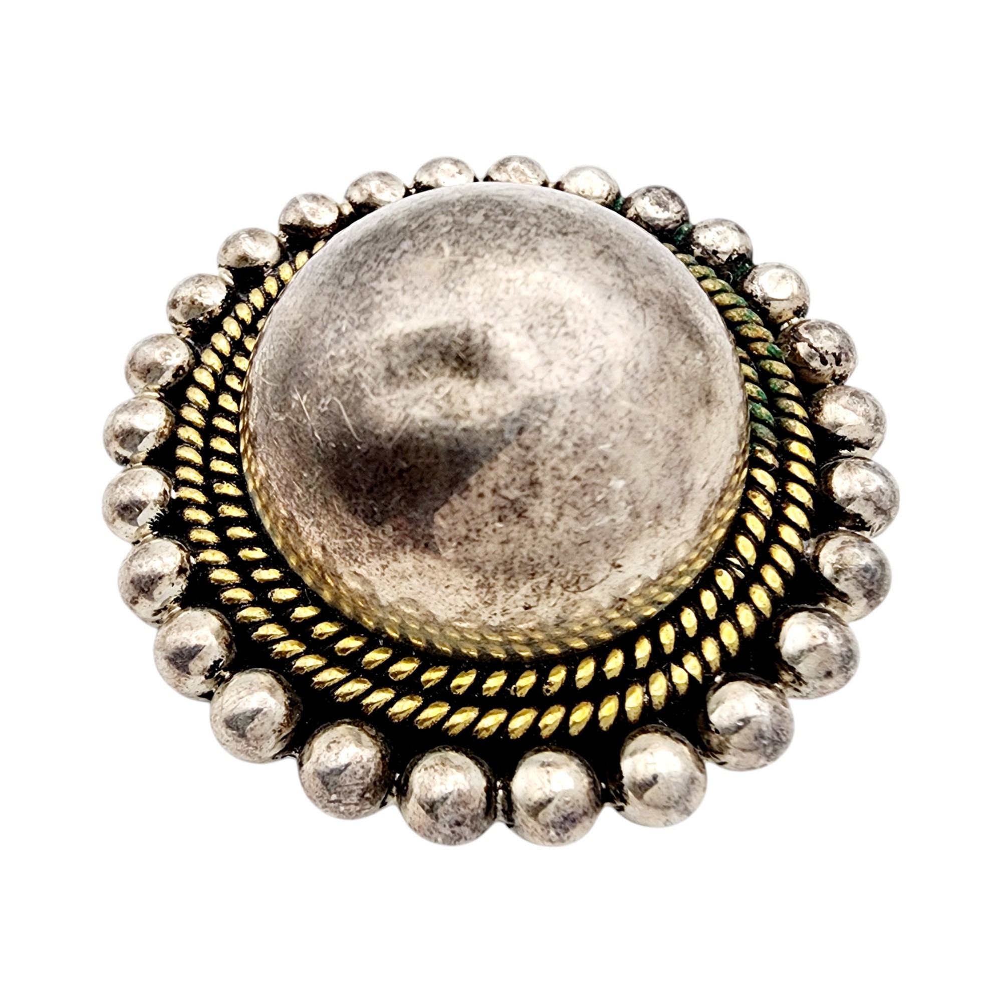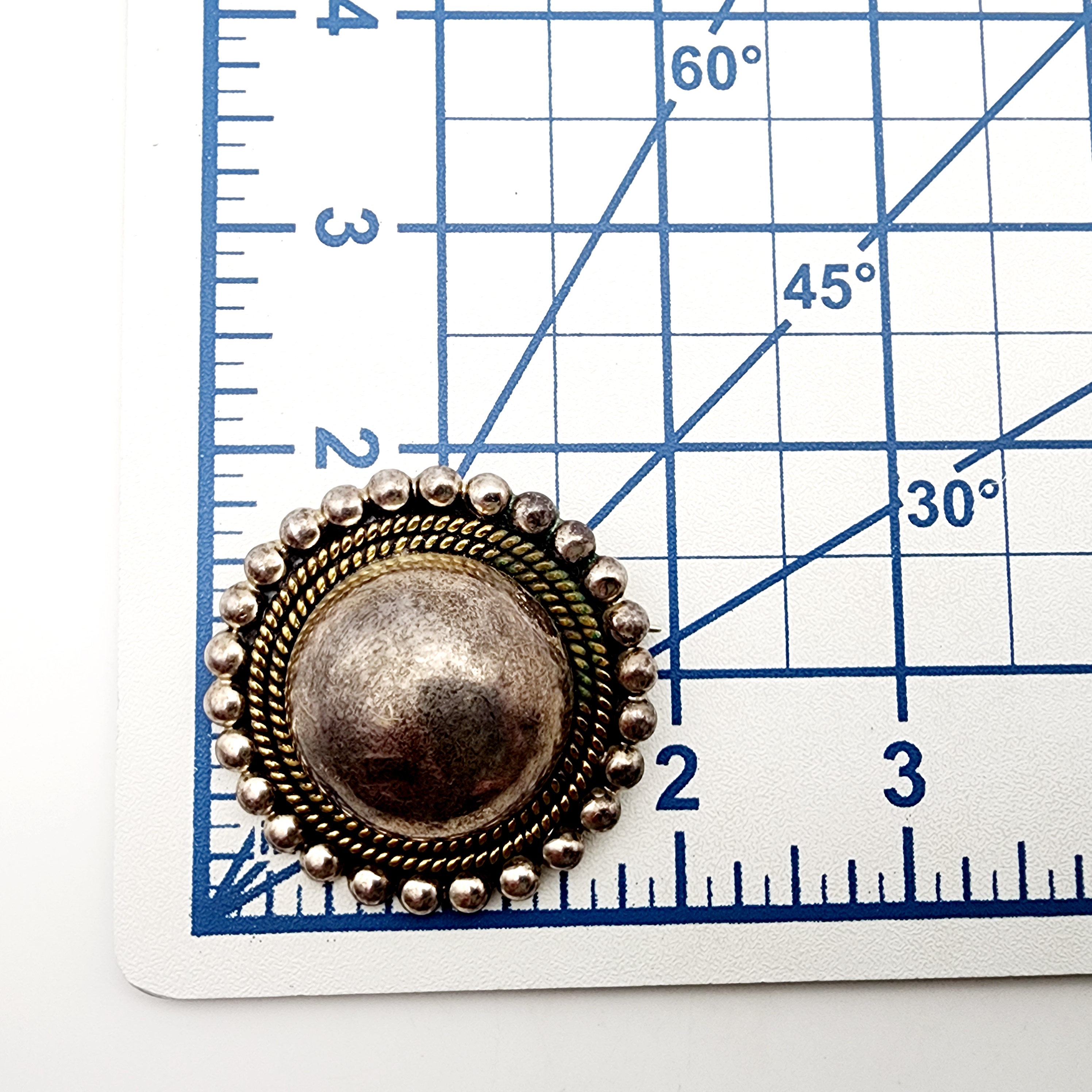 Vintage Laton TC-54 Mexico Sterling Beaded Dome Brooch 30.1g, dimple in dome