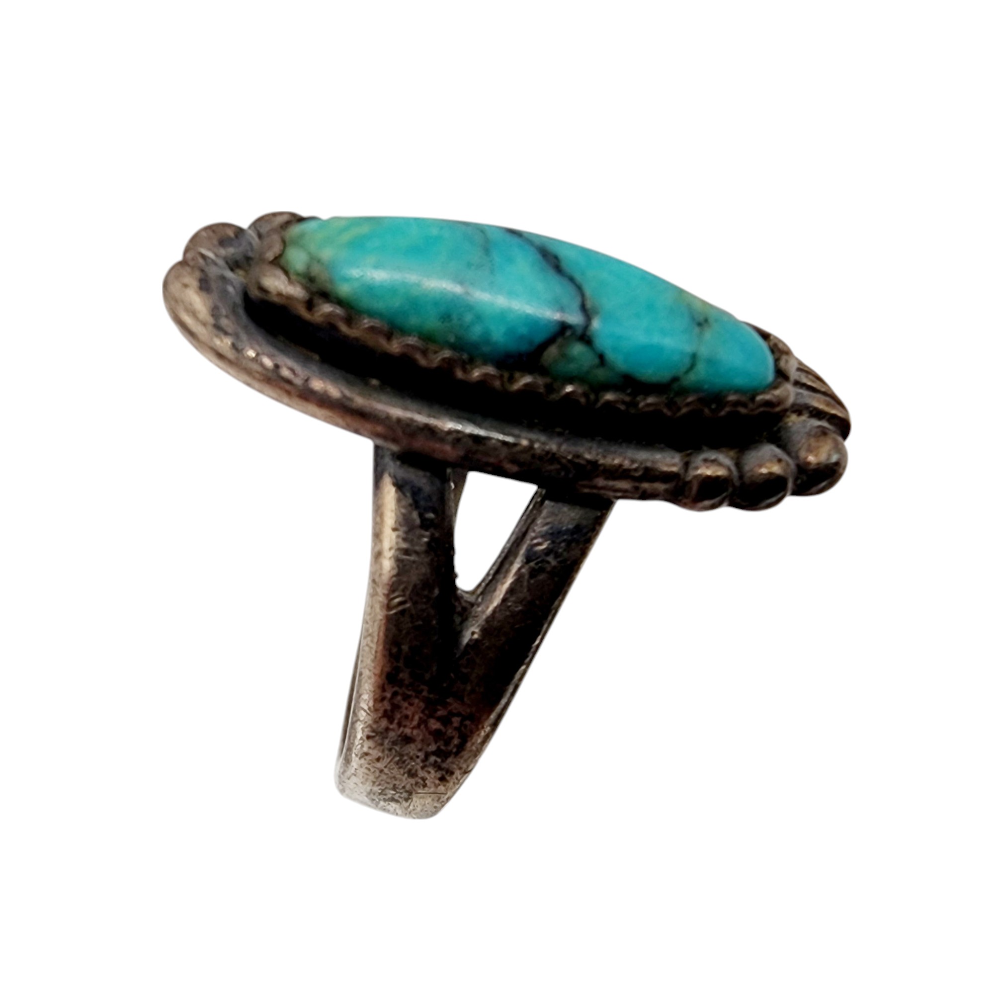 Sterling Bell Trading Post Turquoise Ring Sz 7 3.6g