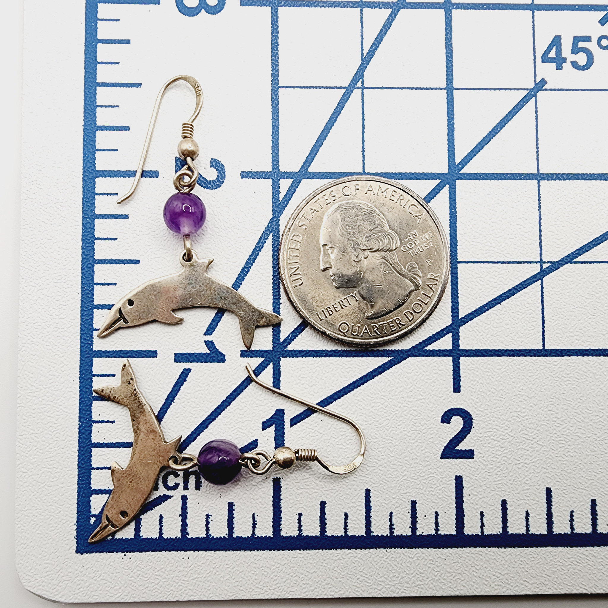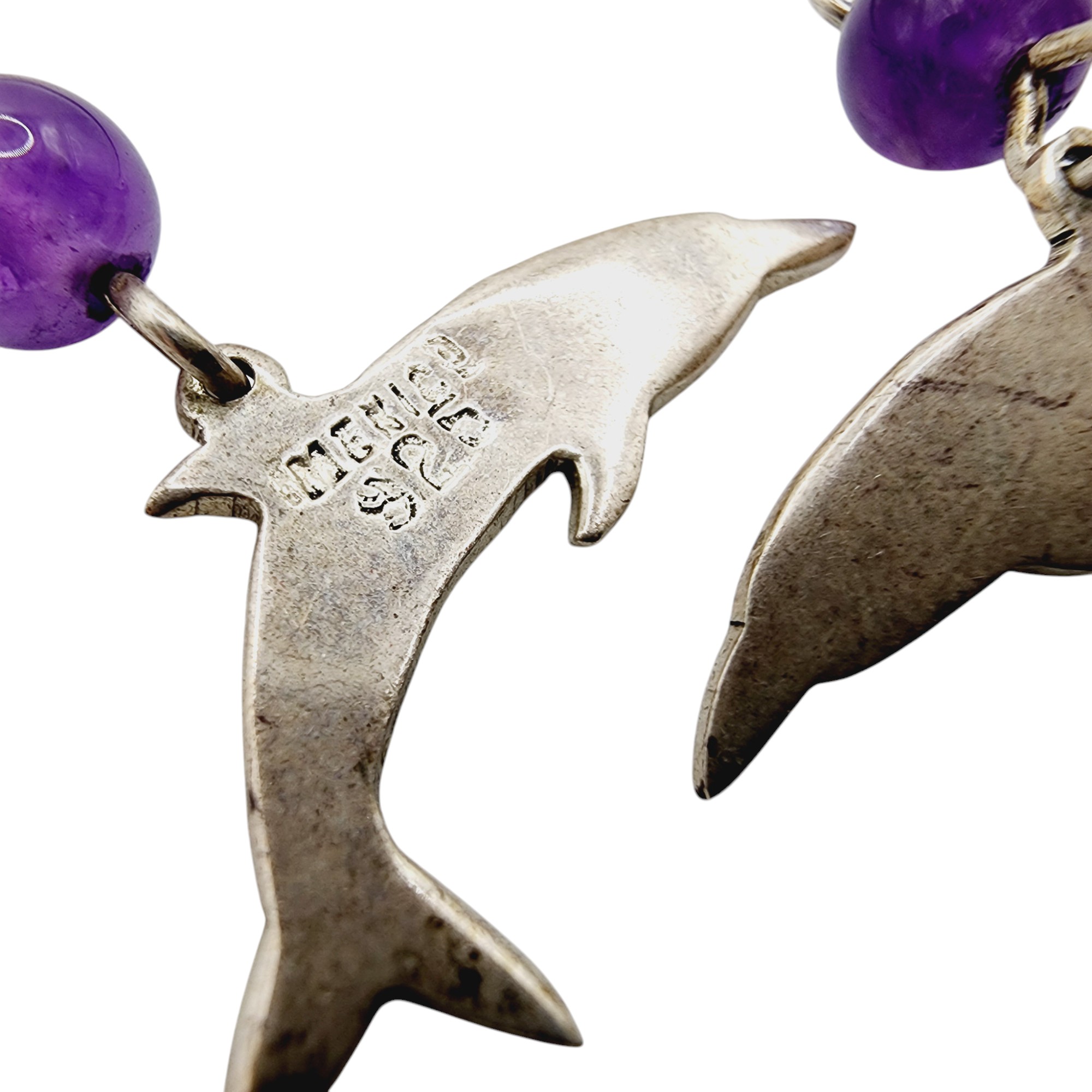 Sterling Mexico Amethyst Dolphin Dangle Earrings 3.3g