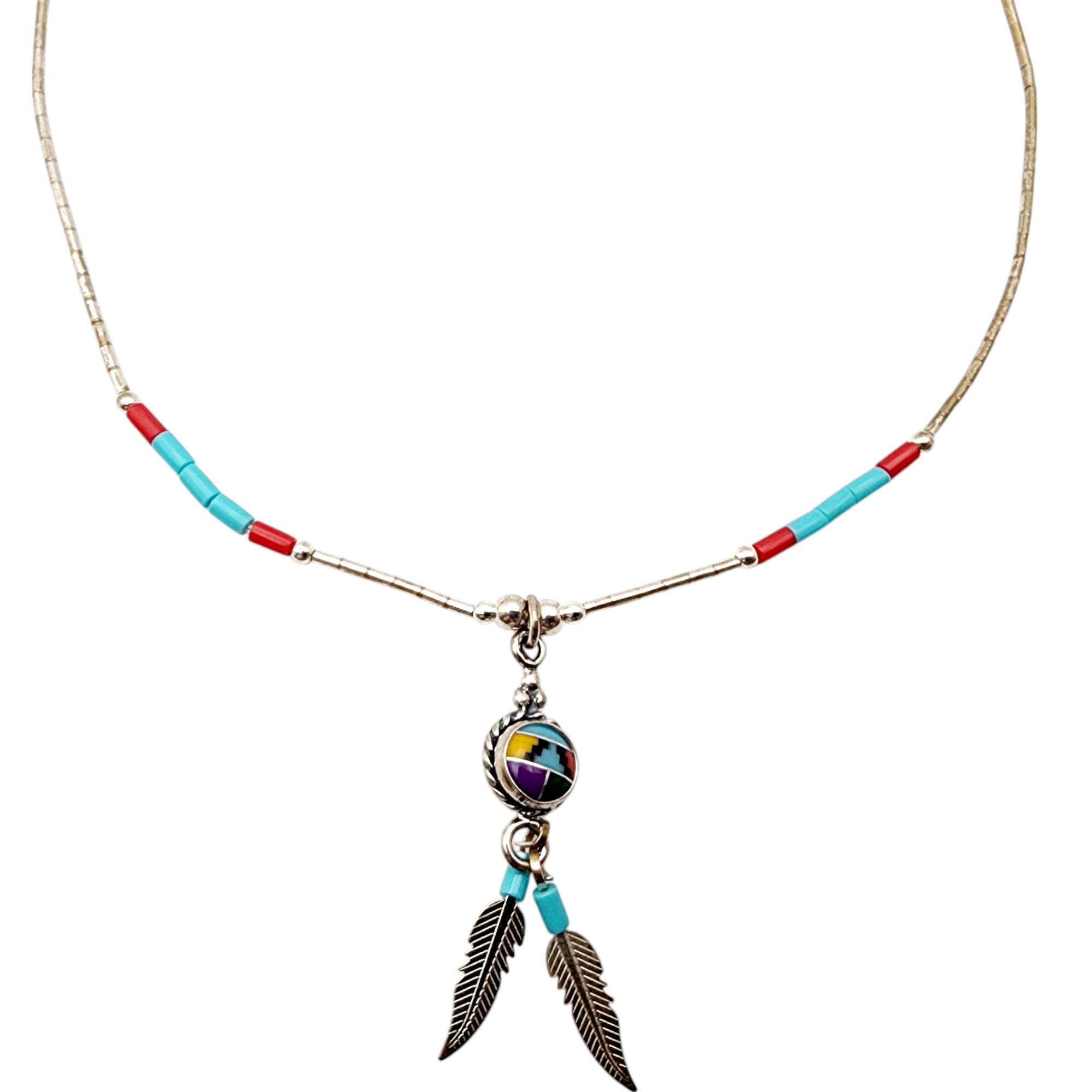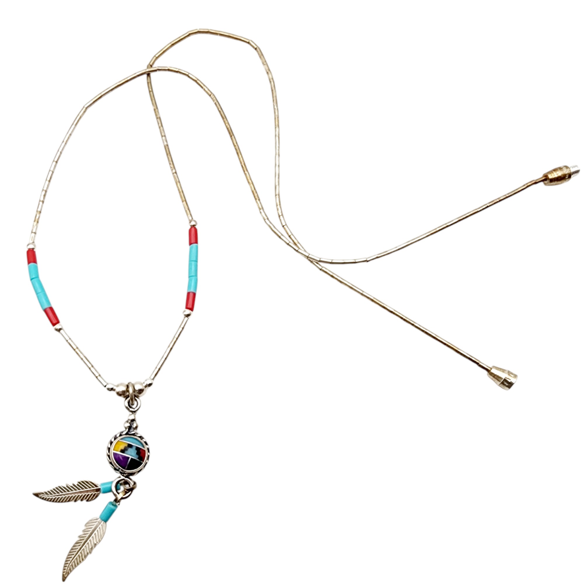 Southwest Sterling Multistone Inlay Liquid Silver Necklace 3.3g