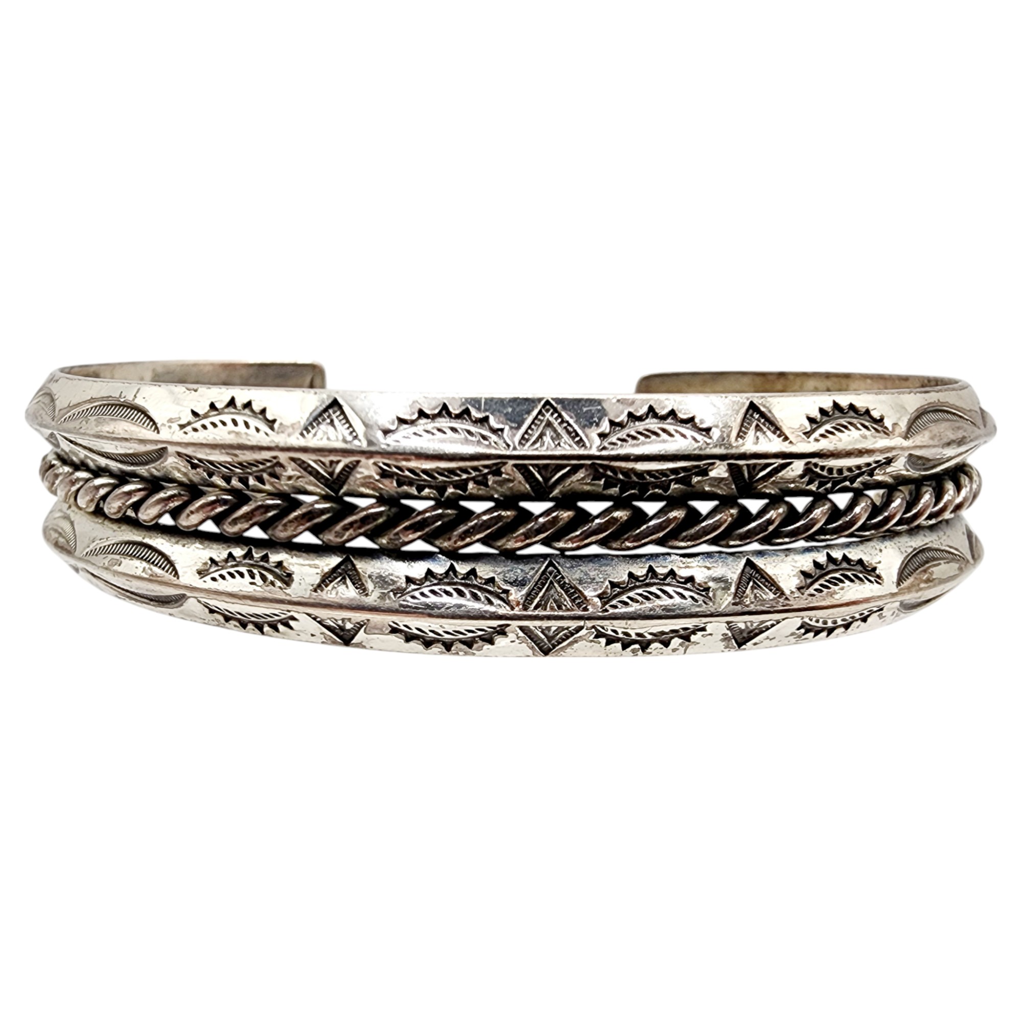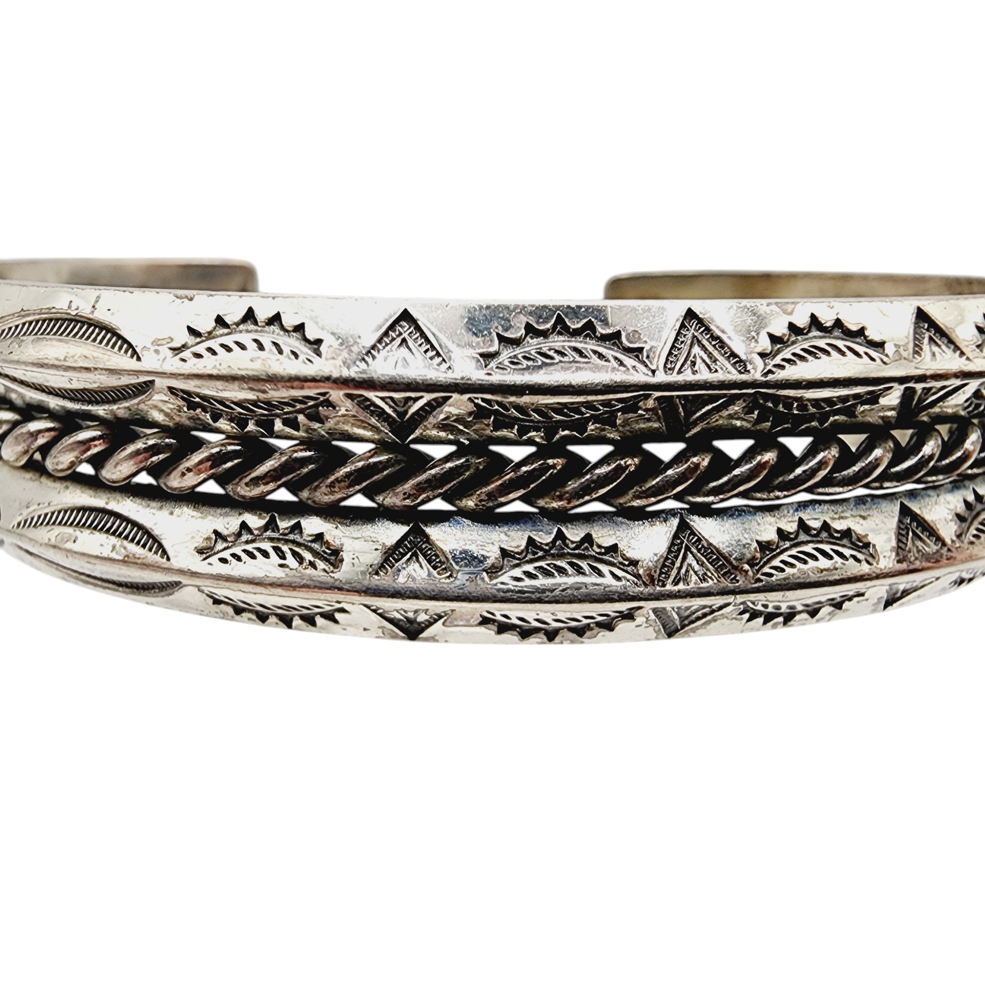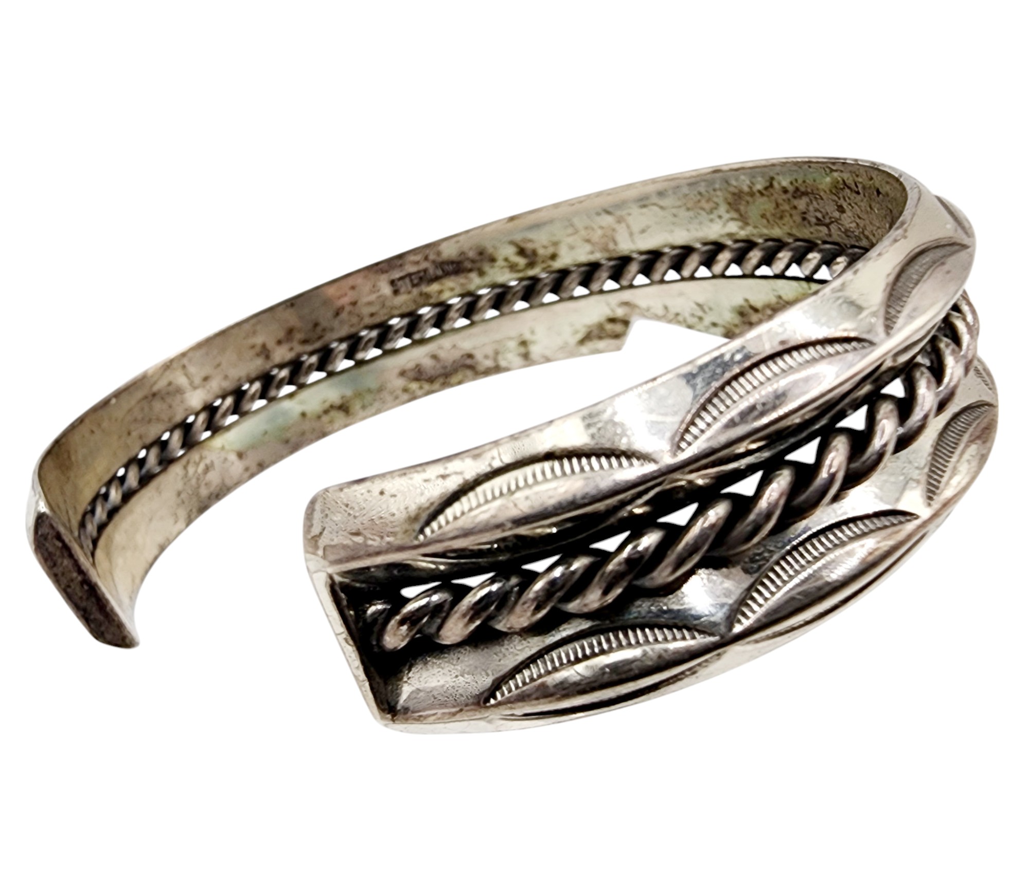 Sterling Vintage Navajo Handstamped Carinated Twist Cuff 28.4g
