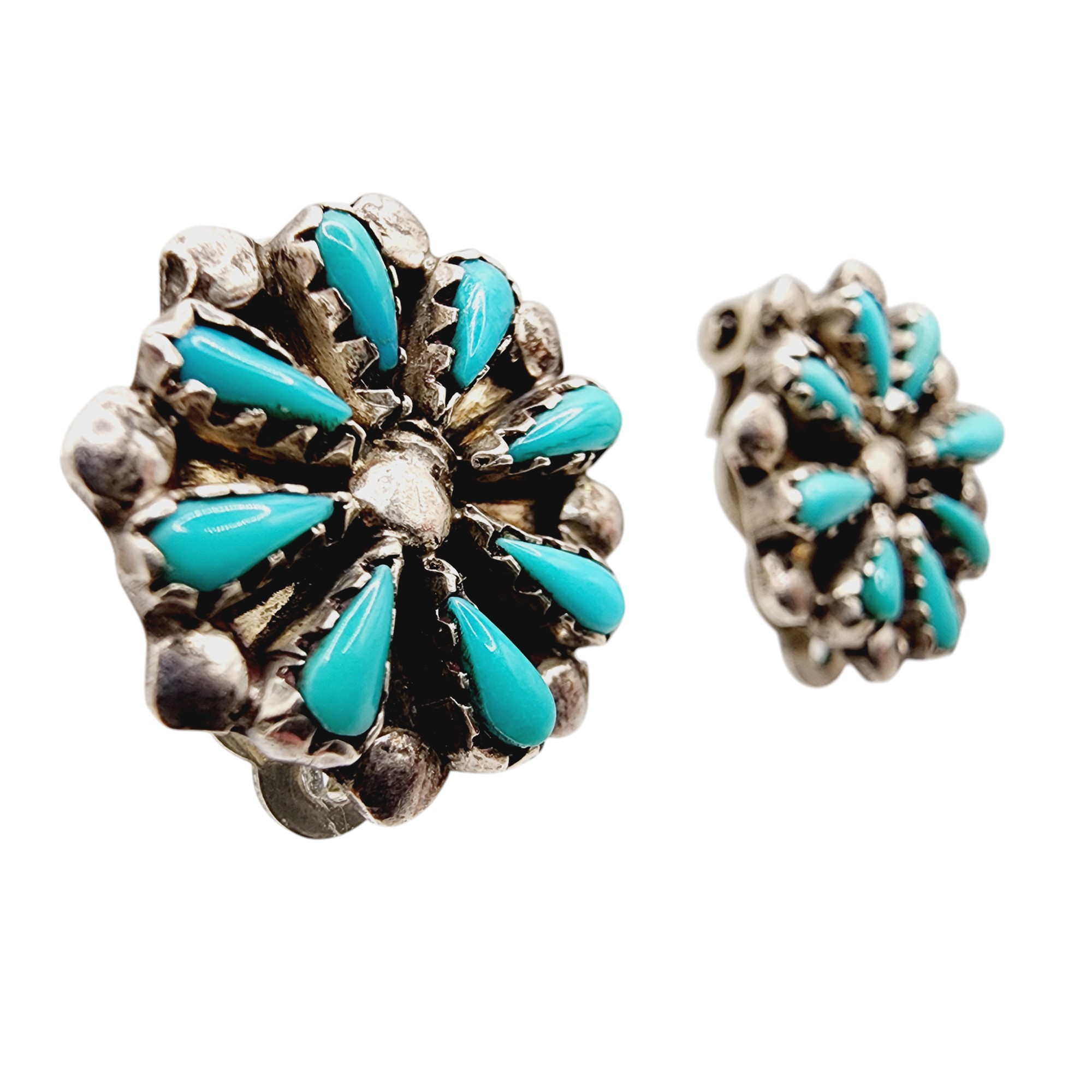 Sterling Vintage Zuni Petit Point Turquoise Earrings 4.3g