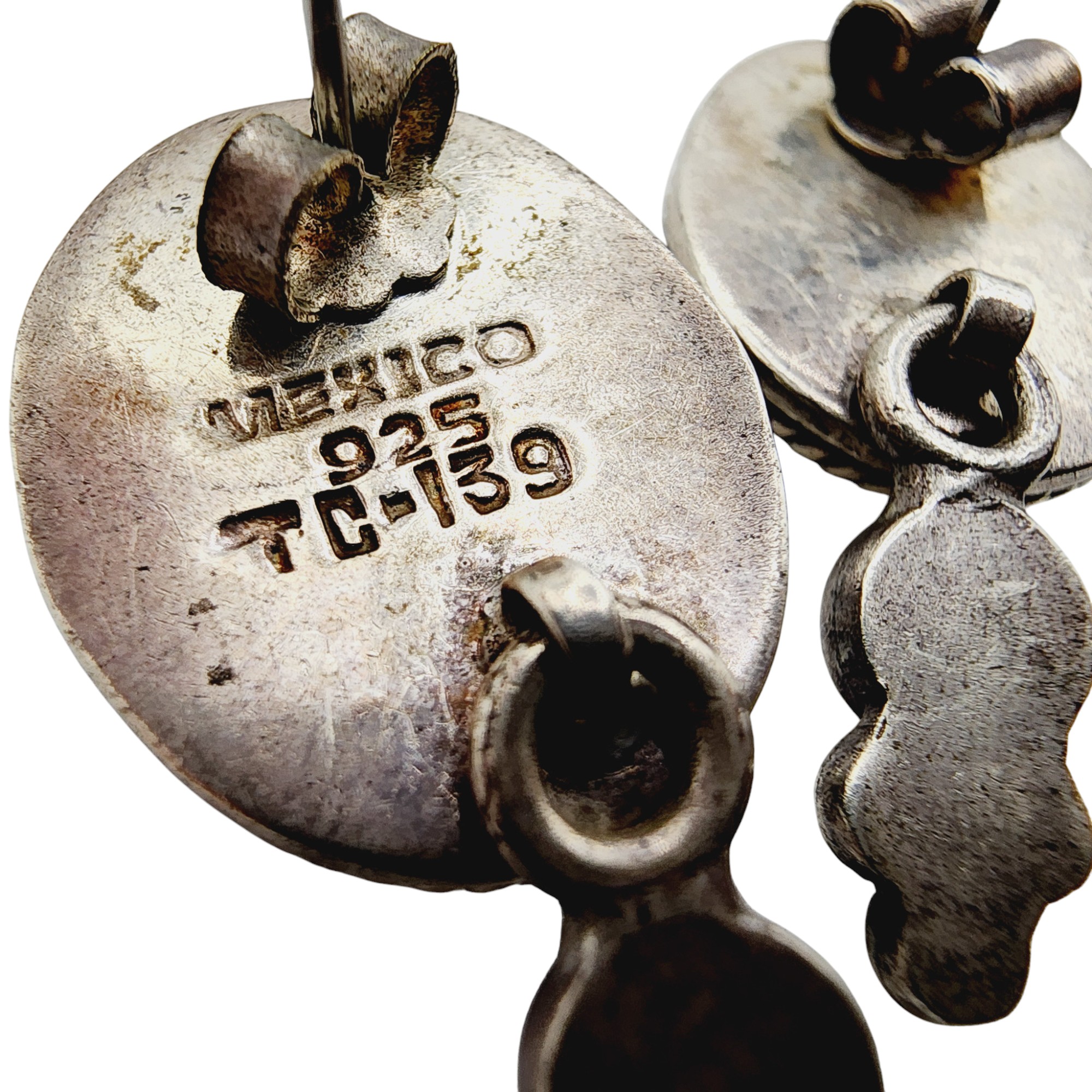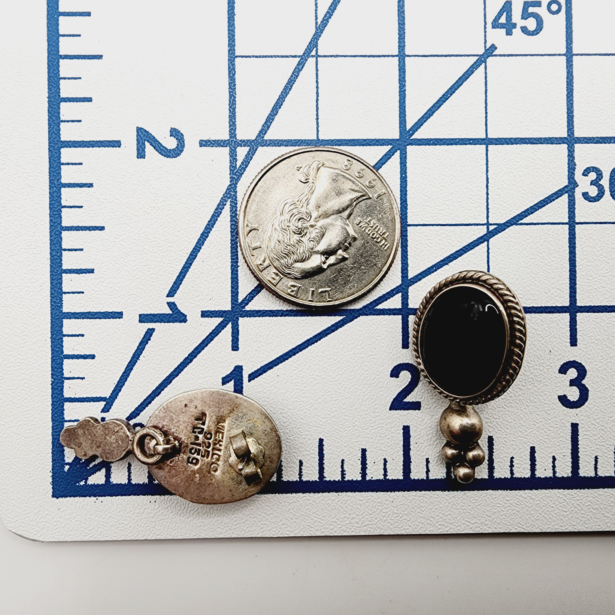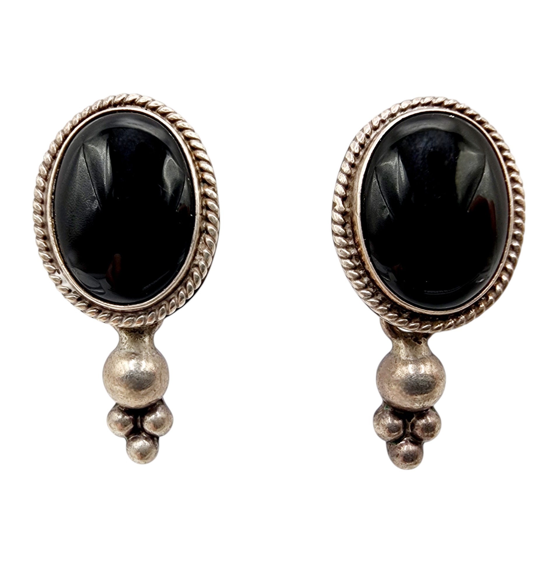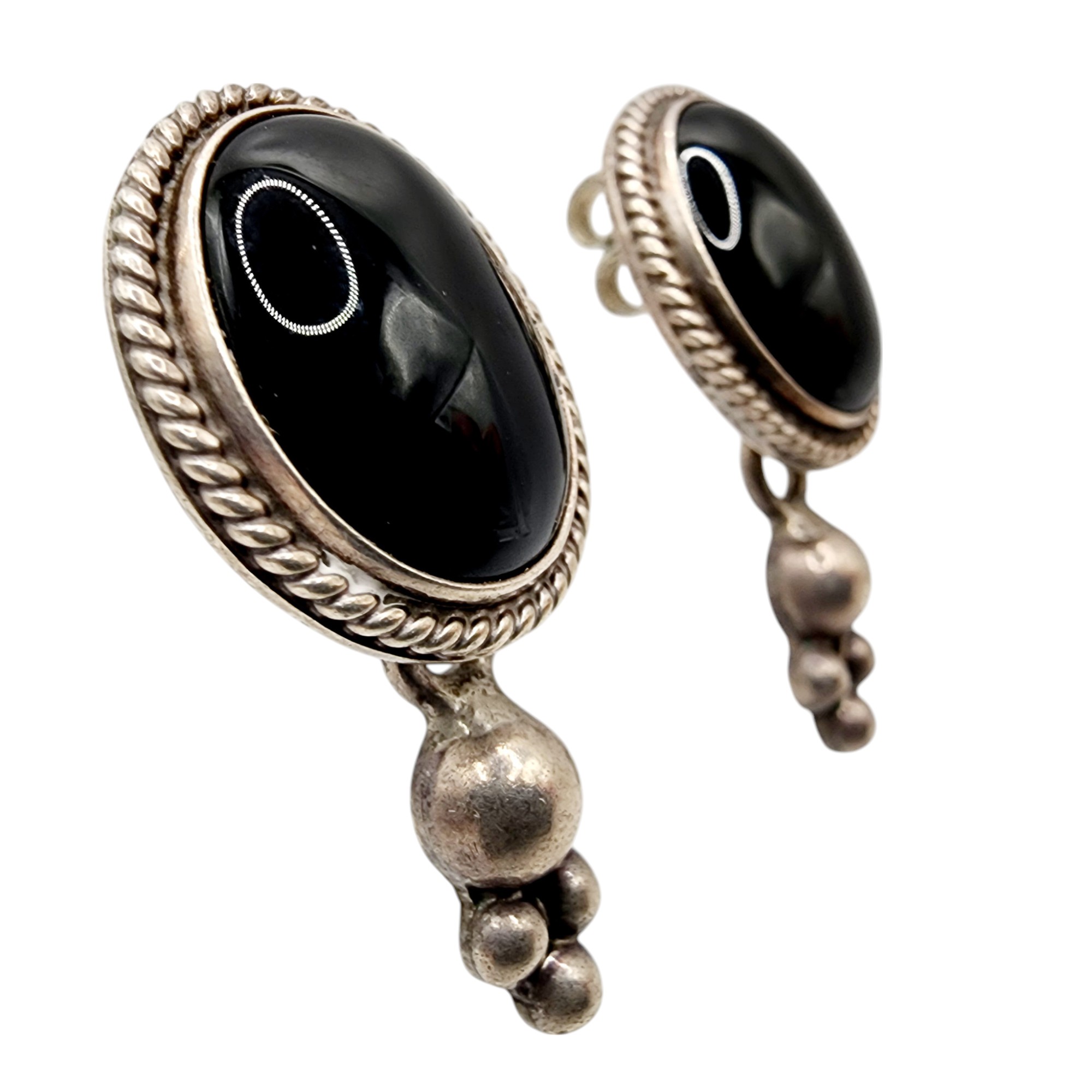 Sterling Taxco TC-139 Onyx Dangle Stud Earrings 11.3g