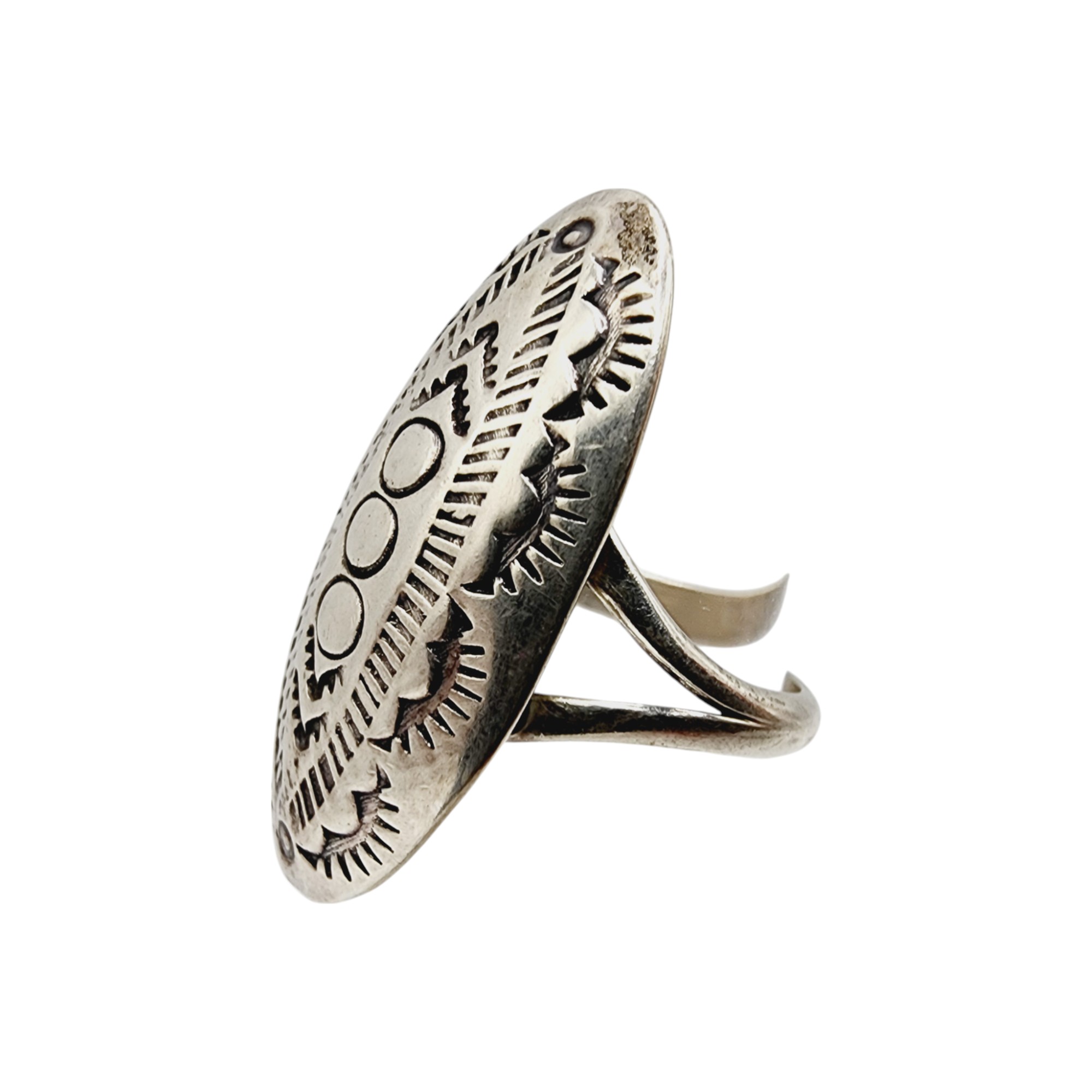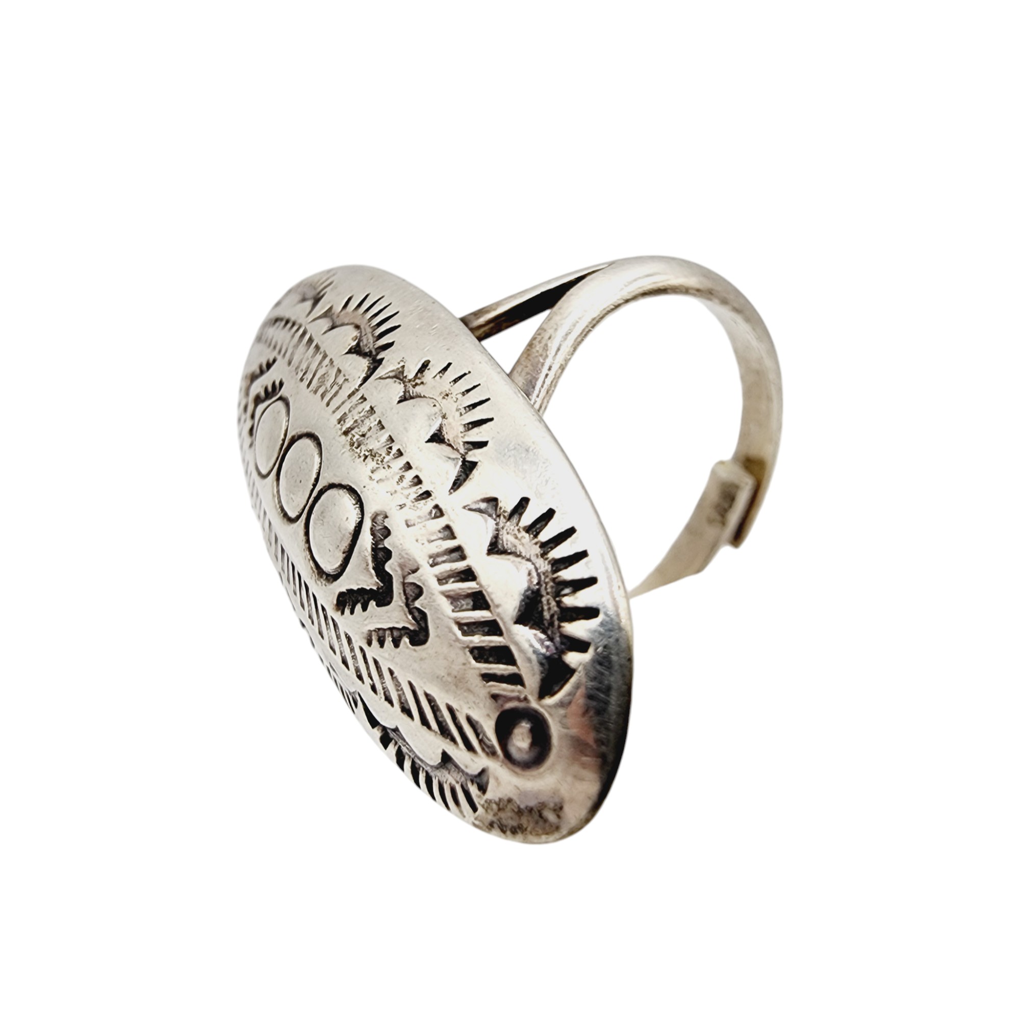 Sterling Signed ‘IHM’ Handstamped Ring SZ Adjustable -+8 3.7g