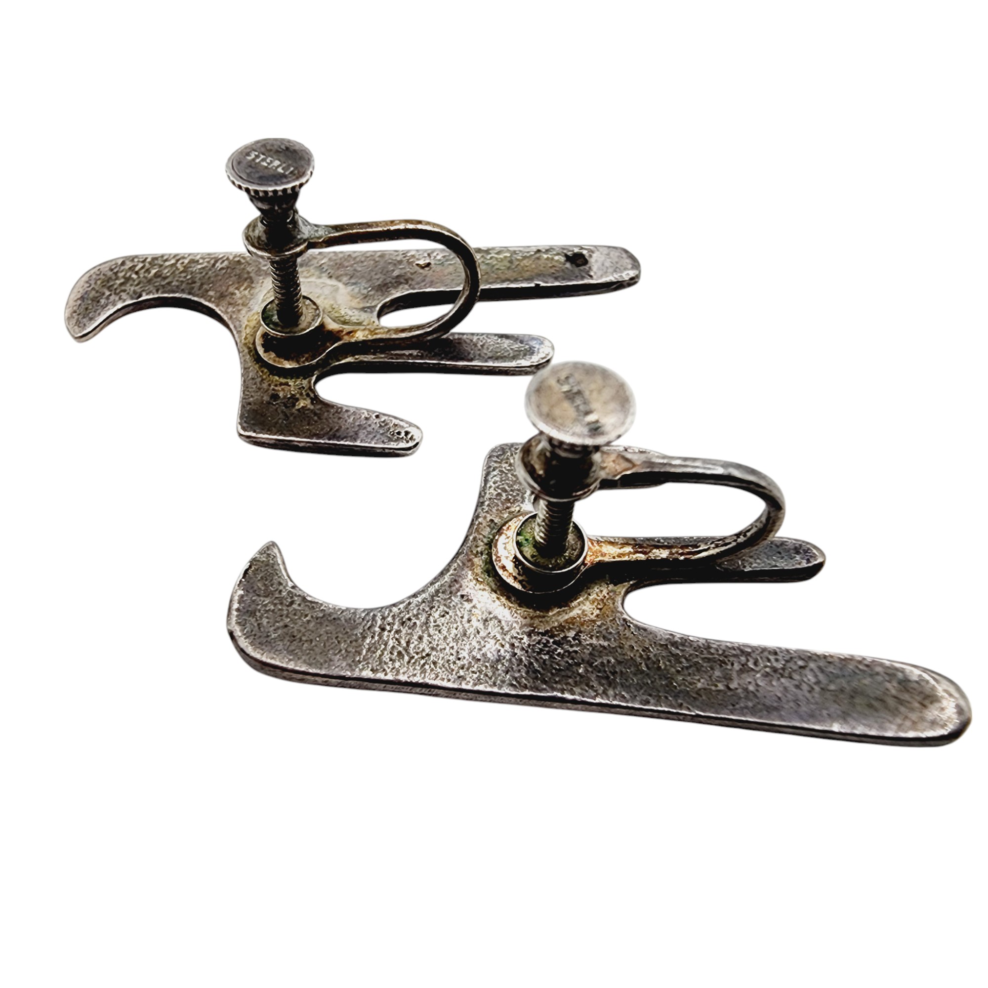 Sterling Old Navajo Handstamped Bird Earrings 7.2g