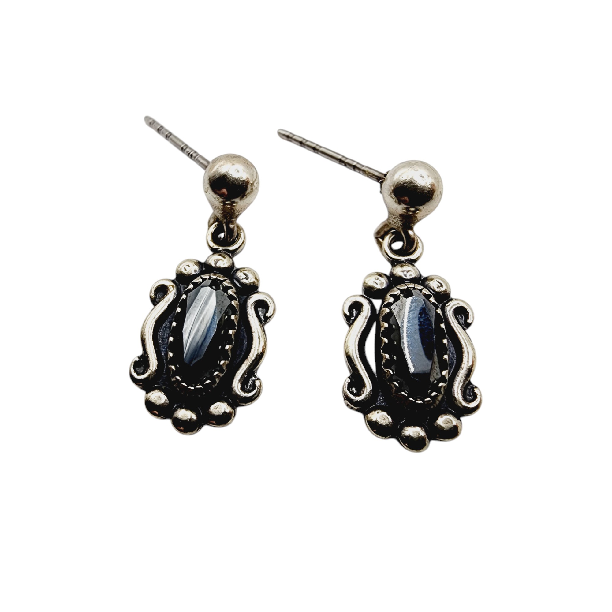 Sterling Vintage Wheeler Manufacturing Hematite Dangle Earrings 2.6g