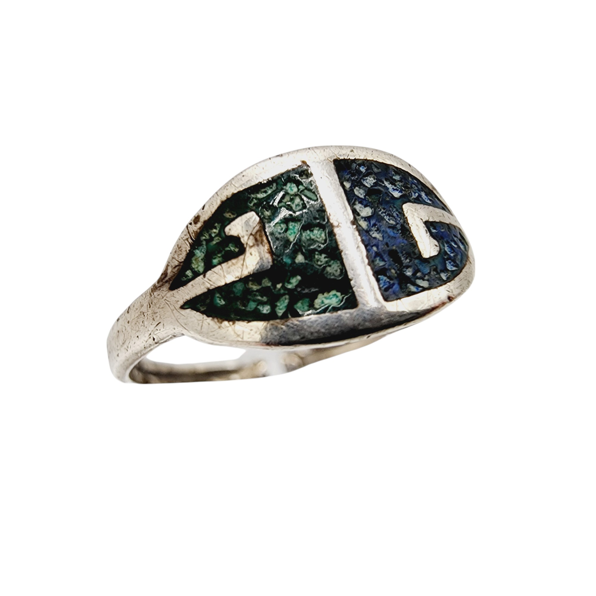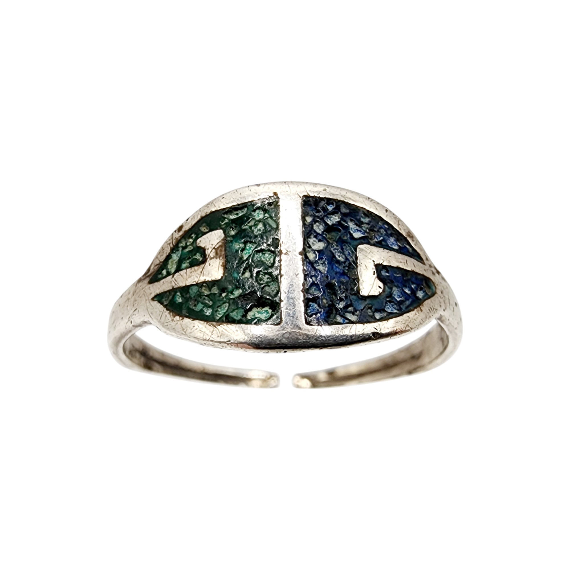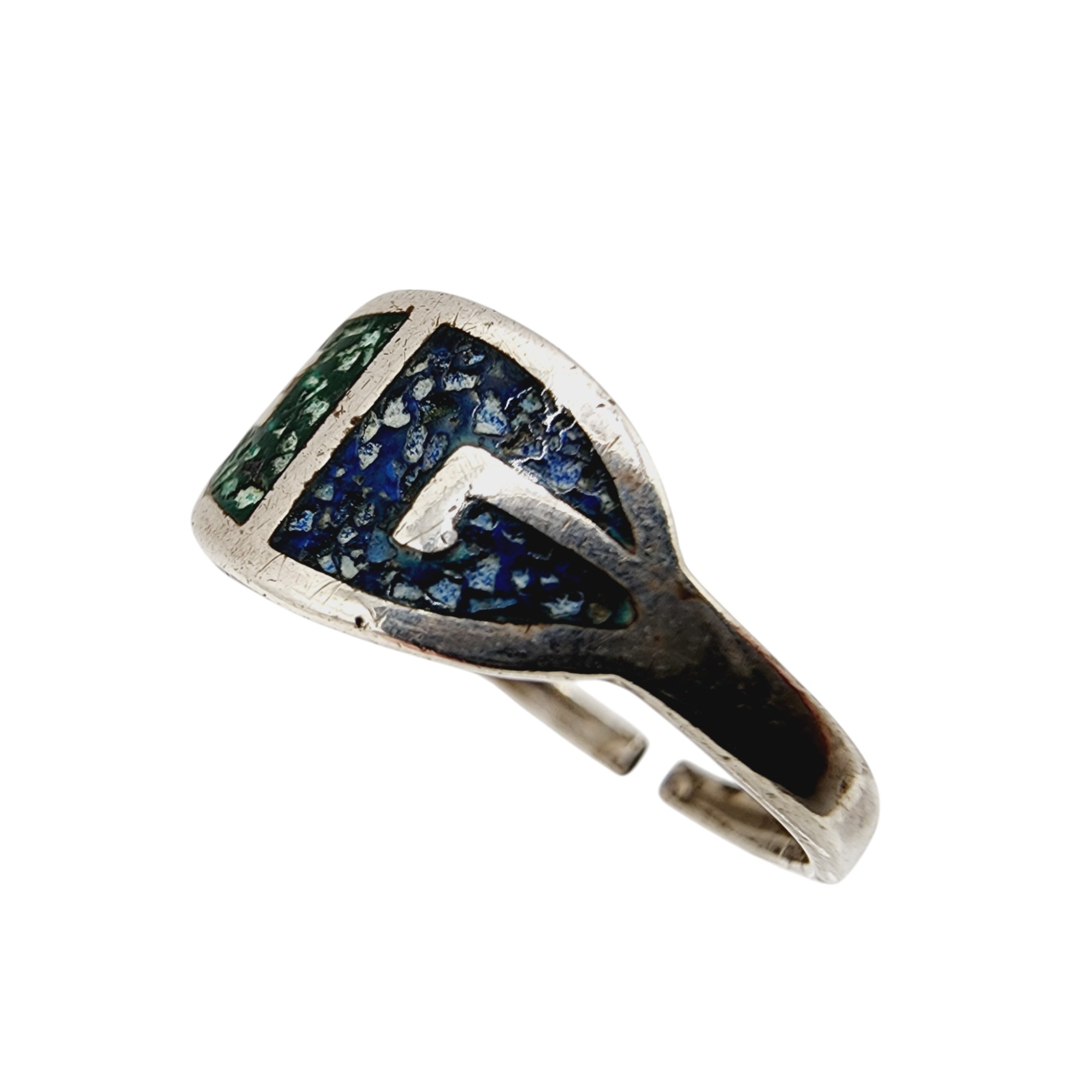 Sterling Taxco TR-00? Crushed Inlay Open Band/Split Ring SZ 6 1.2g