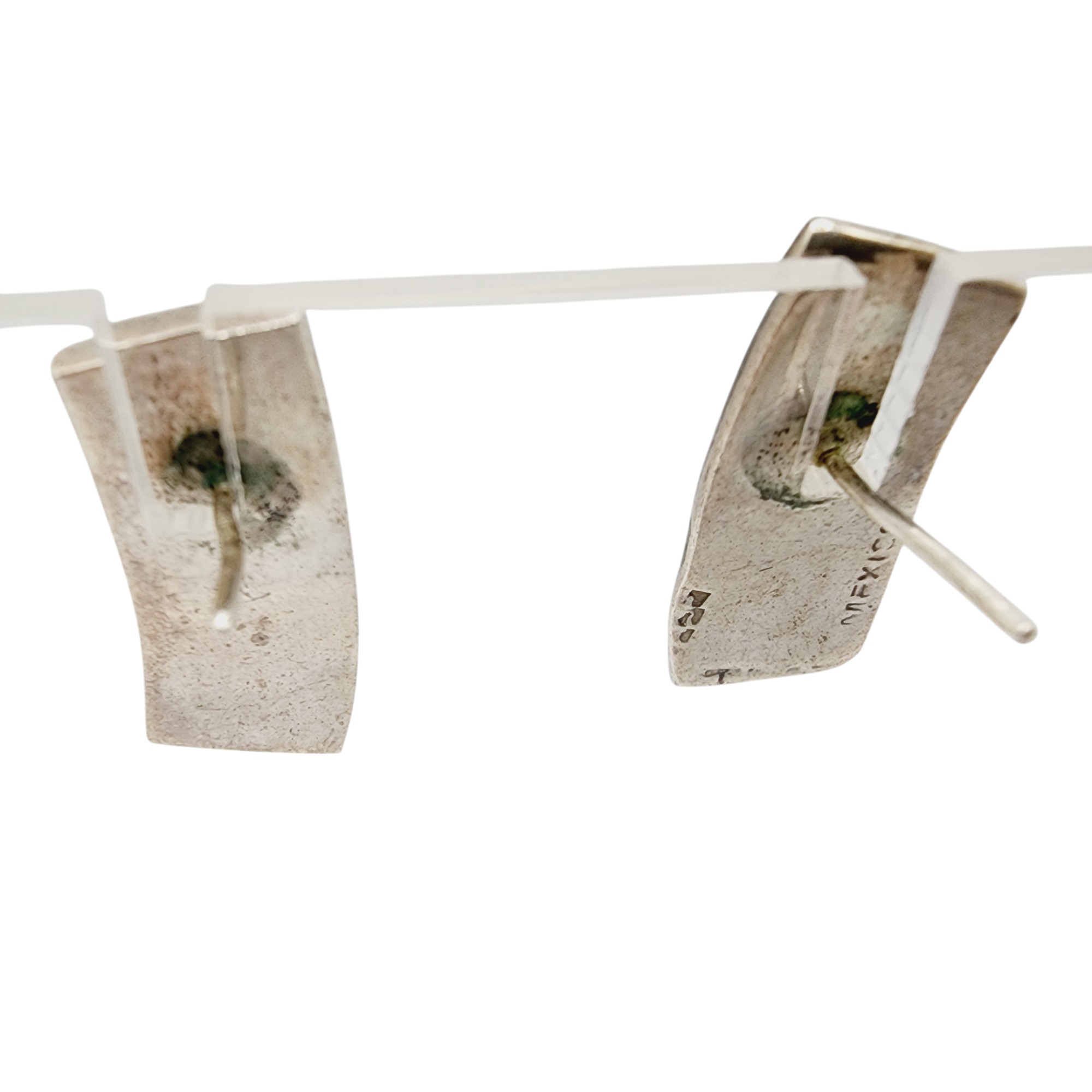 Sterling Mexico Malachite Inlay Bar Stud Earrings 6.6g